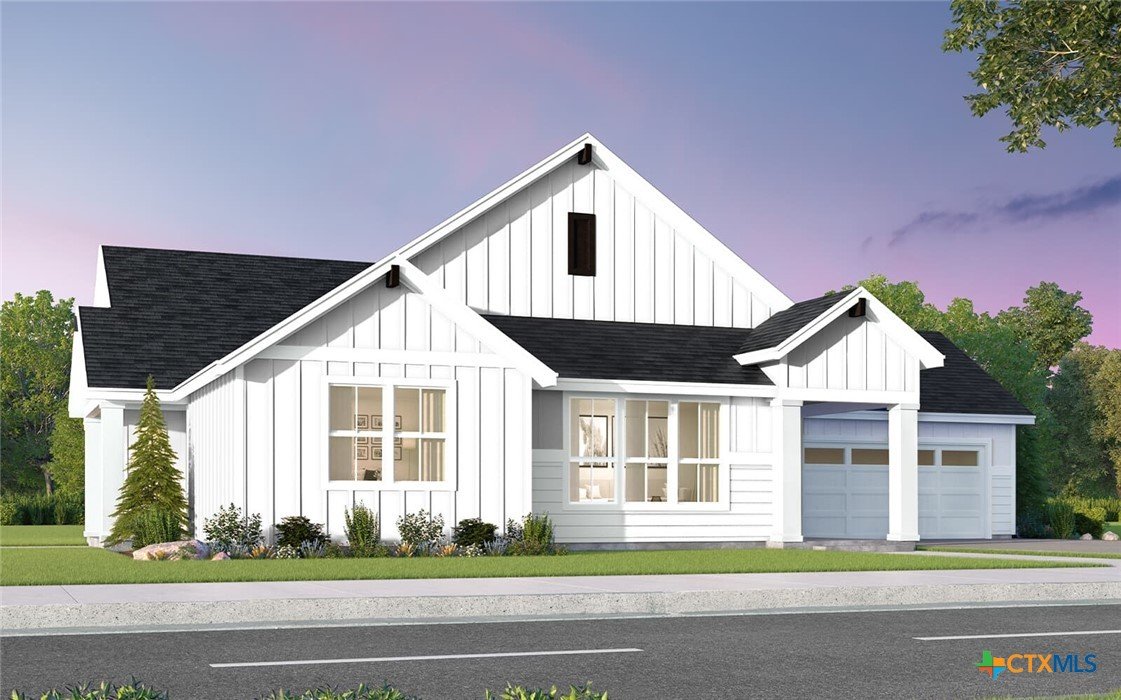 Burke plan with upgraded kitchen, quartz countertops, upgraded PEBBLE flooring, optional tray ceiling in living, optional 2 car side entry garage, optional garage storage, Express cordless blinds