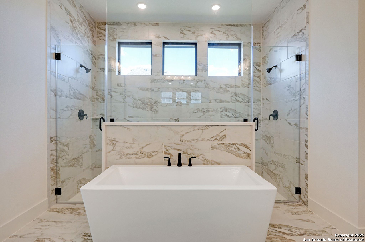 "Step into luxury with this brand-new Highland Homes Verona Plan at 124 Big Tooth Maple in La Cima Estates. This spacious 4-bedroom, 4 bathroom includes a pool bath and powder bathroom for guest. This home boasts 3,346 square feet of modern living space. Enjoy 20 FT high ceilings, an open-concept design, and a chefs kitchen with quartz countertops. Each bedroom features its own on-suite bathroom, ensuring privacy and comfort. Additional highlights include a secluded study and a cozy entertainment room. The extended outdoor living area is perfect for gatherings and backs to Green Space . Priced at $799,768, this home offers a blend of elegance and functionality in a prime location."