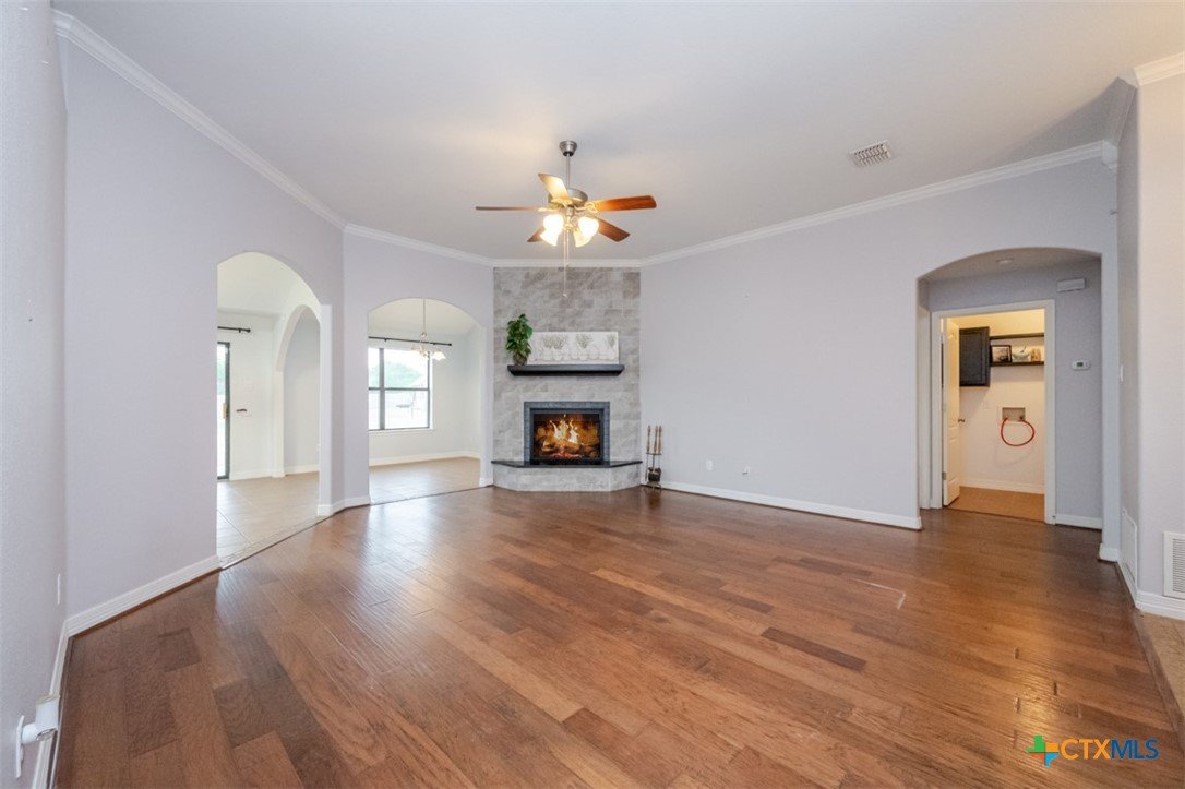 Set on a generous, over half-acre lot, this home invites you to slow down and enjoy a little more space, a little more comfort, and a lot more possibility. The moment you step inside, the warmth of the great room draws you in—a corner fireplace softly glowing, open sightlines that make the home feel connected and welcoming. Arched openings guide you from room to room, leading to a dining space perfect for shared meals and laughter, and a kitchen that’s as functional as it is inviting. With pull-out drawers for effortless organization and upgraded appliances, it’s the kind of kitchen that makes cooking feel easy again. At the end of the day, the owner’s suite offers a peaceful escape. The high ceiling gives the room an airy calm, and the bathroom feels like your own private retreat, complete with a soaking tub that melts away the day’s stress. Step outside and you’ll feel what makes this home special. The wide-open backyard stretches out under the Texas sky—part patio, part playground for your imagination. Whether it’s summer cookouts, a garden in full bloom, or simply watching the sunset from your chair, this space is ready for it all. With a shed wired for electricity and room to dream, this home isn’t just where life happens—it’s where it feels good to live.