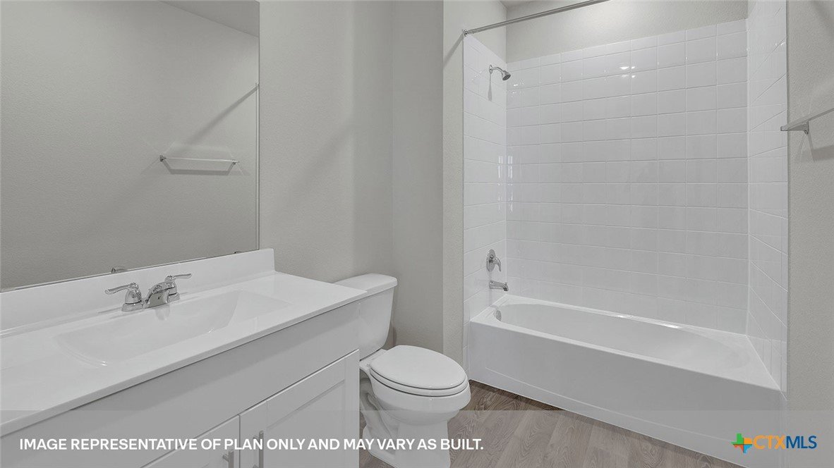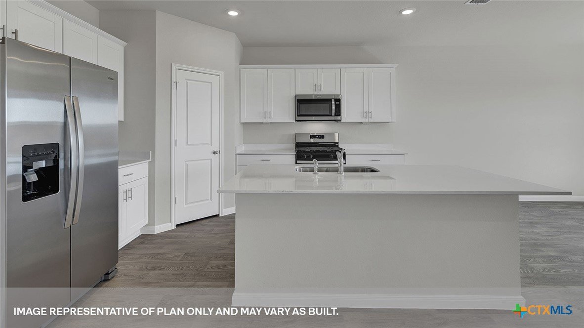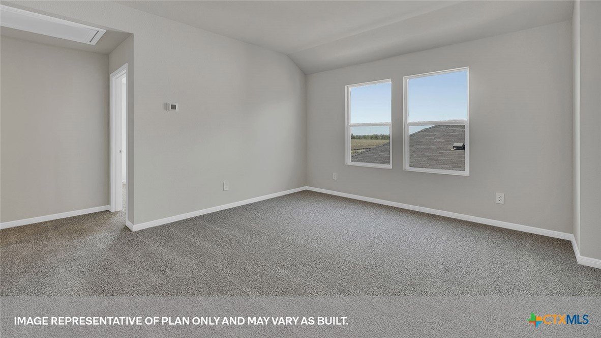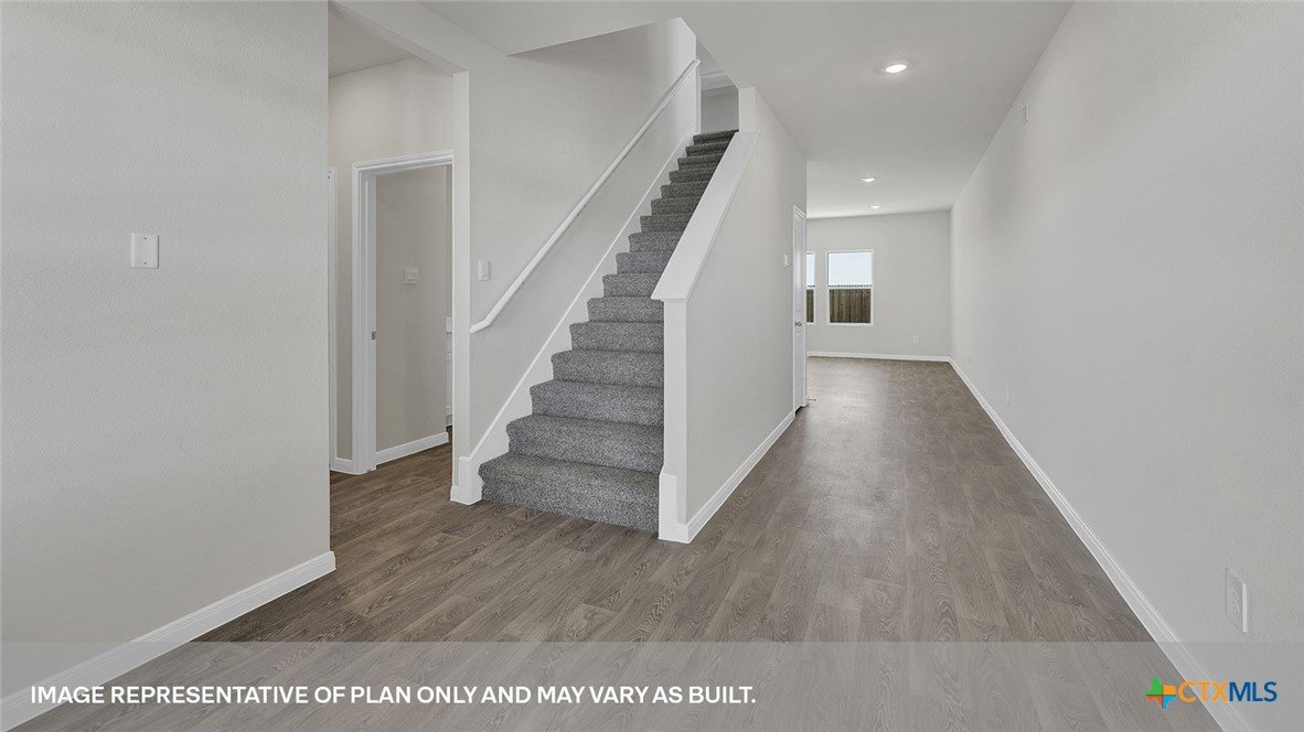 SEPT/OCT ESTIMATED COMPLETION. EASY ACCESS TO I-35! The Nicole is one of our most popular floorplans available. This two-story home offers 4 bedrooms, 3 bathrooms, a gameroom, and 2 car garage all within 2,473 square feet of comfortable living space. Entering, cross the foyer and find a short hallway to the downstairs secondary bedroom and a full bathroom. Passing the staircase, continue through the foyer to the heart of the home, the living area. The family room, dining area, and kitchen are open, making entertaining and everyday living a shareable experience for family and friends. The kitchen features an island with undermount sink, quartz countertops, a corner pantry closet, 36” upper cabinets, and stainless-steel appliances, including a gas range. Moving upstairs, you’ll enter the gameroom, The oversized primary bedroom is tucked away from the gameroom. Stretch out and relax at the end of your day in this spacious and private ensuite. The primary bathroom features a walk-in shower, double vanity with marble counter tops, private toilet area with a door, and an enormous walk-in closet. This will be the closet of your dreams, spacious enough to add a dressing island or chaise lounge for a full luxurious experience. The additional upstairs bedrooms and bathroom are located opposite the primary bedroom. The bedrooms feature walk in closets with wood shelving. Both secondary bathrooms include a shower/tub combination. The utility room rounds out the upstairs space, making laundry chores a breeze. The Nicole includes vinyl flooring throughout the common areas of the home, and carpet in the bedrooms. All our new homes feature a covered back patio, full sod, irrigation system in the front and back yard, and a 6’ privacy fence around the back yard. This home includes our America’s Smart Home base package, which includes the Amazon Echo Pop, Front Doorbell, Front Door Deadbolt Lock, Home Hub, Thermostat, and Deako® Smart Switches.
