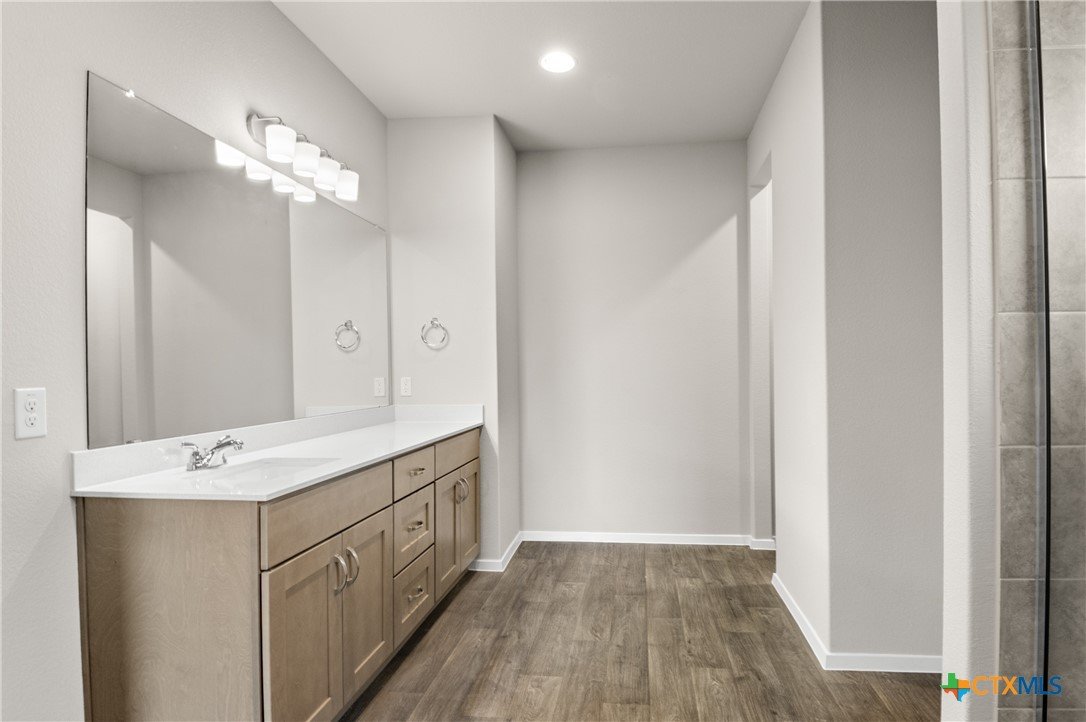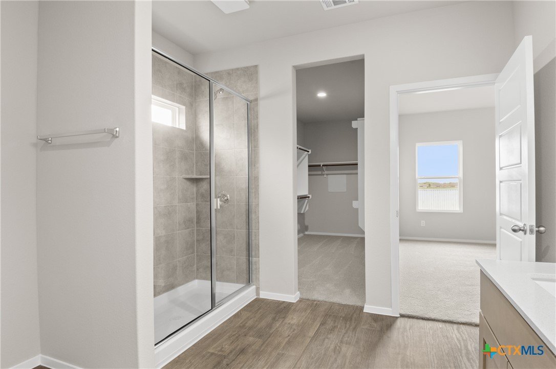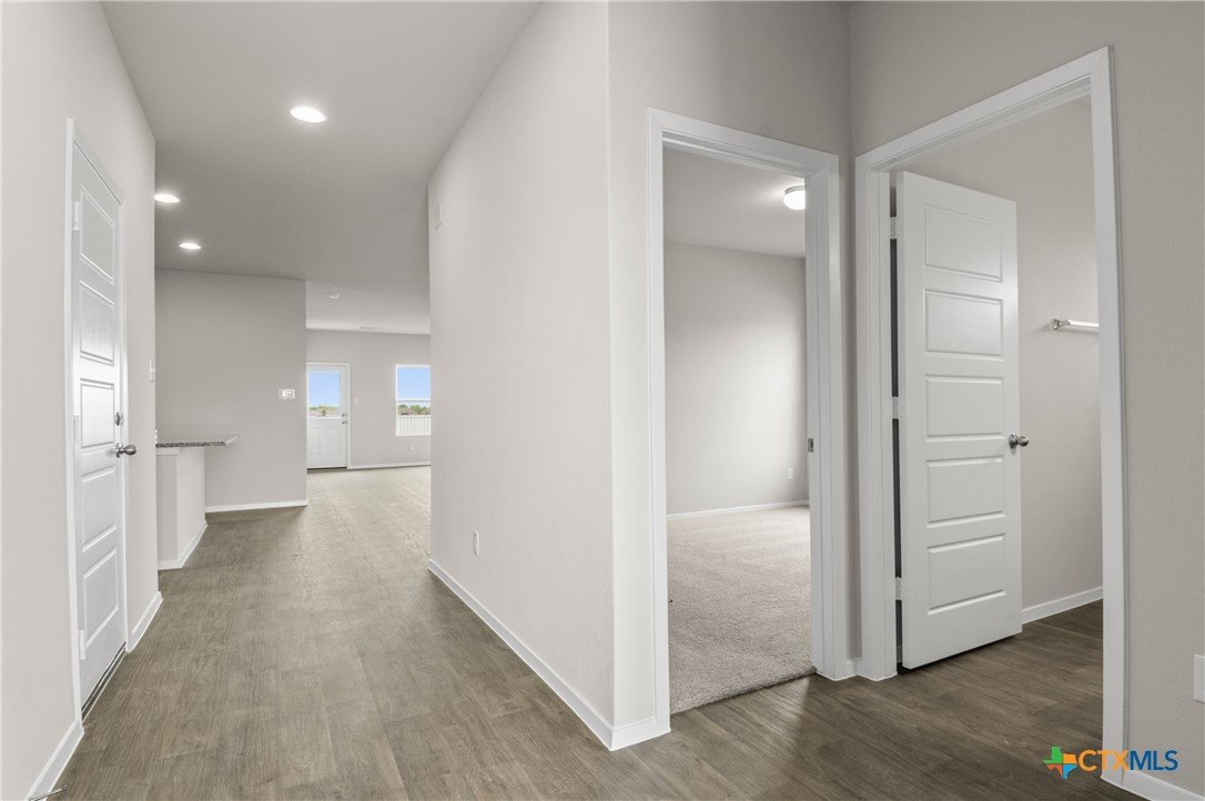 MLS- 578814 - Built by Brohn Homes - Ready Now ~ Located at 2441 Winding Creek Road in Kyle's premium community, Casetta Ranch, this one-story home is the perfect mix of functional design and luxury. It features wood-like vinyl flooring throughout the main living areas, upgraded stainless steel appliances, a tankless water heater, and white shaker-style cabinets with nickel hardware. Inside the kitchen, you'll find 42-inch upper cabinets, a center island, a corner pantry, and plenty of room to prepare and cook. Retire to the primary bedroom, which features a walk-in closet and dual raised bathroom vanities with Silestone countertops. Casetta Ranch is a hidden gem in Kyle that has something for everyone, there are many extravagant amenities to take advantage of, such as a swimming pool, parks, an entertainment center, and nearby restaurants. Plus, there's a high school in walking distance. And because it’s an energIQ home built by Brohn, youre getting more home, more quality, and more value—all without compromise.