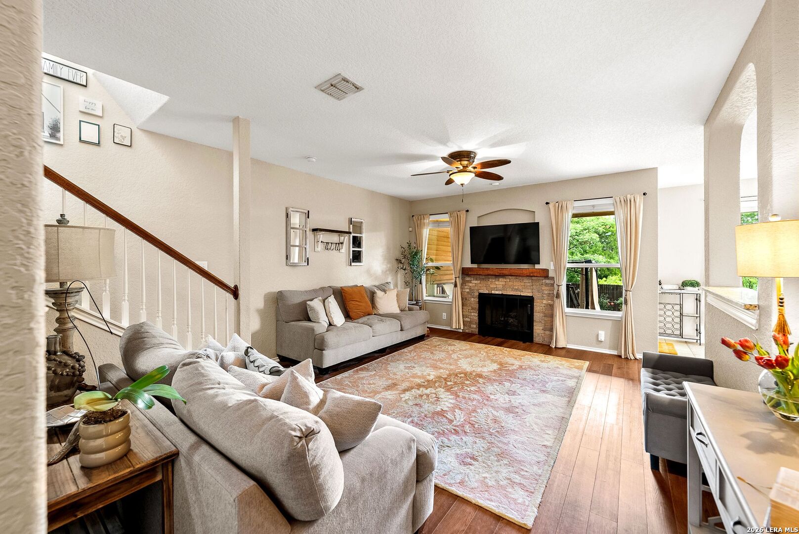 Tucked into the peaceful setting of Stillwater Ranch, this home offers more than just a place to live, it offers a lifestyle surrounded by nature, comfort, and intentional design. From the moment you walk through the rich mahogany front door, you're welcomed by a light-filled, open flow that immediately draws your eye to the greenery beyond. Thoughtfully designed, the main living space sits at the heart of the home anchored by a cozy fireplace and framed by serene woodland views that make every day feel a little more relaxed. The kitchen is both beautiful and functional, featuring Brazilian granite countertops, abundant cabinetry, and custom pantry shelving, perfect for everyday living and effortless entertaining. Just off the main space, a flexible second living area or game room gives you room to grow, gather, or unwind. The primary suite is a true retreat, spacious, airy, and filled with natural light, with calming views of the greenbelt that create a sense of peace at the end of each day. Secondary bedrooms offer versatility for guests, work, or family. Step outside and the lifestyle continues. A covered patio, pergola, and hot tub spa invite you to slow down and enjoy quiet mornings with coffee or evenings under the stars. With direct access to miles of scenic walking trails, ponds, and natural surroundings, this home seamlessly connects indoor comfort with outdoor living. Recent updates, including luxury vinyl plank flooring in the main living area has added warmth and durability, making the home as practical as it is inviting. This is where comfort meets nature, where everyday living feels just a little more elevated.