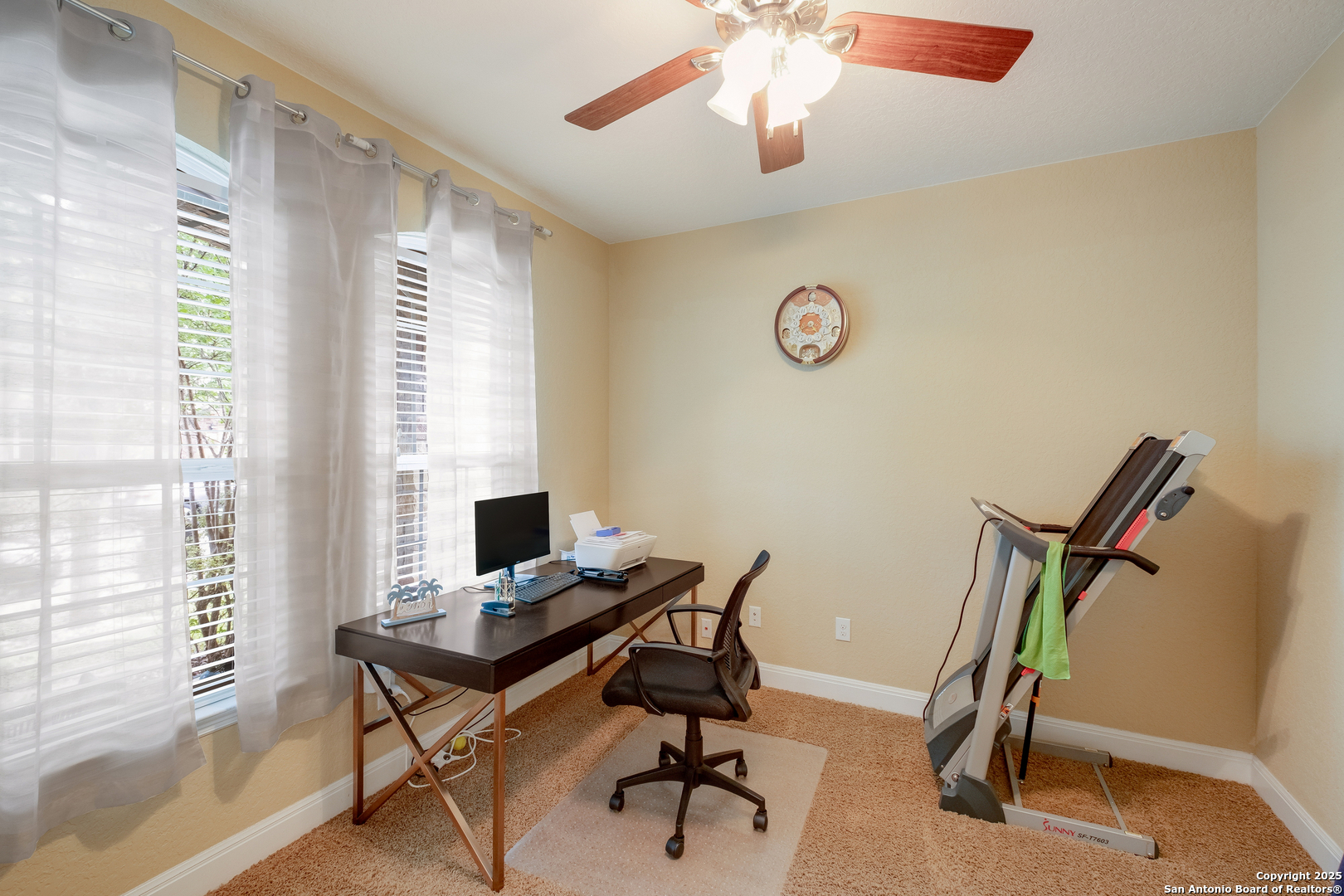 This massive 5-bedroom, 3.5-bathroom home offers an ideal layout for both comfort and functionality. The main level features tall ceilings throughout, a dedicated office, formal dining room, open-concept living area, and a spacious primary suite. The kitchen includes a breakfast bar, island, and ample cabinet and countertop space-perfect for everyday living and entertaining. Upstairs, you'll find four generously sized bedrooms and a large loft area, ideal for a second living space or game room. Natural light fills the home, and the backyard offers a covered patio for relaxing or entertaining. Situated in a vibrant community with amenities like a pool, clubhouse, tennis courts, basketball court, jogging trails, playground, and sports court, this home delivers on both space and lifestyle.