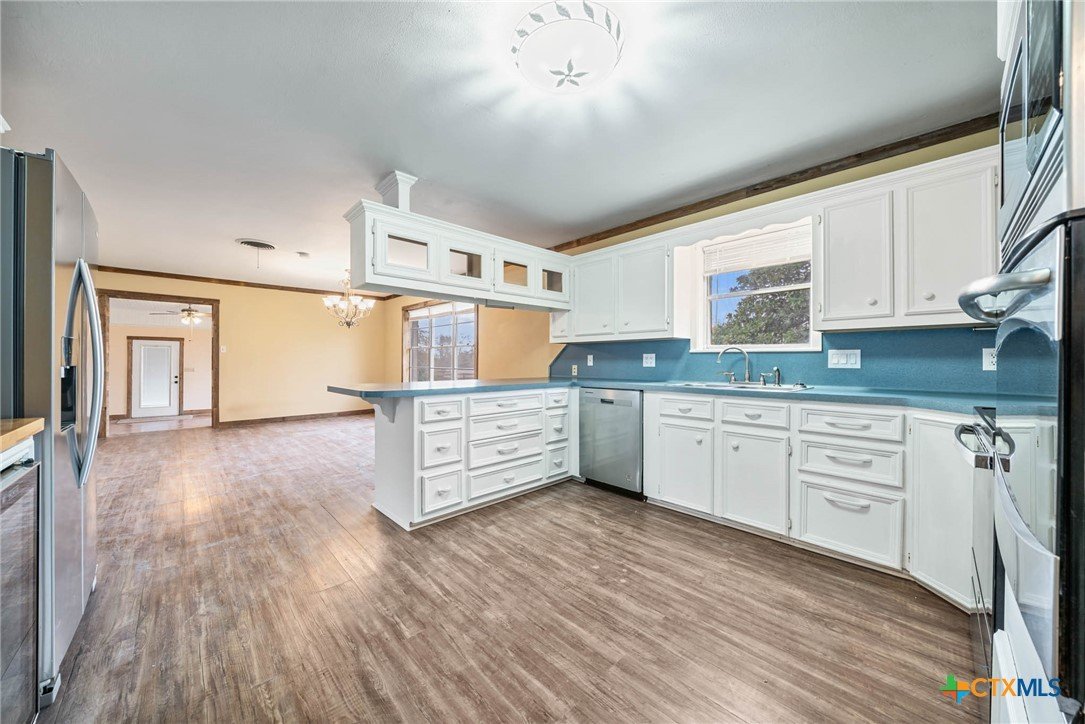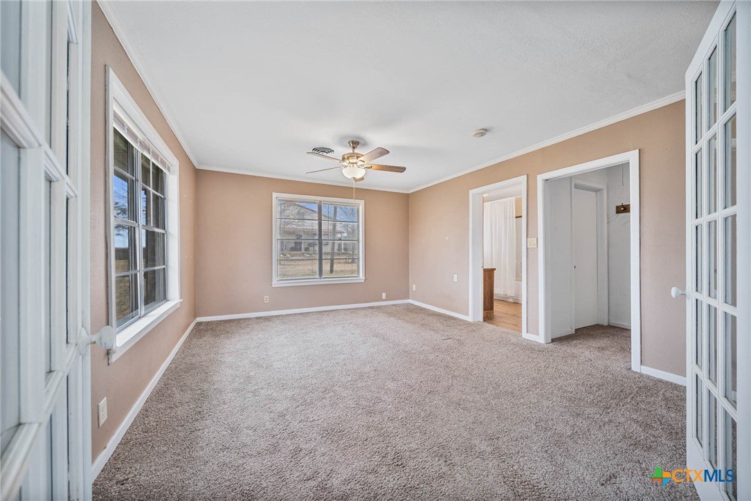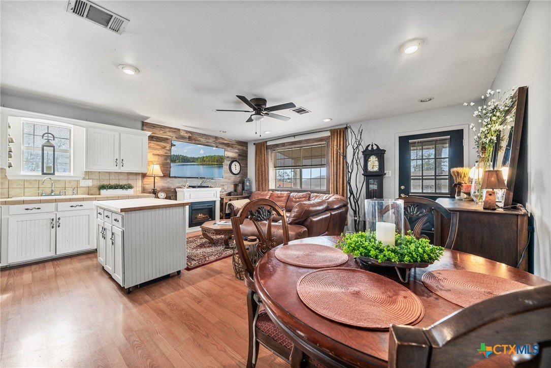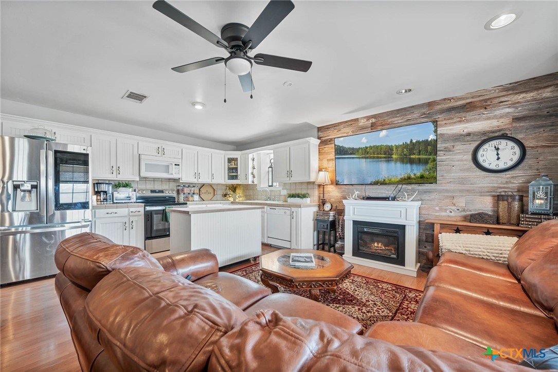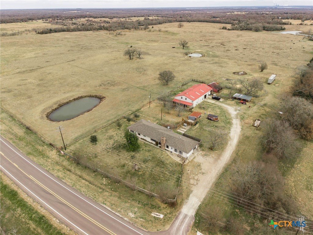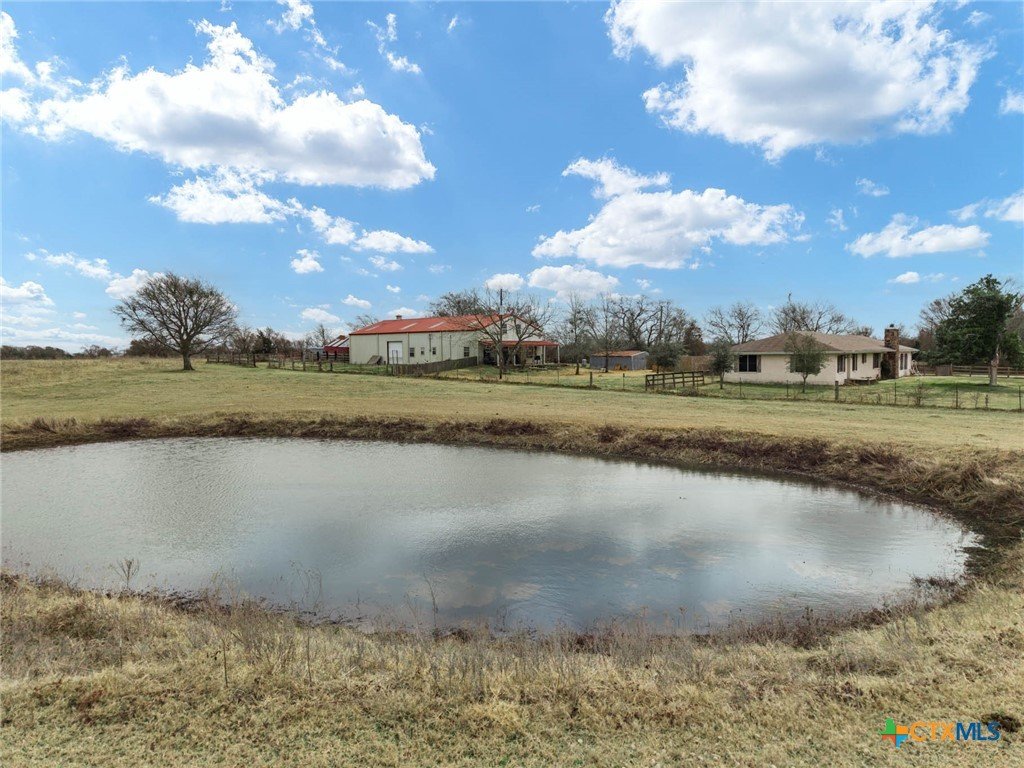 ONE-OF-A-KIND PROPERTY offering a guest barndominium with rental potential on 10+ acres outside city limits! This unique property features a 3-bedroom, 2-bath main home plus a 2-bedroom, 1-bath barndo, complete with barn stalls, corral, stock pond, and chicken coop—perfect for a true country lifestyle. Horses welcome! As you arrive, you’re greeted by the main home situated to the left and the barndominium set farther back on the property, offering privacy and separation between living spaces. The main home showcases a beautiful original brick, wood-burning fireplace, along with woodwork and thoughtful upgrades throughout. Interior features include crown molding, fresh paint, matching flooring throughout the main areas, carpet in all bedrooms, and two separate living spaces. The kitchen is equipped with stainless steel appliances, a brand-new built-in microwave and oven, and a wine refrigerator. The barndominium offers exceptional versatility—ideal for equipment storage, a workshop, or additional parking—while also featuring a fully equipped 2-bedroom, 1-bath guest apartment. The apartment includes a full kitchen with a stainless steel refrigerator, stand-alone stove, built-in microwave, dishwasher, and a mobile center island overlooking the living and dining areas, complemented by recessed lighting. The bathroom features a full-size walk-in shower, double vanity, and soaking tub. Step outside and bring your homestead dreams to life, with a stock pond, corral and stalls for horses, chicken coop, and ample space for goats or other livestock. Schedule your private showing today to experience this truly special property.