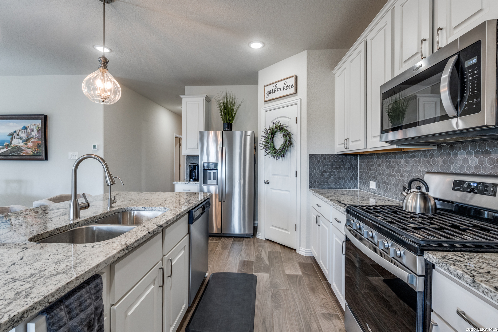 Welcome Home to Meyer Ranch! Model home style living in this Gehan home!. Features 1675 square feet of perfectly spaced style of living. 3 bedrooms 2 full baths with wood look tile, granite countertops, stainless steel appliances. Primary bedrooms features bay window perfect fitted for a reading area. Floorplan also gives access to the utility room from its primary entry way and conveniently from the primary closet. Backyard features extended deck with hot tub. Come and take a look at this Gem today!