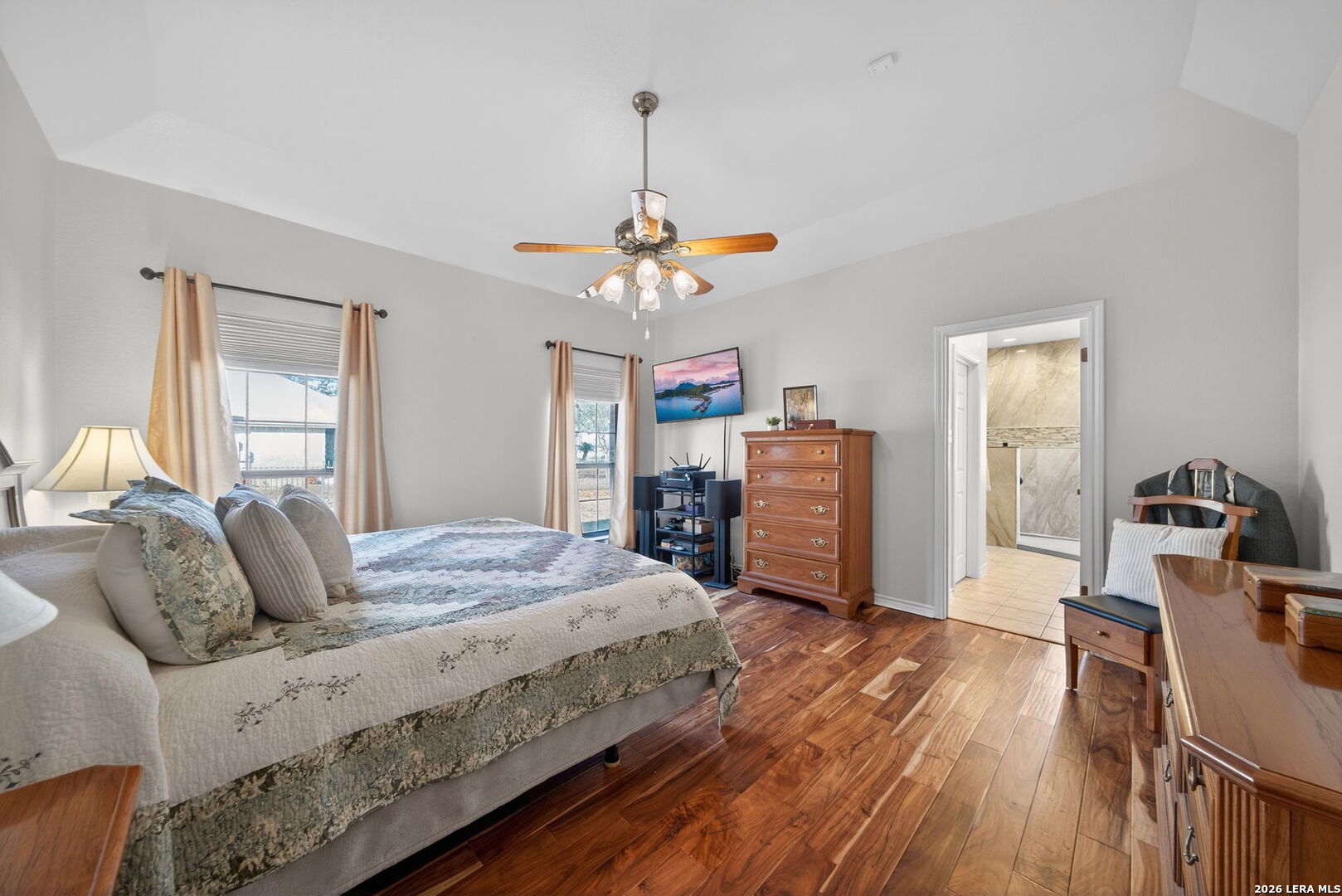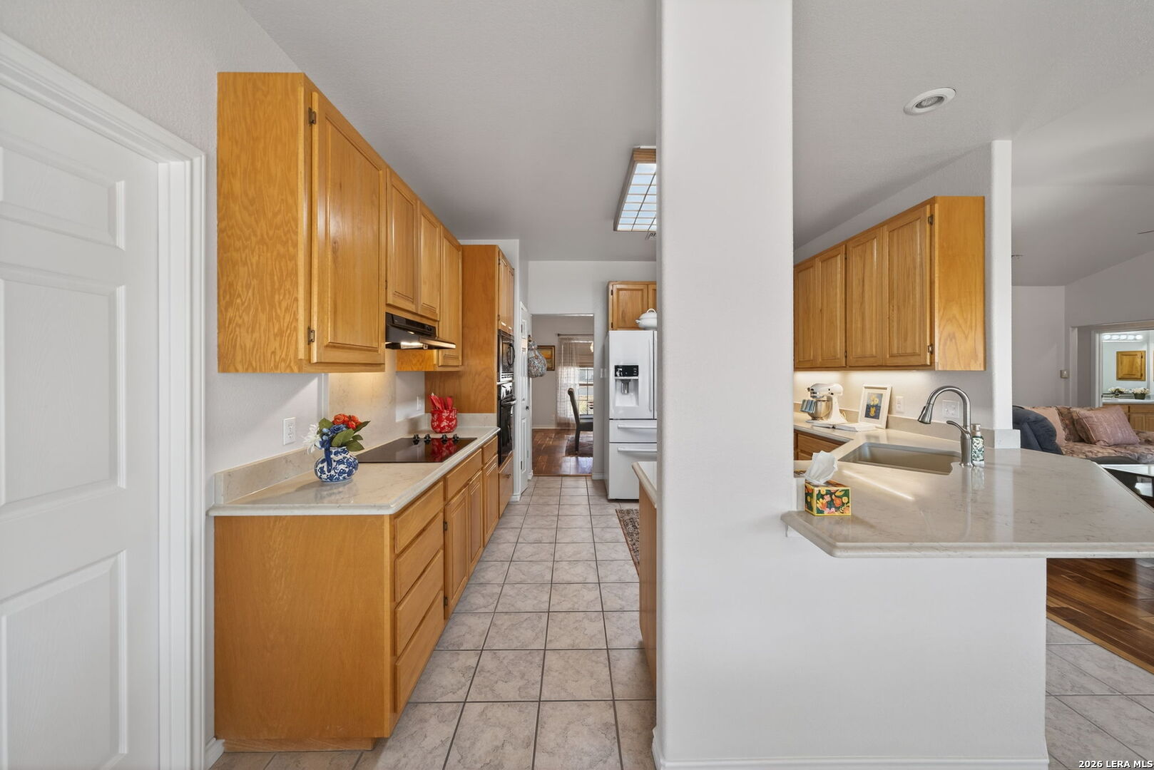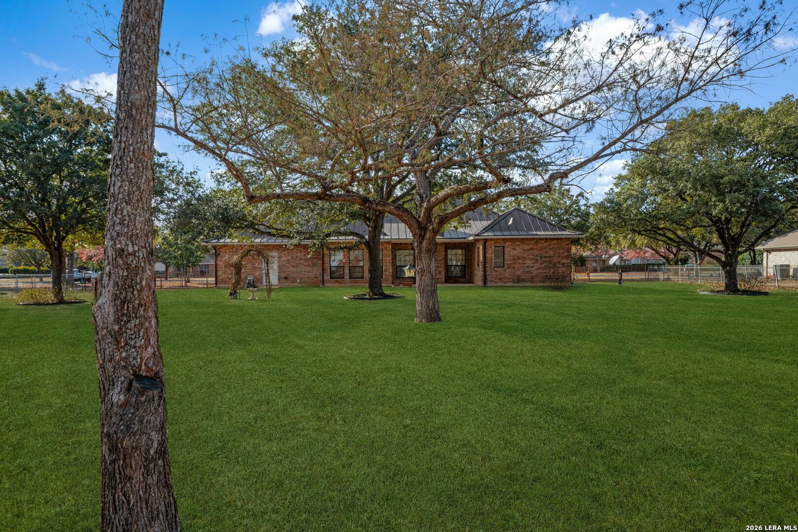 Welcome to this beautifully maintained home in the historic and charming town of Castroville. Set on a generous .75-acre lot, the property is shaded by mature trees, including six majestic live oaks, four red oaks, three cedar elms, and one Monterey oak creating a peaceful and private outdoor setting. Inside, you'll find Acacia Wood Flooring throughout most living areas, complemented by ceramic tile in wet spaces for durability and style. The home has seen thoughtful updates, including quartz kitchen countertops, updated lighting, and a stunning primary bathroom remodel featuring an impressive walk-in shower with bench seating. Additional highlights include a metal roof, solar system, and an oversized 28-foot-deep garage-perfect for extra storage, a workshop, or larger vehicles. Meticulously cared for inside and out, this home offers both comfort and efficiency. Enjoy small-town charm with easy access to San Antonio and Lackland AFB, plus all that Castroville has to offer, from scenic nature trails and antique shopping to historic walking tours that showcase the town's rich heritage.