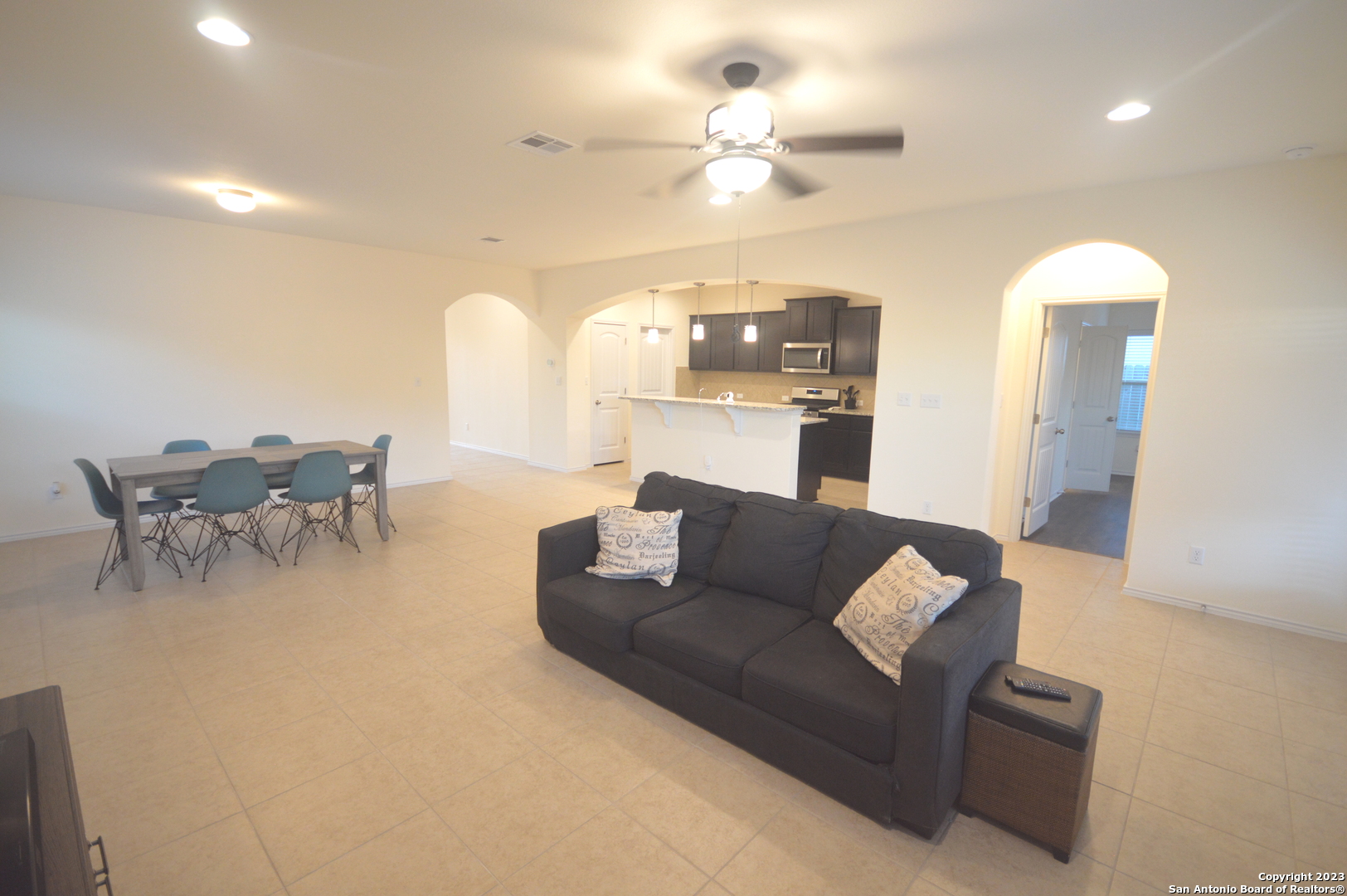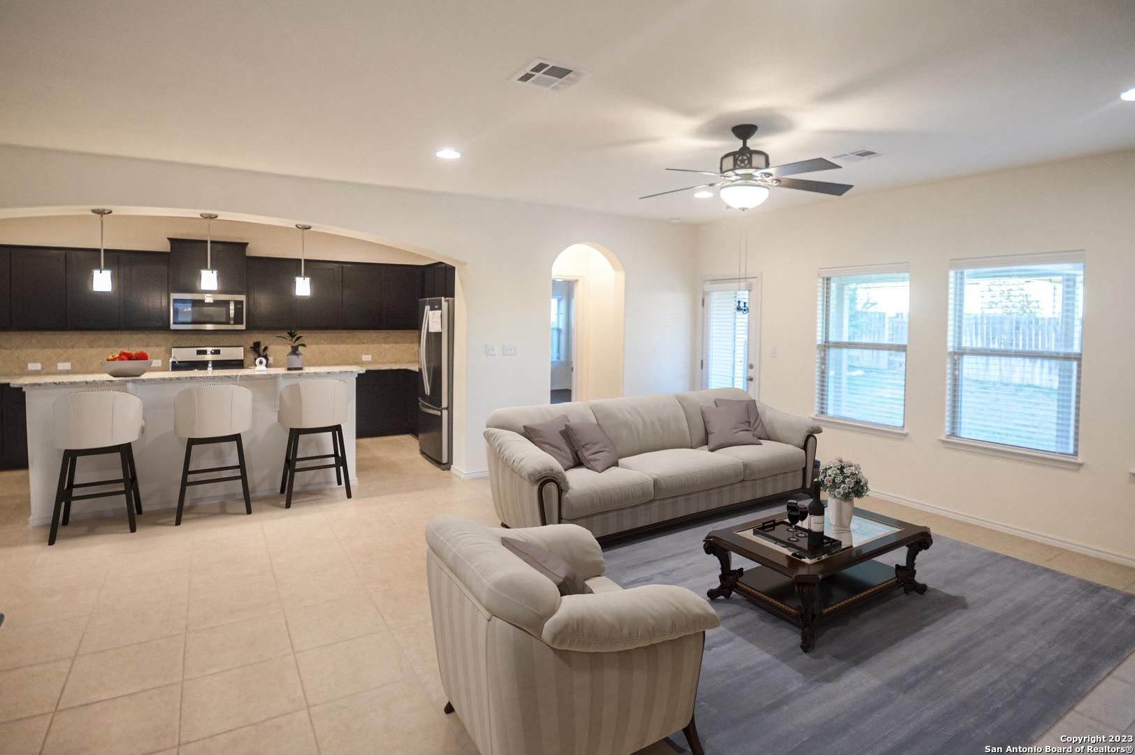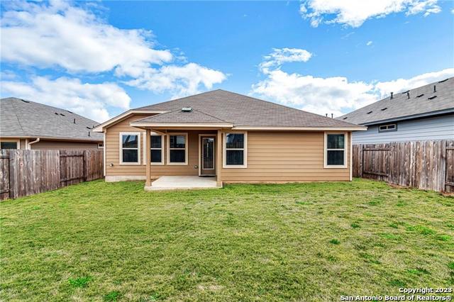 Still under builder warranty! When you enter this immaculately kept, second-home owner, barely lived in home you are greeted by an elongated foyer, perfect for greeting guests. This Buffington home, Caldwell plan offers an open floorplan with plenty of natural sunlight and smooth flow that seamlessly opens up to the living room and dining area. The spacious kitchen features granite counters, custom made cabinets with tons of storage space, breakfast bar and stainless steel appliances. Ample granite counterspace allows for your chef inspired meals to come to life while the open kitchen concept allows for entertaining while hosting and prepping meals. Dining area is open and spacious enough to seat up to 10 people. Master bedroom is tucked away from the additional bedrooms, the master suite boasts plenty of natural light with views into the large back yard. The en-suite master bath showcases a dual-sink vanity, separate walk-in shower with built in bench, soaker tub with jets and spacious walk-in closet. The backyard is leveled with full sprinkler system and blooming trees and can still use your green thumb for customization! Relax on the covered back patio and enjoy this beautiful property. If your in the mood for outdoor fun- come out and enjoy your resort style amenity center with plenty of activities to choose from and enjoy! Community is centrally located to major fwy's, shopping centers(San Marcos Outlet Mall!), dining, outdoor adventures, San Marcos river, Texas State University and more. This retreat is the perfect location between Austin and San Antonio! **HOUSE IS ALSO AVAILABLE FOR LEASE AT $1995 A MONTH**