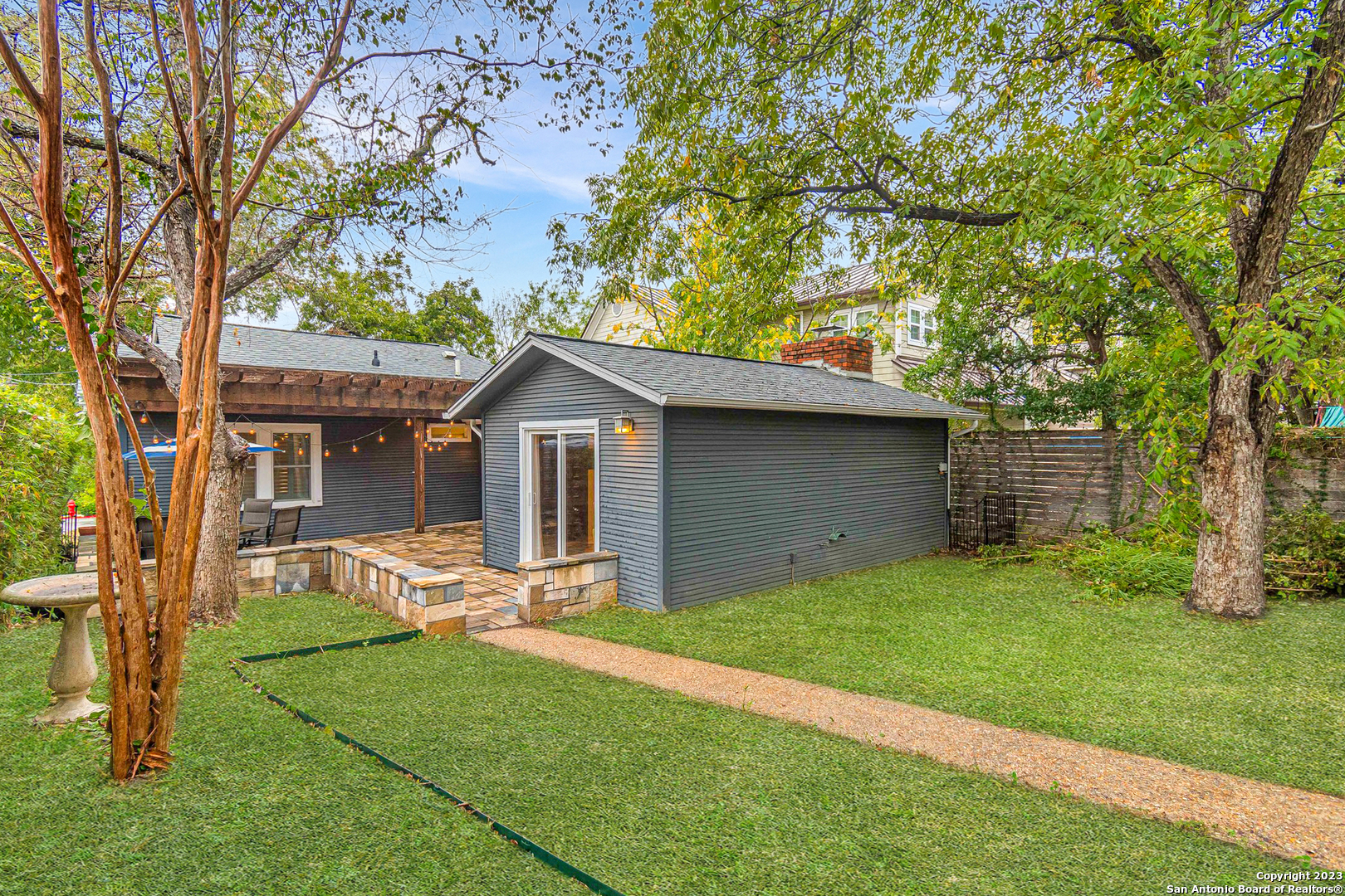 This classically charming Alamo Heights cottage blends modern living and old time charm. Beautiful oak hardwood floors in the main part of the home lead to the family room with a wood burning gas fireplace and authentic Saltillo tile floors. Several upgrades in this home, including Pella windows and sliding doors, tankless gas water heater, custom kitchen cabinets, gas cooking, gas heating, and plantation shutters throughout the home. Enjoy a private back yard with a large pergola and flagstone patio that is great for entertaining guests. The home also features an oversized 2 car carport with an attached storage area. Hard to beat this location, right in the heart of Alamo Heights!