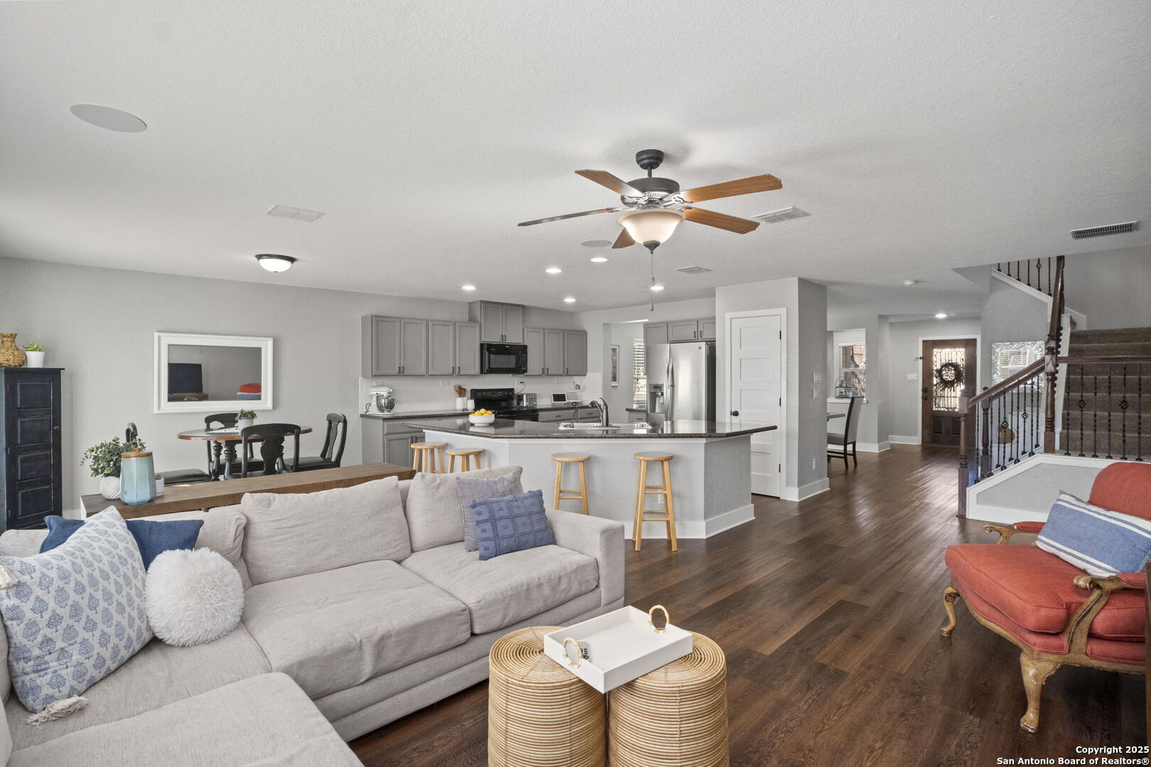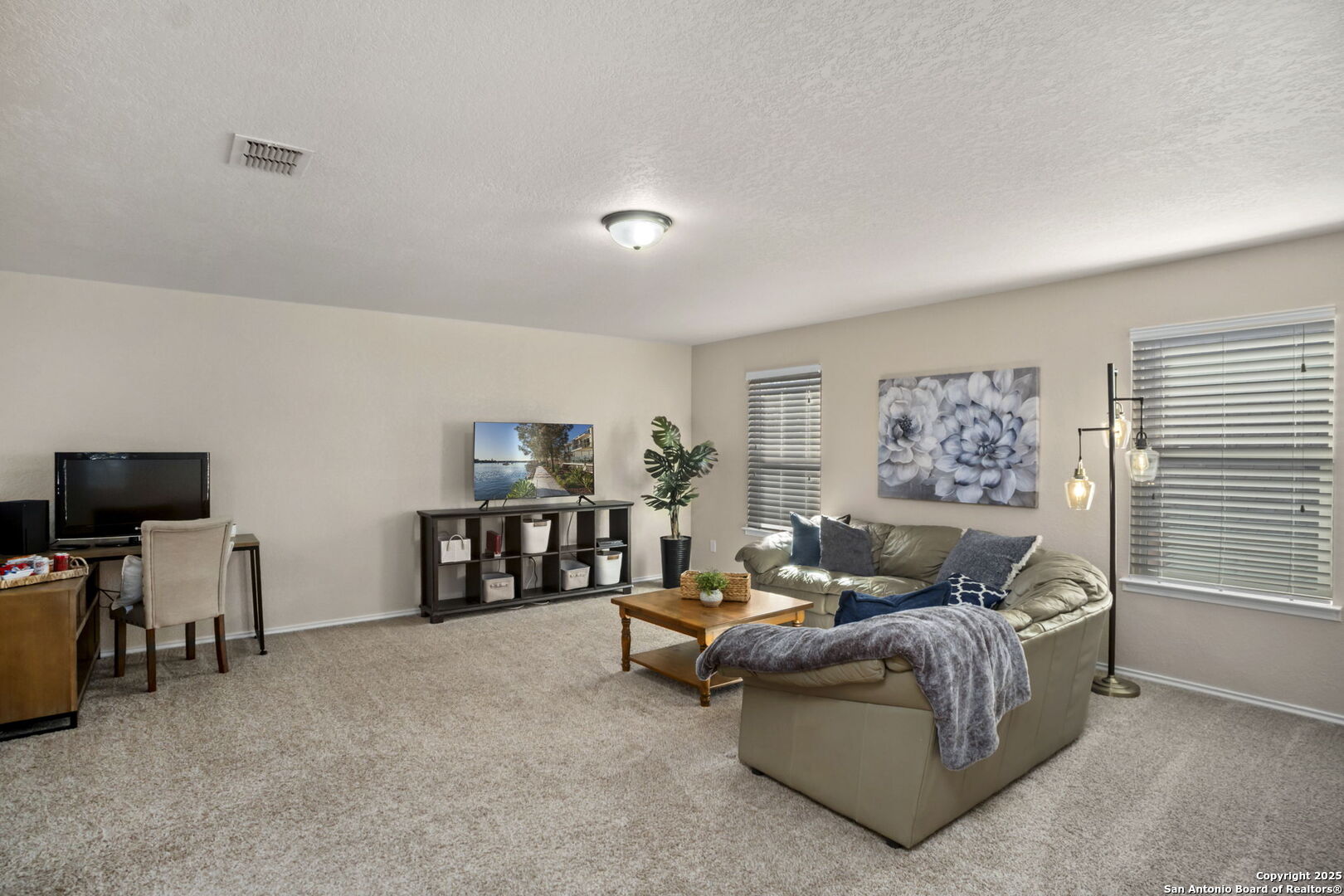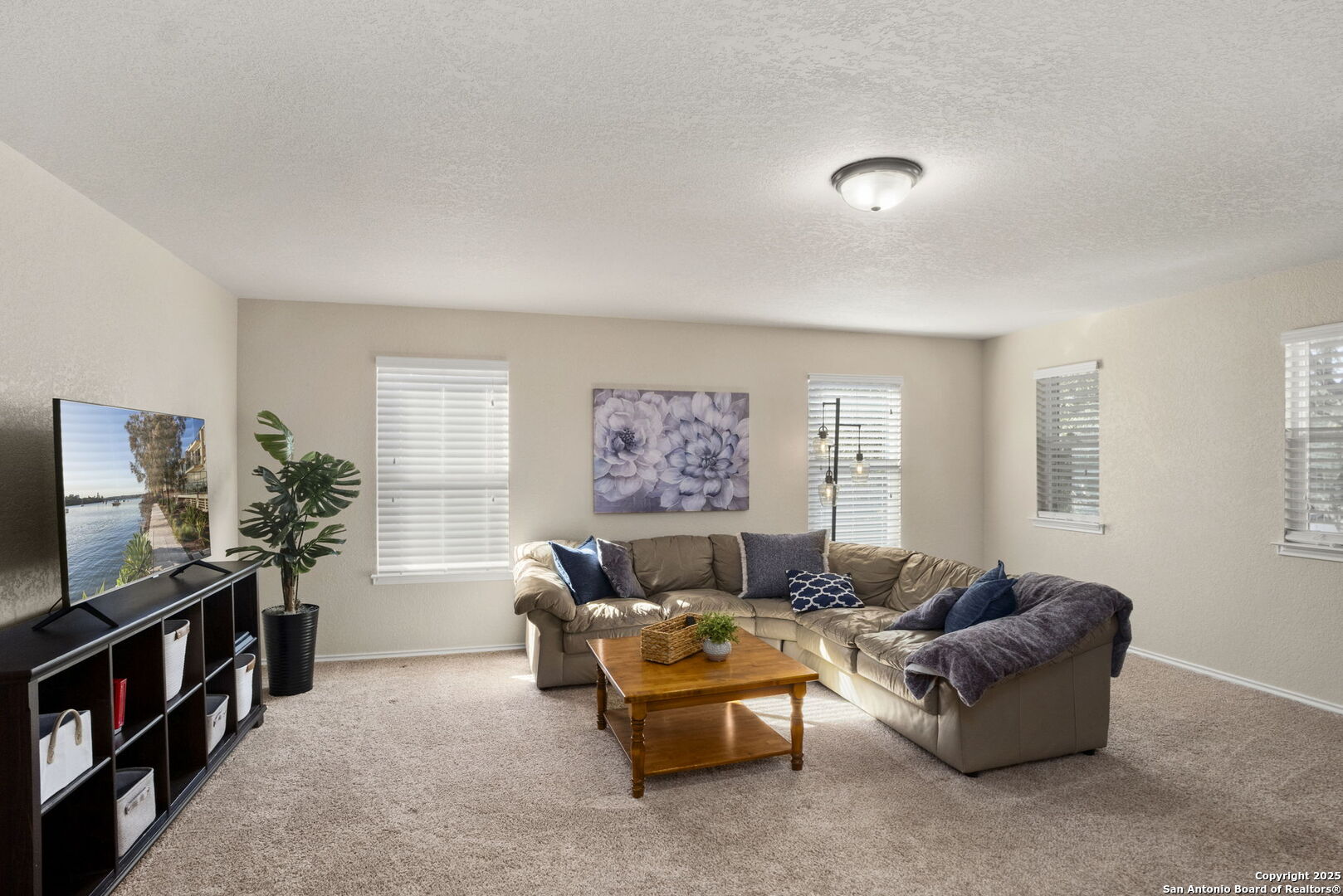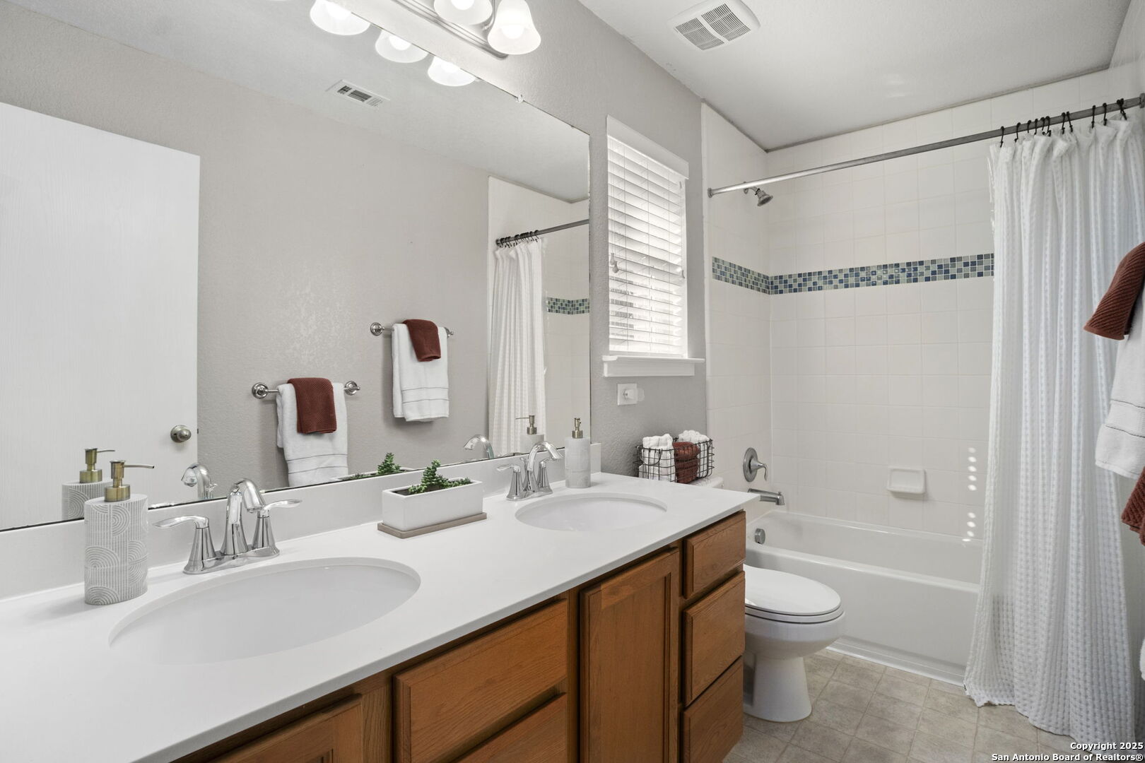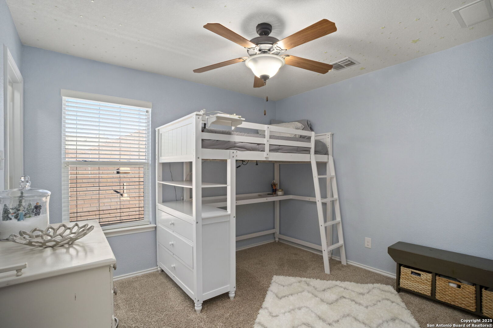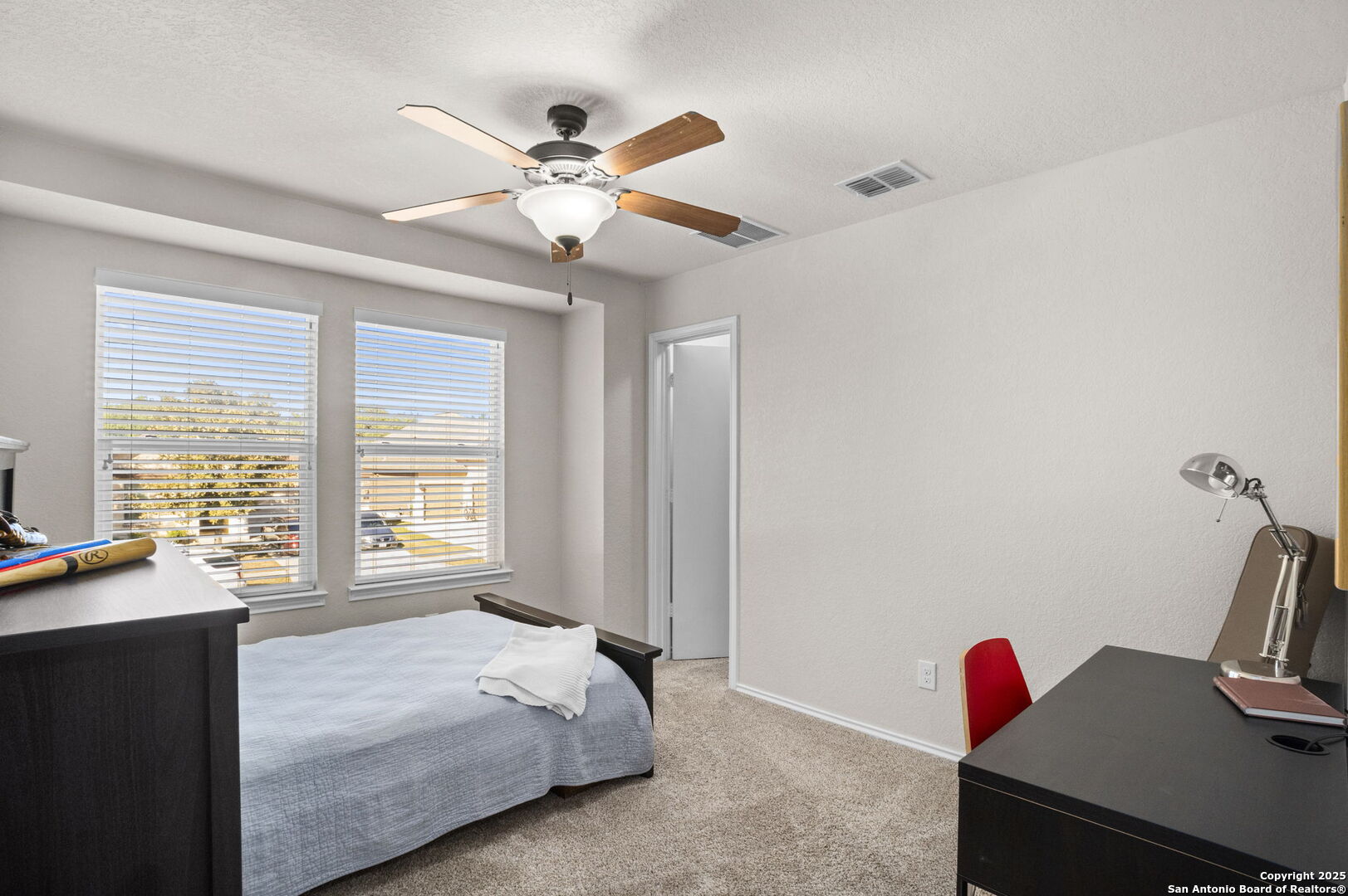 Most popular floor plan in the neighborhood with the primary bedroom downstairs. Home is in great condition and has been conscientiously maintained. Many recent upgrades to include interior paint, flooring in primary bedroom and bath and landscaping. Game room upstairs with secondary bedrooms, all with walk in closets. Additional features include ceiling fans throughout, wired for surround sound, and attic storage. Fully fenced backyard with play structure and shed that stays! Owner is offering a one year home warranty plan through Fidelity National Home Warranty. Community features include large neighborhood pool and splash pad, covered playground, basketball court, walking trail to Cibolo Nature Center and Boerne City Park. Home is walking distance to elementary and high schools.