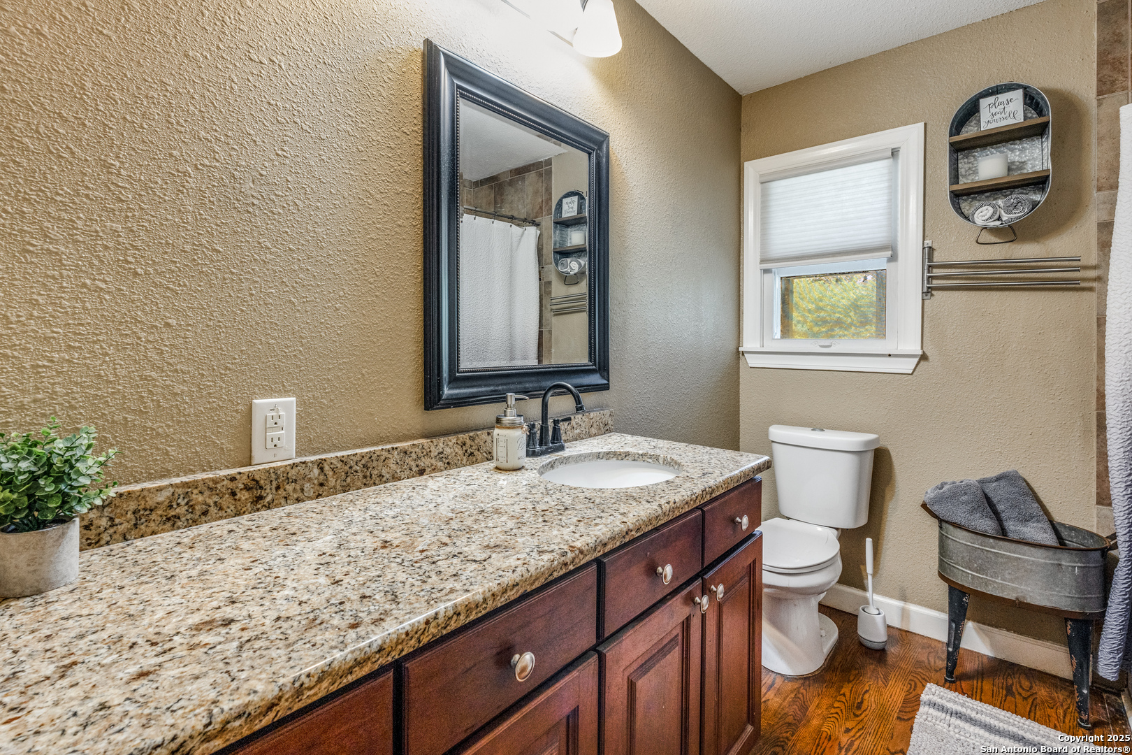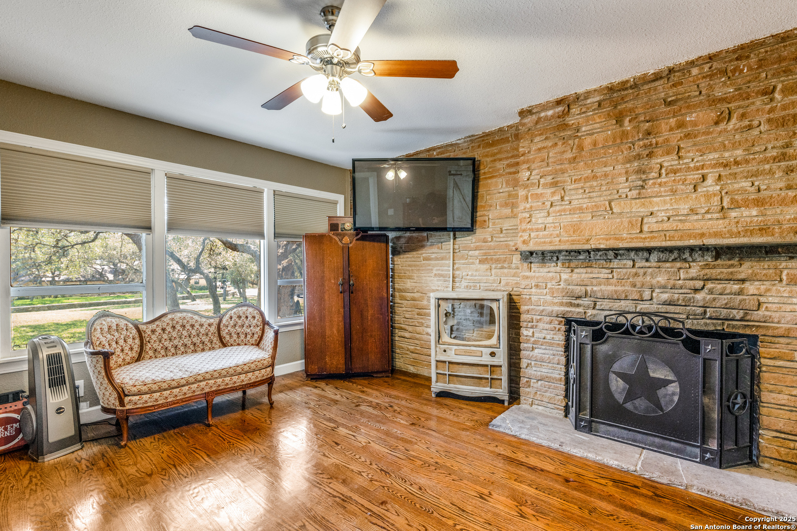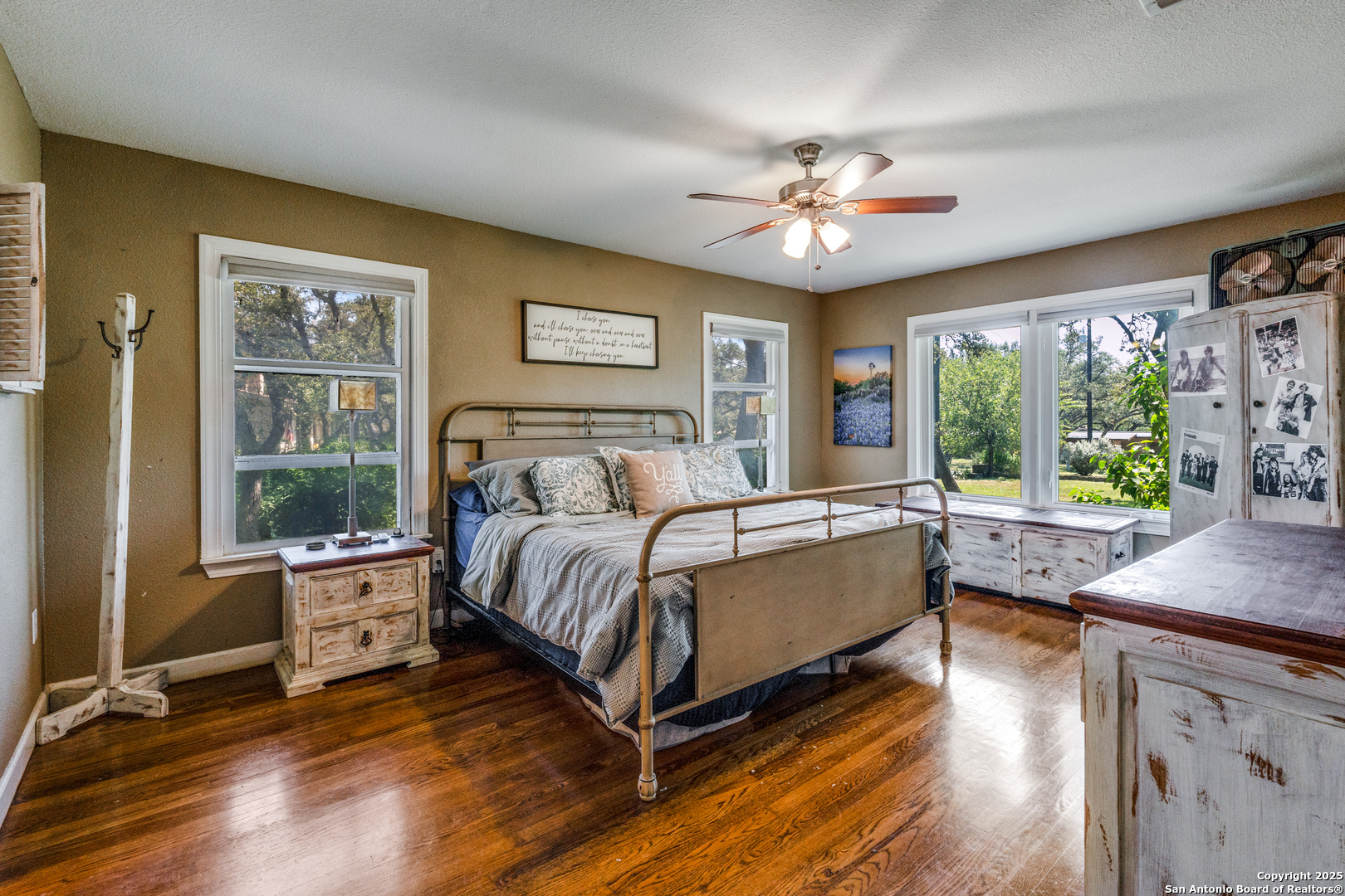 This charming 3-bedroom, 2-bathroom ranch-style home sits on an impressive 0.64-acre lot, offering plenty of space and privacy in one of the area's most sought-after neighborhoods known as Hollywood Park. The expansive yard provides endless potential, whether you envision a lush garden, outdoor entertaining space, or a future pool for relaxing and entertaining. Inside, you'll find beautiful cabinets in the kitchen featuring stainless steel appliances, granite countertops, and hardwood floors that flow seamlessly throughout the home. The spacious living areas are perfect for both everyday comfort and hosting guests. The home also features energy-efficient double pane windows, enhancing comfort and reducing utility costs. Step outside to a large covered patio, ideal for enjoying outdoors year-round. The home also includes a two-car garage and convenient proximity to shopping, dining, and major highways. Neighborhood amenities include community pool, basketball and tennis courts, sand volleyball, park/playground, and access to the Voigt Center which is perfect for entertaining large groups of guests. With no mandatory HOA and golf course access to Sonterra Country Club and nearby restaurants, this property offers the perfect blend of comfort, convenience, and opportunity.