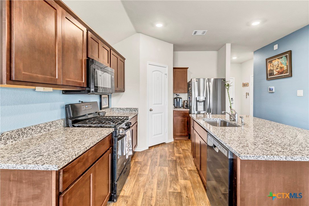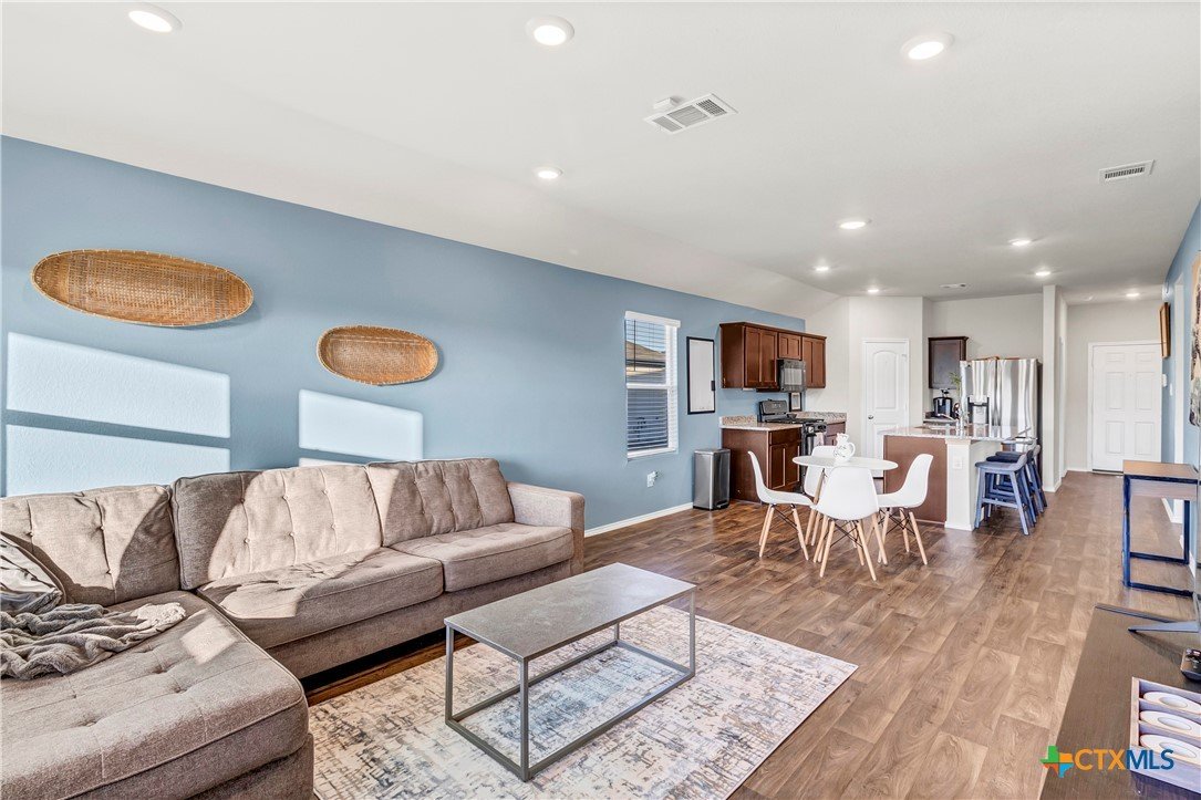 4 Bedrooms and backs to Greenspace! It is rare to find a 4-bedroom home at such an affordable price- and this one also backs up to 40 acres of parkland! This single-story home sits on an extra-wide lot backing directly to protected greenspace. Four spacious bedrooms in this single-level layout. The generous backyard showcases stunning views of the adjacent parkland – perfect for watching spectacular sunsets or enjoying the diverse bird population that visits throughout the year. Everything is move-in ready with a new roof and all major systems – heat pump HVAC, water heater, and appliances – only 3 years young! Home is still under structural warranty. Cottonwood Creek is a friendly, close-knit neighborhood that comes alive during holidays, creating a magical experience for trick-or-treaters and a welcoming atmosphere year-round. This combination of modern construction, outdoor tranquility, and community warmth creates a truly exceptional place to call home.