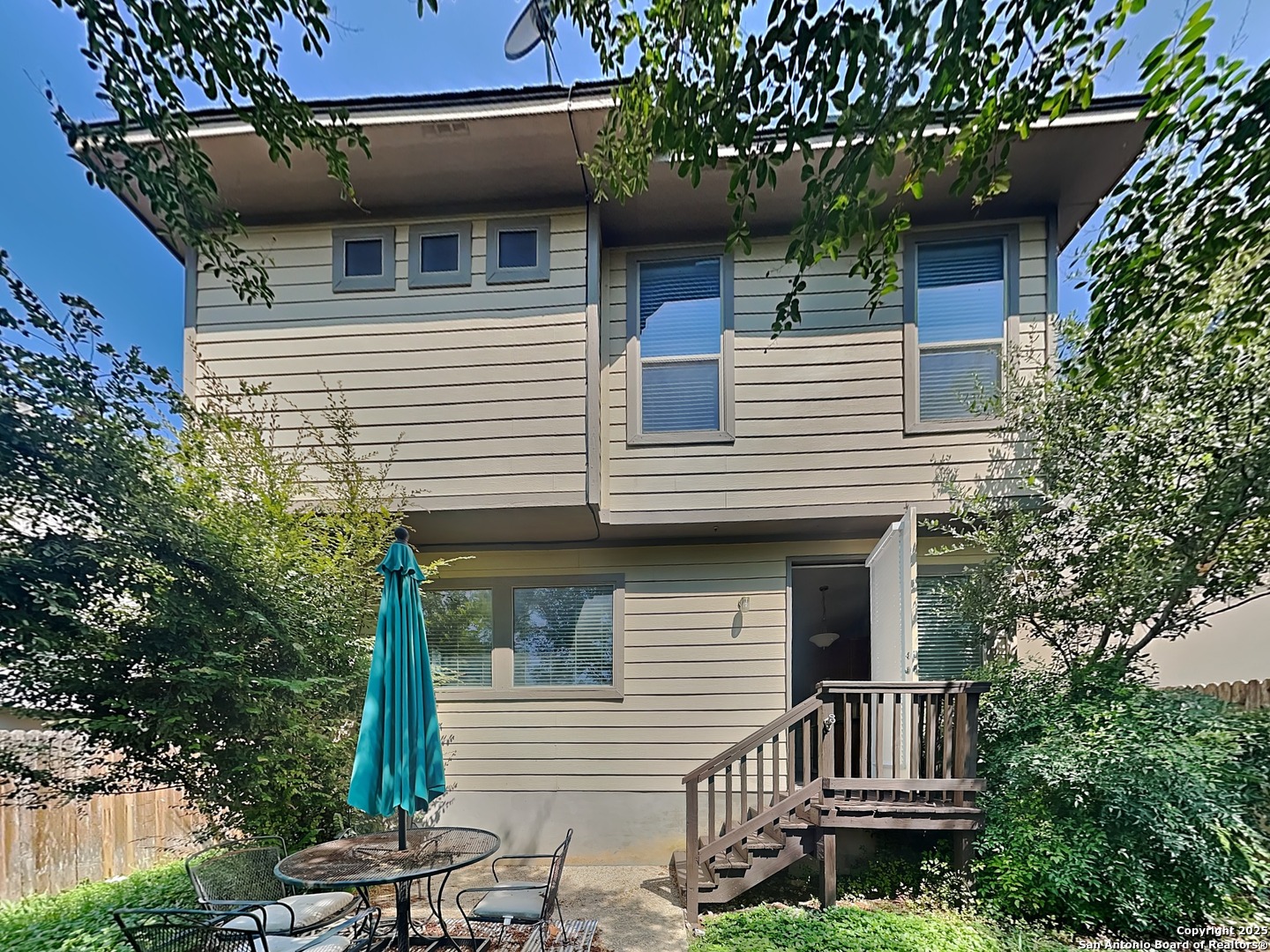 This twostory single family home in the Stone Oak area blends comfort and style. With three bedrooms upstairs, two full bathrooms and one half bathroom, it offers room for family or guests. The open floorplan downstairs includes a kitchen with breakfast bar, separate dining space, and living area. Outside you'll find a privacy fenced yard, attached twocar garage, and mature trees surrounding the lot. Interior flooring is a mix of ceramic tile and carpeting. Built in 2005, it sits in a gated community inside The Villages at Stone Oak subdivision. Zoned to excellent schools, this area offers both convenience and neighborhood amenities. Located near Stone Oak Parkway and US-281, it gives you easy access to shopping, dining, and commuting routes.