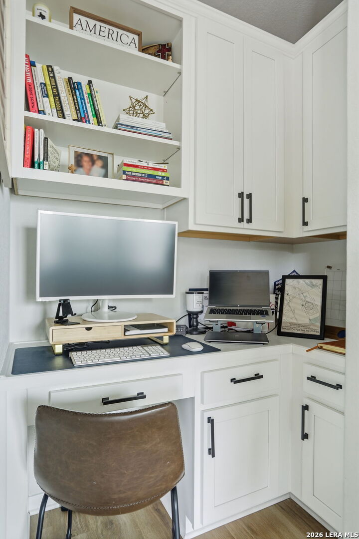 Situated on a premium corner lot, this Coventry Homes Milano floor plan offers 4 bedrooms, 3 baths, and 2,659 square feet of thoughtfully designed living space. This home shows like a model, with beautiful finishings and a clean, elevated aesthetic throughout. The open-concept layout is enhanced by luxury vinyl plank flooring in the main living areas and an upgraded kitchen featuring high-end quartz countertops and an alternate layout designed for both functionality and style. The layout offers incredible flexibility with a primary suite on the first floor, along with a secondary bedroom-ideal for guests or multi-generational living. Upstairs, you'll find two spacious bedrooms and a large second living area, perfect for a game room, media space, or additional lounge. A built-in pocket office provides a private, efficient workspace, while the Texas-sized covered patio creates the perfect setting for outdoor living and entertaining. With its striking brick exterior, designer touches, and prime corner lot positioning, this home is a standout opportunity.