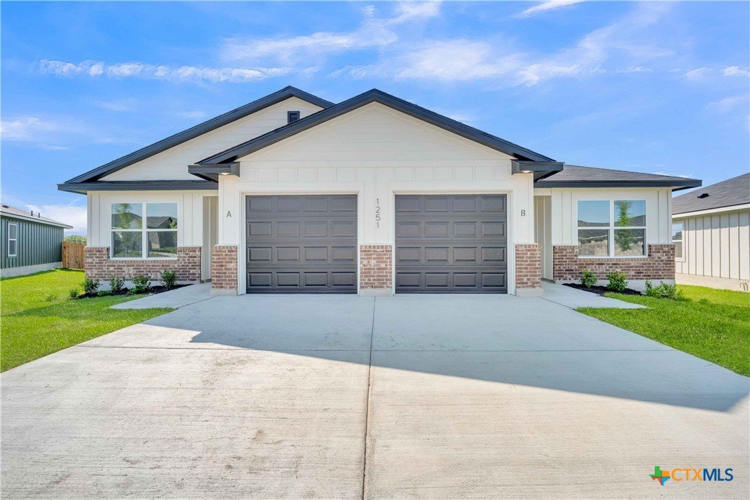 Located in the Freedom Ranch community of Copperas Cove, this modern duplex offers a low-maintenance lifestyle with thoughtful design and quality finishes throughout. Spanning a total of 2,348 square feet, each unit includes 1,174 square feet of living space with 3 bedrooms and 2 bathrooms—ideal for families or tenants seeking comfort and functionality. Stylish sand and seal concrete floors provide durability and ease of maintenance, while granite countertops in the kitchens and bathrooms add a sleek, upscale touch. Each kitchen comes fully equipped with stainless steel appliances, combining practicality with contemporary appeal. The exterior is fully landscaped with sod and features an irrigation system for effortless yard upkeep. Blending modern amenities with lasting value, this duplex is a standout choice in a growing community. Now offering interest rates as low as 3.99% with our 2-1 buy-down, 5.99% (6.803% APR) Fixed offer—a great deal to kick off your home search. Don’t miss this limited-time opportunity! Incentives are available only on select homes and may vary by community and homesite. Restrictions apply. Please contact our sales team for complete details.