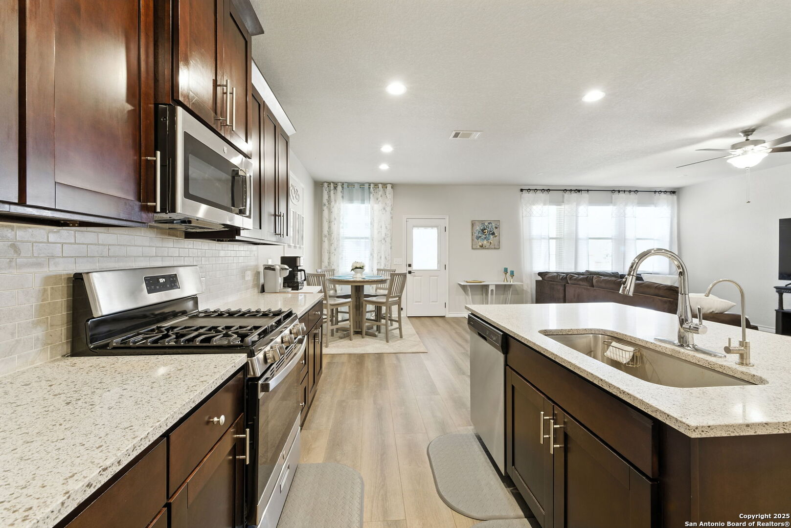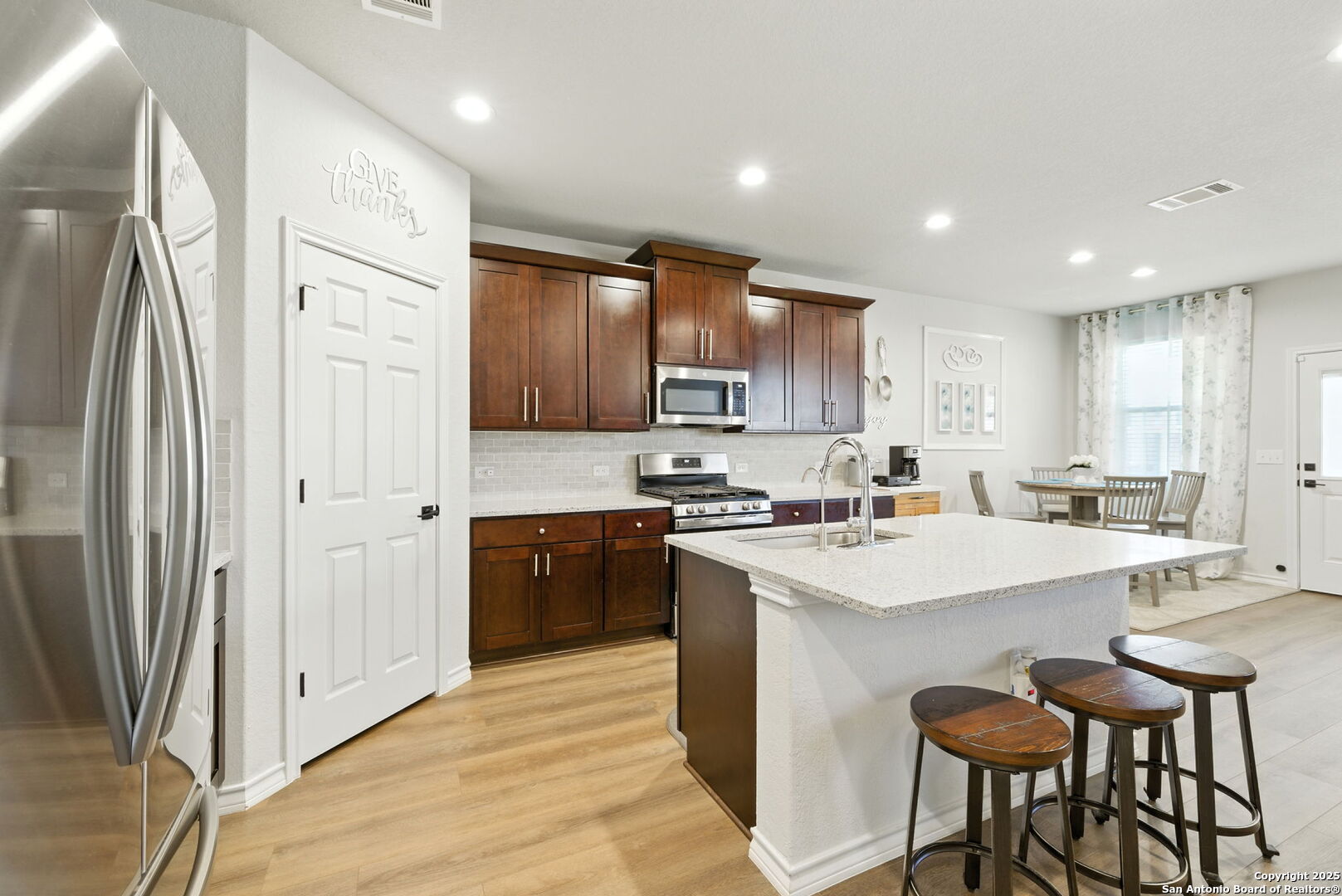 Custom designed two story open-concept home featuring a primary bedroom and a spacious home office on the first floor, with two bedrooms and bonus room upstairs. The kitchen island includes a single-basin sink and dishwasher. A private primary bedroom with bath includes generous storage space, large walk-in shower, double vanity, huge walk in closet. Relax and enjoy a spacious bonus room/ game room. For convenience enjoy a centrally located laundry room found near garage entry, Also relax in the afternoons BBQing under the huge pergola in your large back yard. Extra storage included with a 12Lx8Wx8H in the back yard! This home is ideal for all, its location is prime to all entertainment and top rated NorthSide ISD schools. Convenient access to 1604 and 151 which can quickly get you to any location in mins. Neighborhood amenities include two pools and parks 1st @ High Lonesome with a Gym, tennis and pickleball court, basketball court and large playground. 2nd@ Trail dust center also has a pool with park and playground. This community offers extensive walking trails that wind throughout Stillwater Ranch come see what this amazing home and community has to offer! Schedule a tour today!