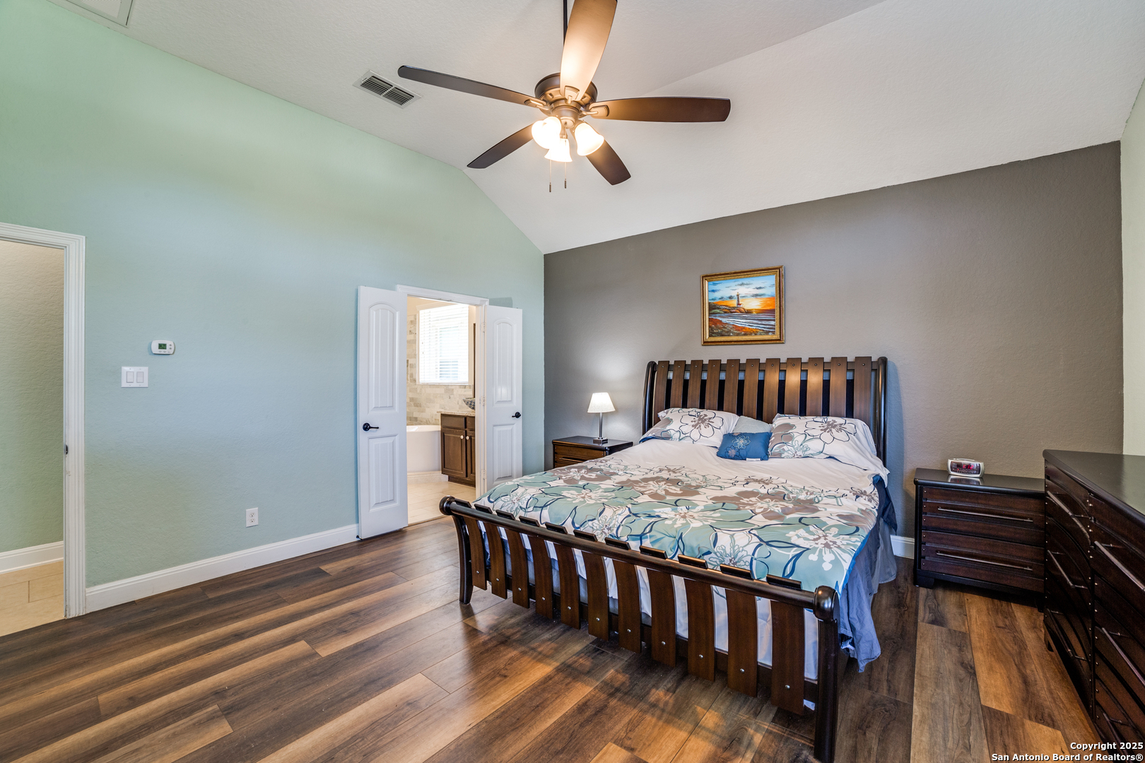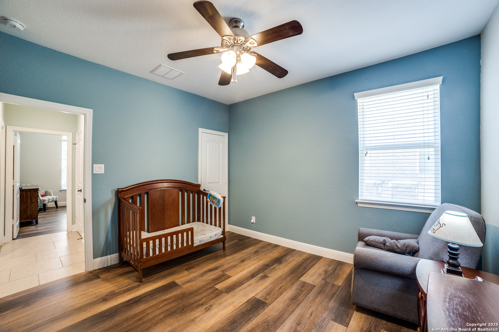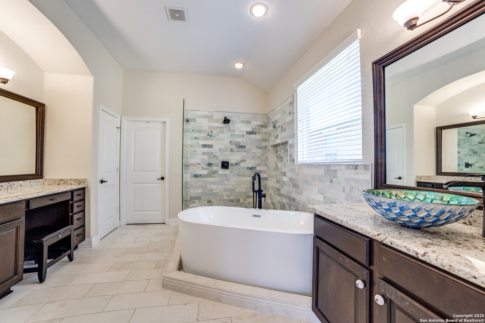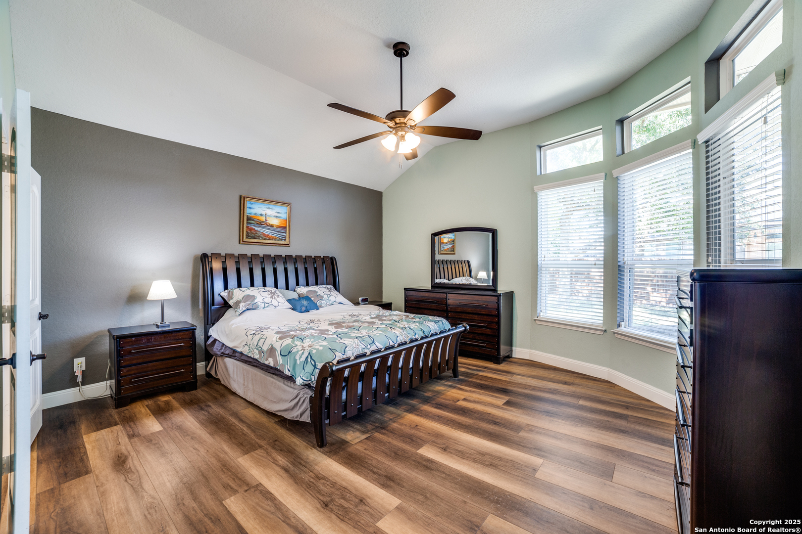 This beautifully maintained Chesmar-built, 1.5 STORY home in the sought after Alamo Ranch community is truly better than new! OWNER IS OFFERING A PAINT ALLOWANCE. Featuring a study, plus FOUR spacious bedrooms, all with walk in closets, this home offers exceptional versatility, including TWO PRIMARY SUITES one downstairs and another upstairs, which is currently used as a game room but can easily serve as a second owner's retreat! Step inside to an open floor plan with high ceilings and NO CARPETING throughout, offering both elegance and easy maintenance. A versatile French door provides access to the large COVERED patio. The GOURMET KITCHEN is a chef's dream including under counter lighting and ample storage! The home also includes a sprinkler system, gutters, water softener, and a NEW ROOF replaced just 1.5 years ago for added peace of mind. A 3 CAR GARAGE with a professionally coated floor provides ample storage, while the vibrant Alamo Ranch community offers fantastic amenities, including a pool, tennis court, basketball court, sports court, playground and BBQ pit. Conveniently located within walking distance to HEB and near Loop 1604, SeaWorld, and plenty of shopping and restaurants, this home is a must See! Don't miss out on this incredible opportunity-schedule your showing today!