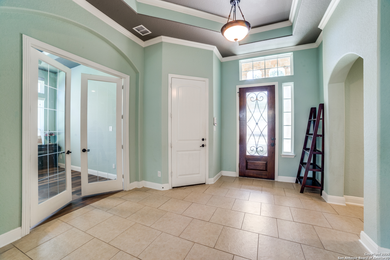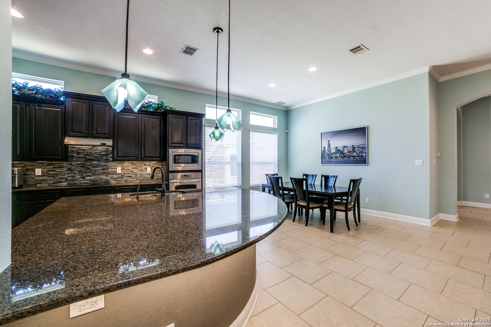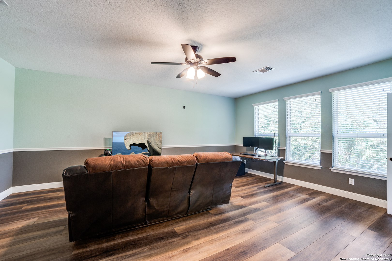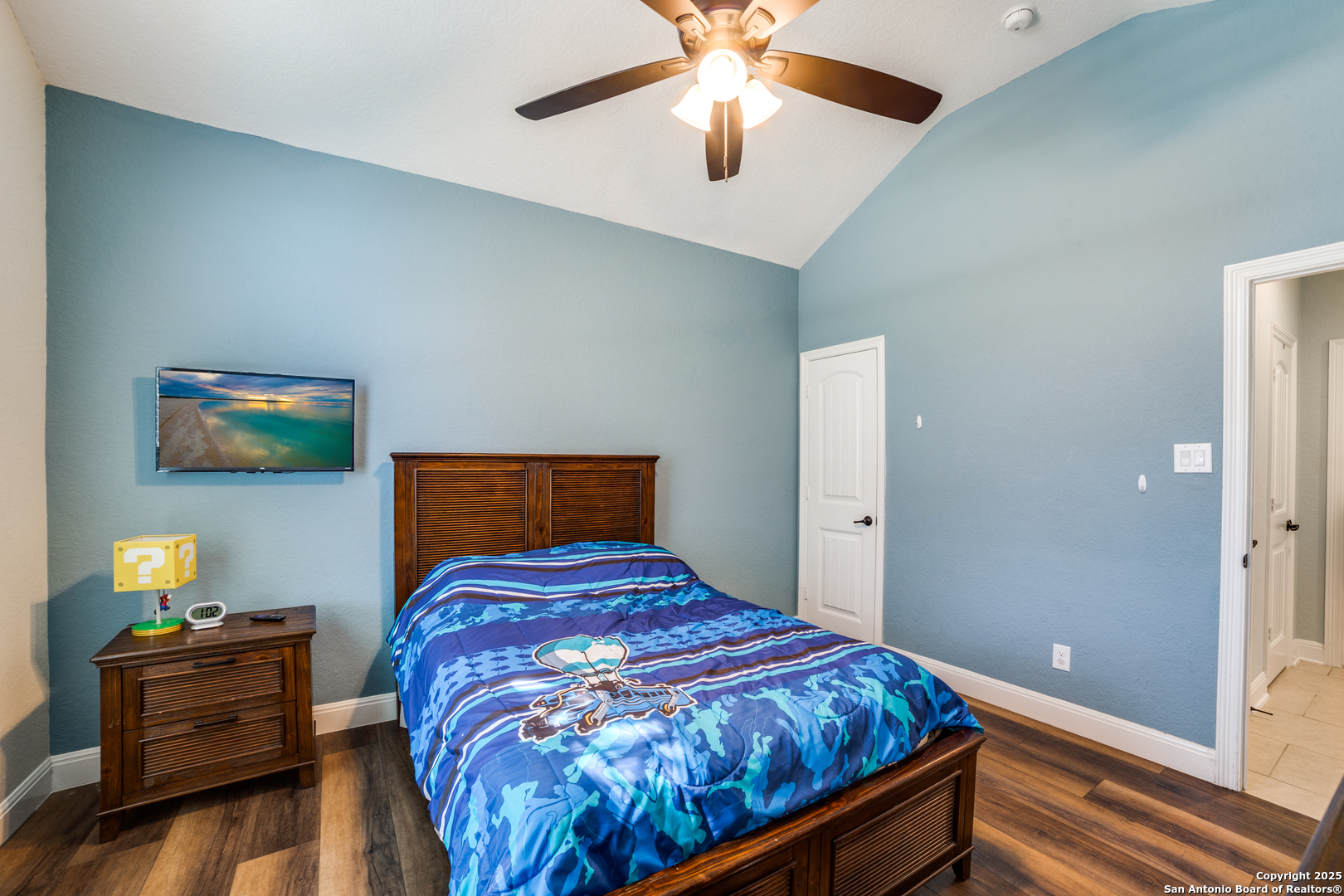 This beautifully maintained Chesmar-built, 1.5 STORY home in the sought after Alamo Ranch community is truly better than new! OWNER IS OFFERING A PAINT ALLOWANCE. Featuring a study, plus FOUR spacious bedrooms, all with walk in closets, this home offers exceptional versatility, including TWO PRIMARY SUITES one downstairs and another upstairs, which is currently used as a game room but can easily serve as a second owner's retreat! Step inside to an open floor plan with high ceilings and NO CARPETING throughout, offering both elegance and easy maintenance. A versatile French door provides access to the large COVERED patio. The GOURMET KITCHEN is a chef's dream including under counter lighting and ample storage! The home also includes a sprinkler system, gutters, water softener, and a NEW ROOF replaced just 1.5 years ago for added peace of mind. A 3 CAR GARAGE with a professionally coated floor provides ample storage, while the vibrant Alamo Ranch community offers fantastic amenities, including a pool, tennis court, basketball court, sports court, playground and BBQ pit. Conveniently located within walking distance to HEB and near Loop 1604, SeaWorld, and plenty of shopping and restaurants, this home is a must See! Don't miss out on this incredible opportunity-schedule your showing today!
