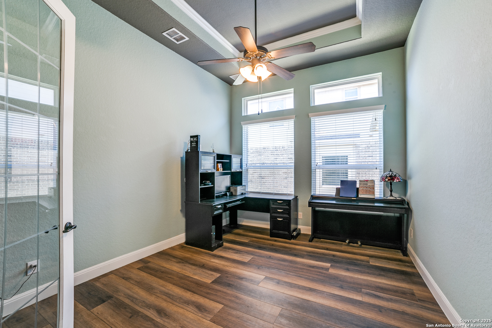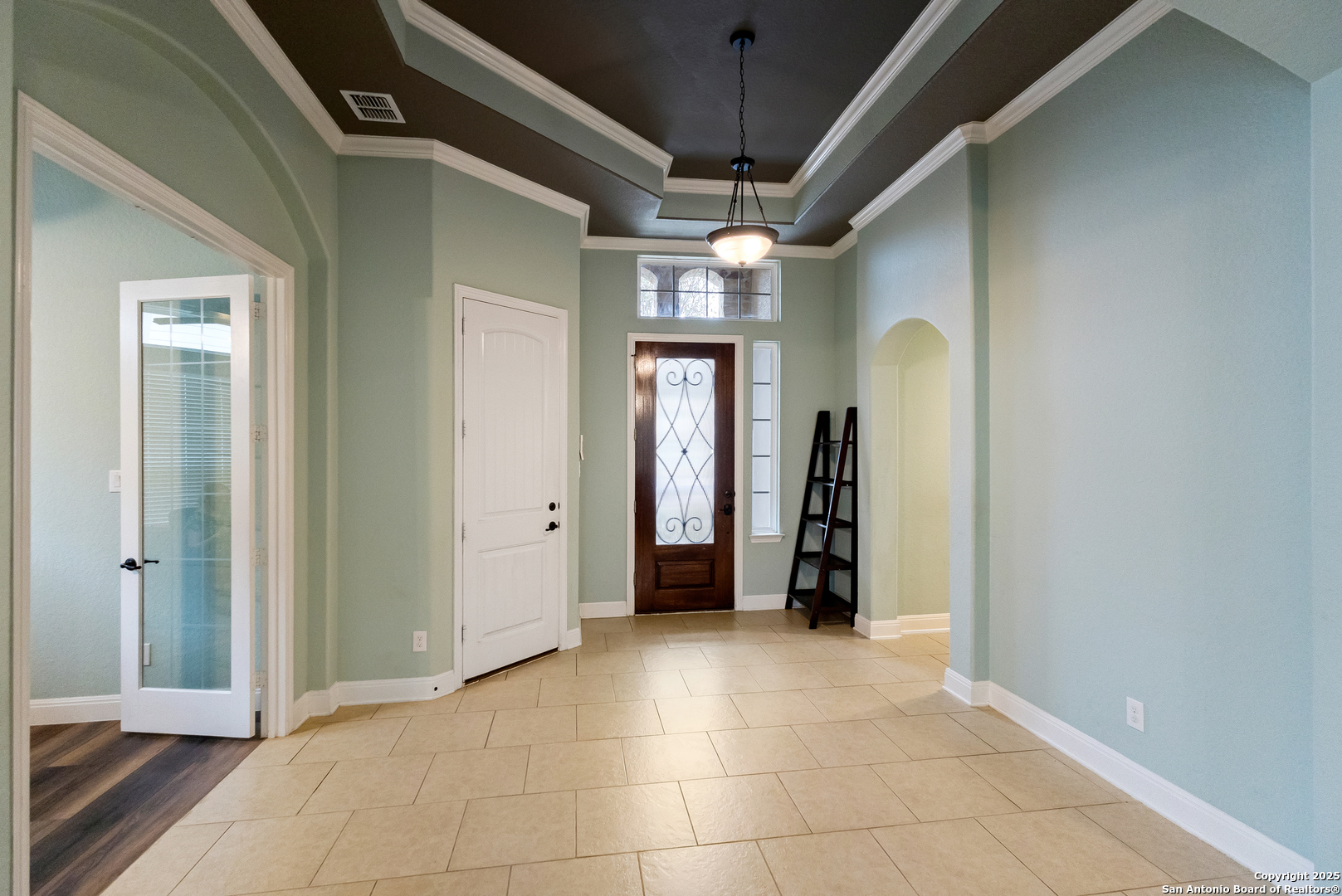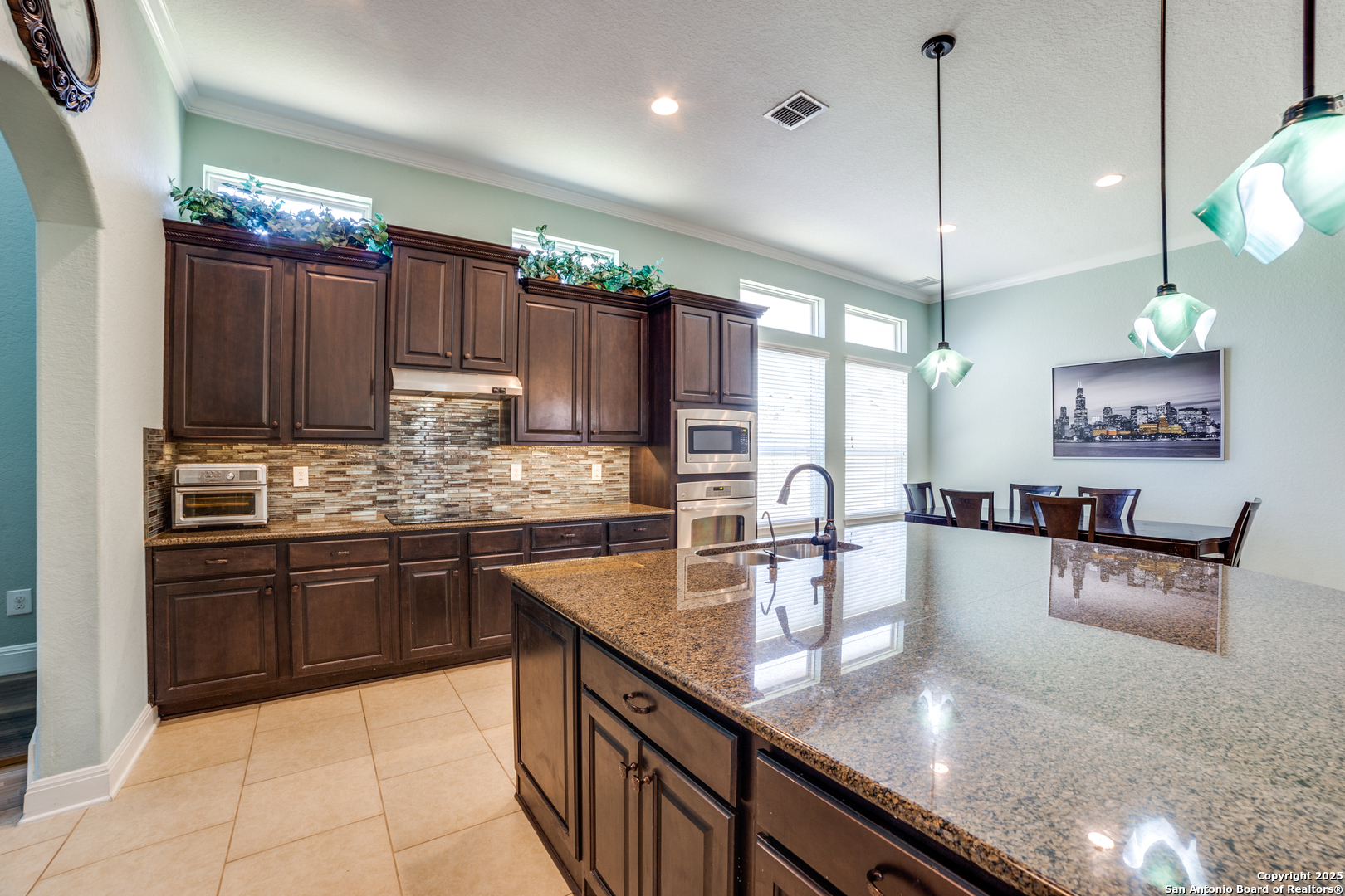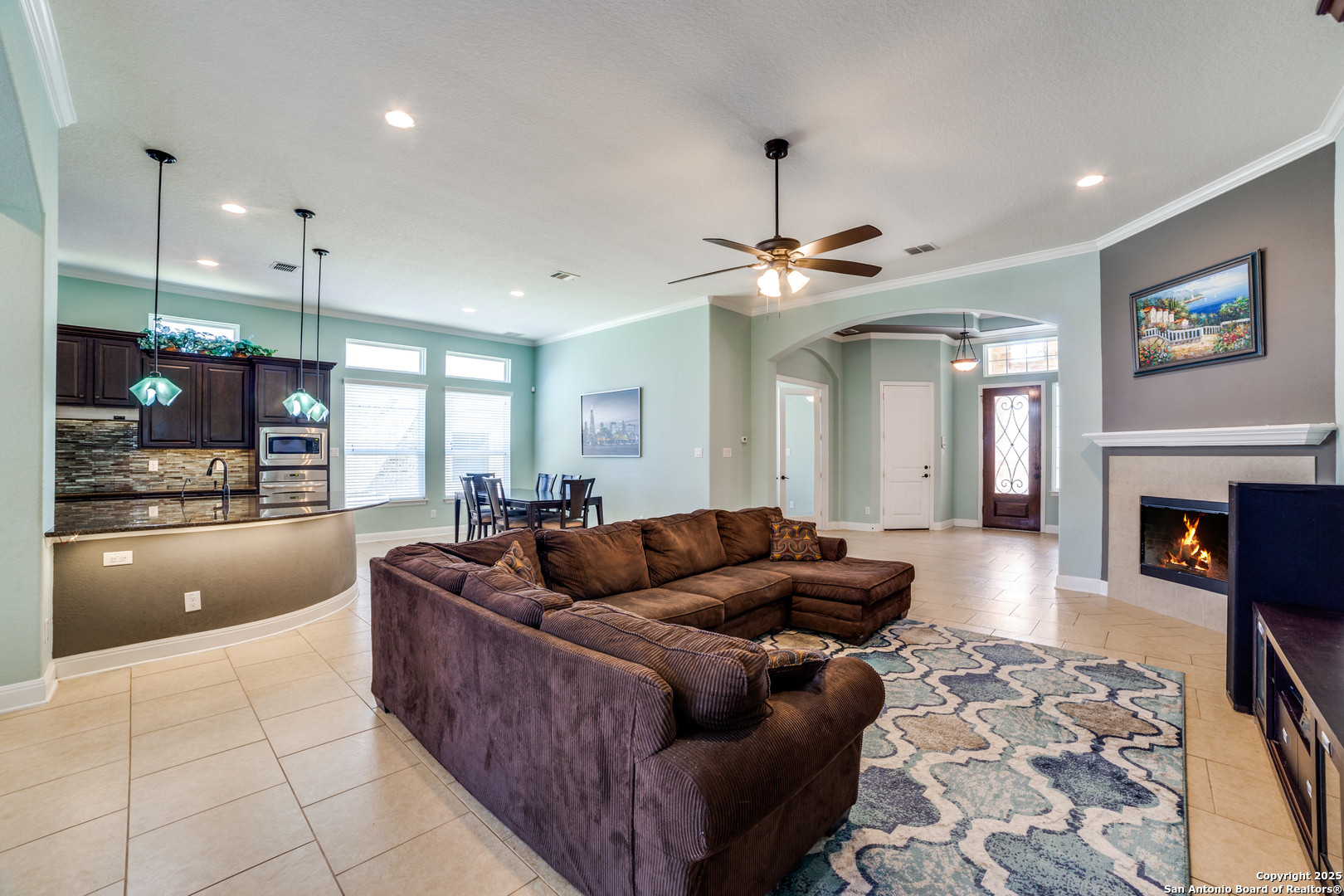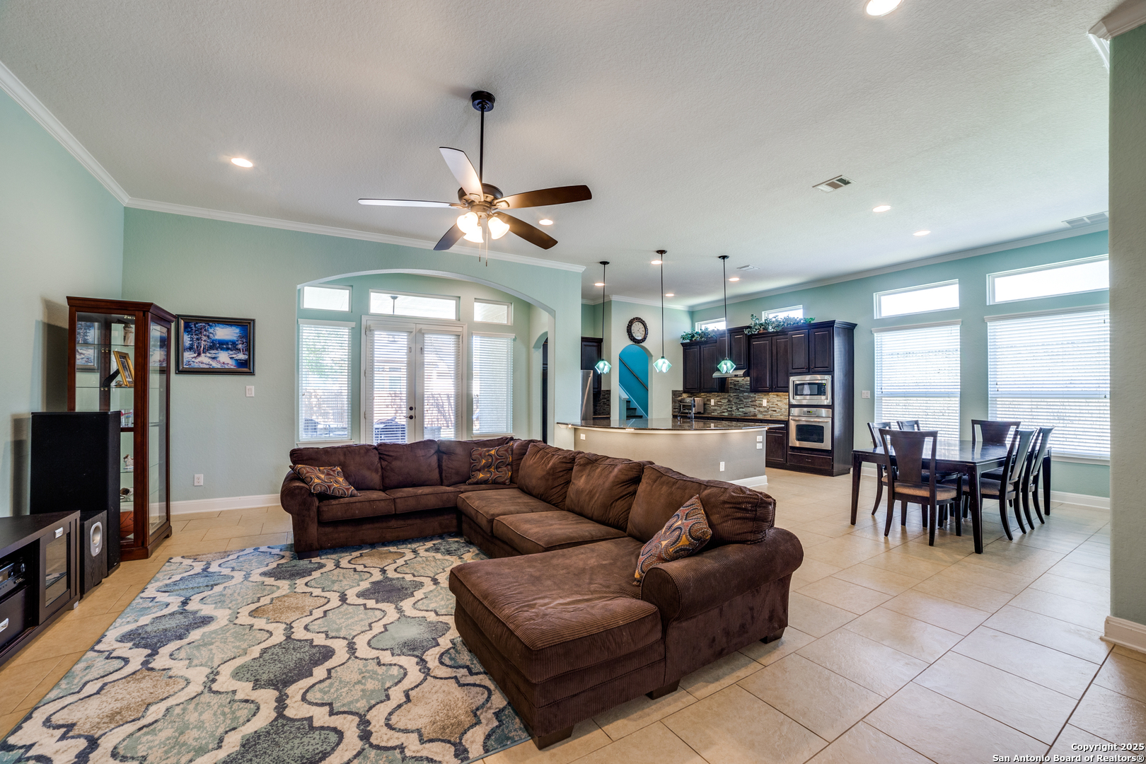 This beautifully maintained Chesmar-built, 1.5 STORY home in the sought after Alamo Ranch community is truly better than new! OWNER IS OFFERING A PAINT ALLOWANCE. Featuring a study, plus FOUR spacious bedrooms, all with walk in closets, this home offers exceptional versatility, including TWO PRIMARY SUITES one downstairs and another upstairs, which is currently used as a game room but can easily serve as a second owner's retreat! Step inside to an open floor plan with high ceilings and NO CARPETING throughout, offering both elegance and easy maintenance. A versatile French door provides access to the large COVERED patio. The GOURMET KITCHEN is a chef's dream including under counter lighting and ample storage! The home also includes a sprinkler system, gutters, water softener, and a NEW ROOF replaced just 1.5 years ago for added peace of mind. A 3 CAR GARAGE with a professionally coated floor provides ample storage, while the vibrant Alamo Ranch community offers fantastic amenities, including a pool, tennis court, basketball court, sports court, playground and BBQ pit. Conveniently located within walking distance to HEB and near Loop 1604, SeaWorld, and plenty of shopping and restaurants, this home is a must See! Don't miss out on this incredible opportunity-schedule your showing today!