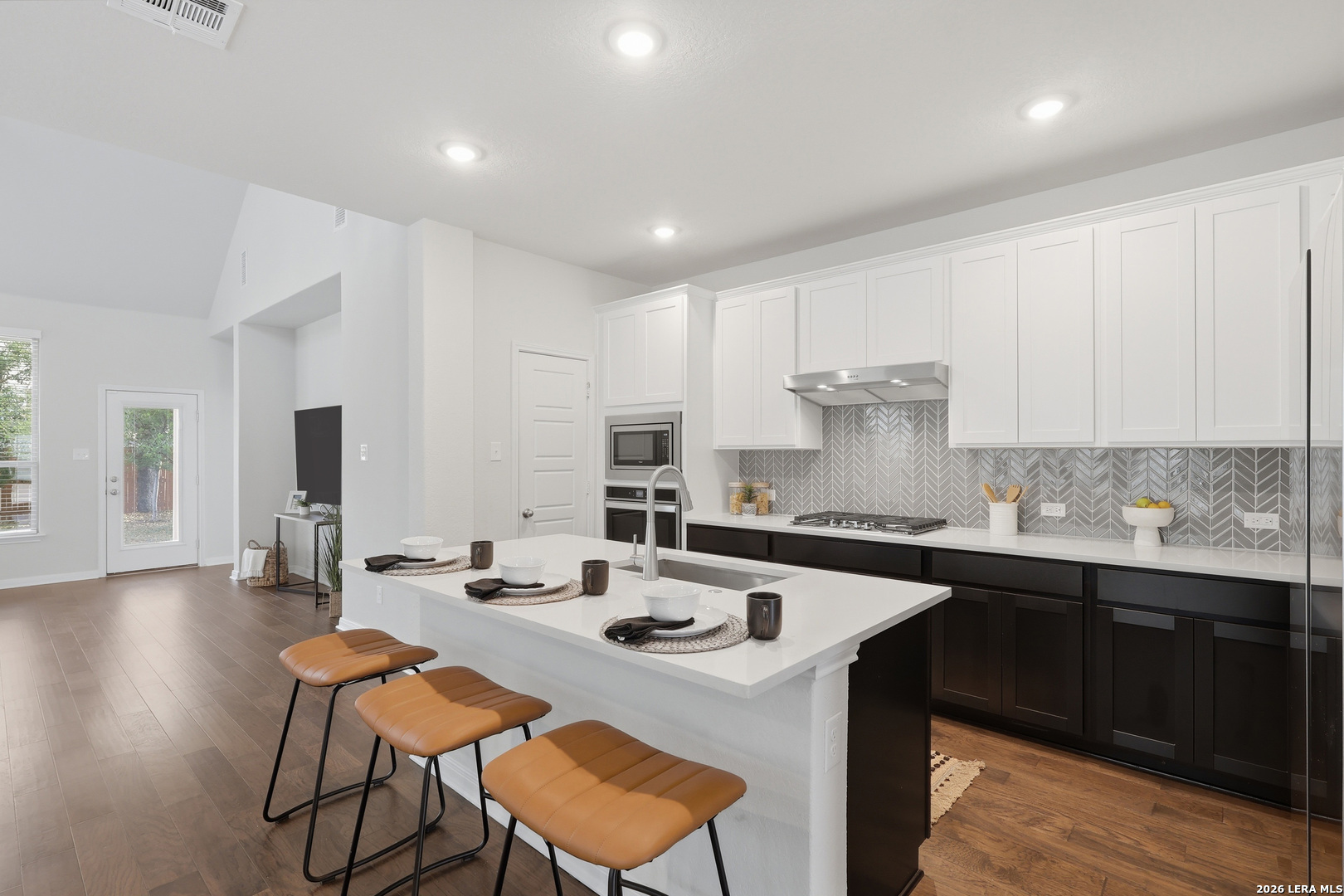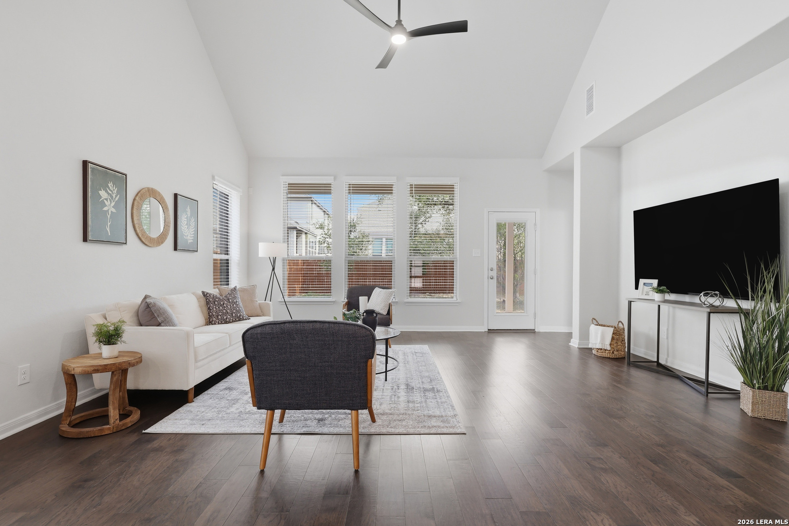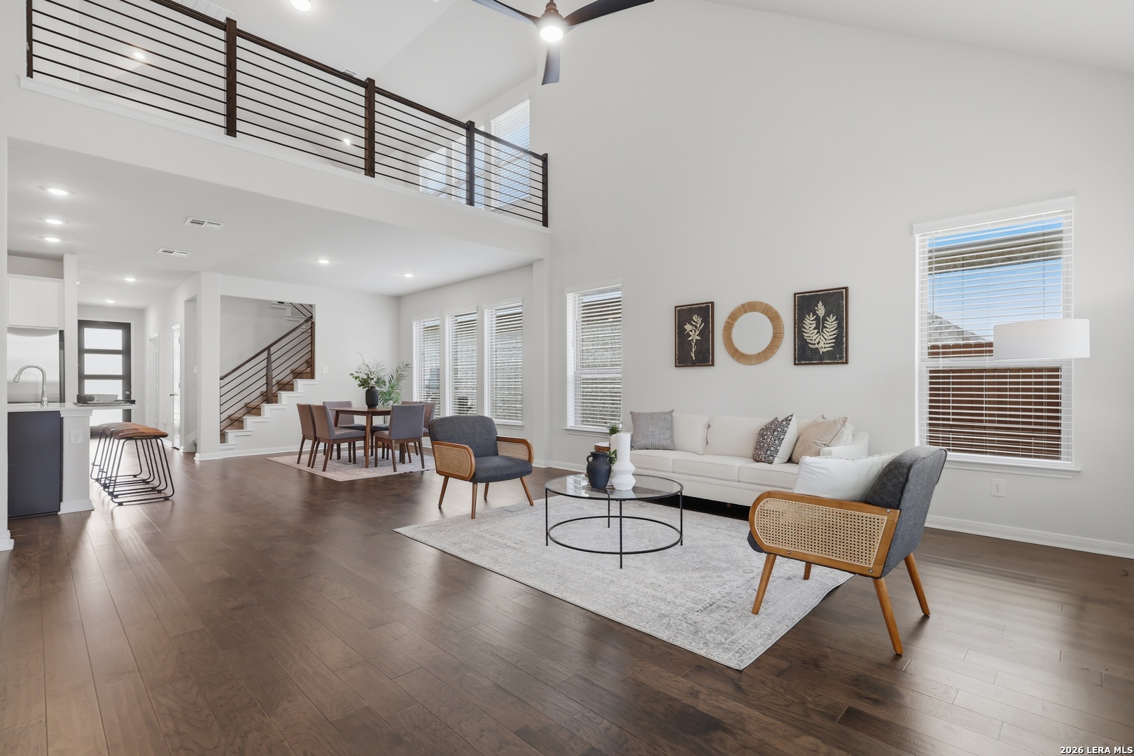 Located in the desirable Davis Ranch community, this turn-key and meticulously maintained home looks and feels like new. Designed for both comfort and entertaining- the high ceilings, luxurious engineered wood flooring, and stylish horizontal railings give this home the wow factor. The heart of the home is the stunning kitchen, featuring sleek quartz countertops, a built in oven, and a walk-in pantry. for your convenience, the 75 inch flat screen mounted in the living room comes with the home! The owner's suite serves as a private retreat, complete with a window bench, 11 ft ceiling, and a spa-like ensuite bathroom featuring an oversized walk-in shower and a crisp white quartz double vanity. A designated office, large laundry room and a half bathroom complete the main level. Upstairs, there is so much room for activities with a large loft overlooking the downstairs living room. Secondary bedrooms are all spacious and each have their own walk in closet. Step outside to the covered patio and admire your majestic mature tree. Within the community, residents enjoy two sparkling resort-style pools with cabanas, two playgrounds, a shaded picnic pavilion, and pickleball court. Ideally located within walking distance to the highly rated elementary and middle schools, and just two miles to the newest Northside Highschool. The community backs up to the sprawling wilderness of Government Canyon State Natural Area which offers over 40 miles of scenic biking and hiking trails. Don't miss the opportunity to call this beauty home- schedule your private showing today, or join us for an open house this Saturday and Sunday from 1-4pm.