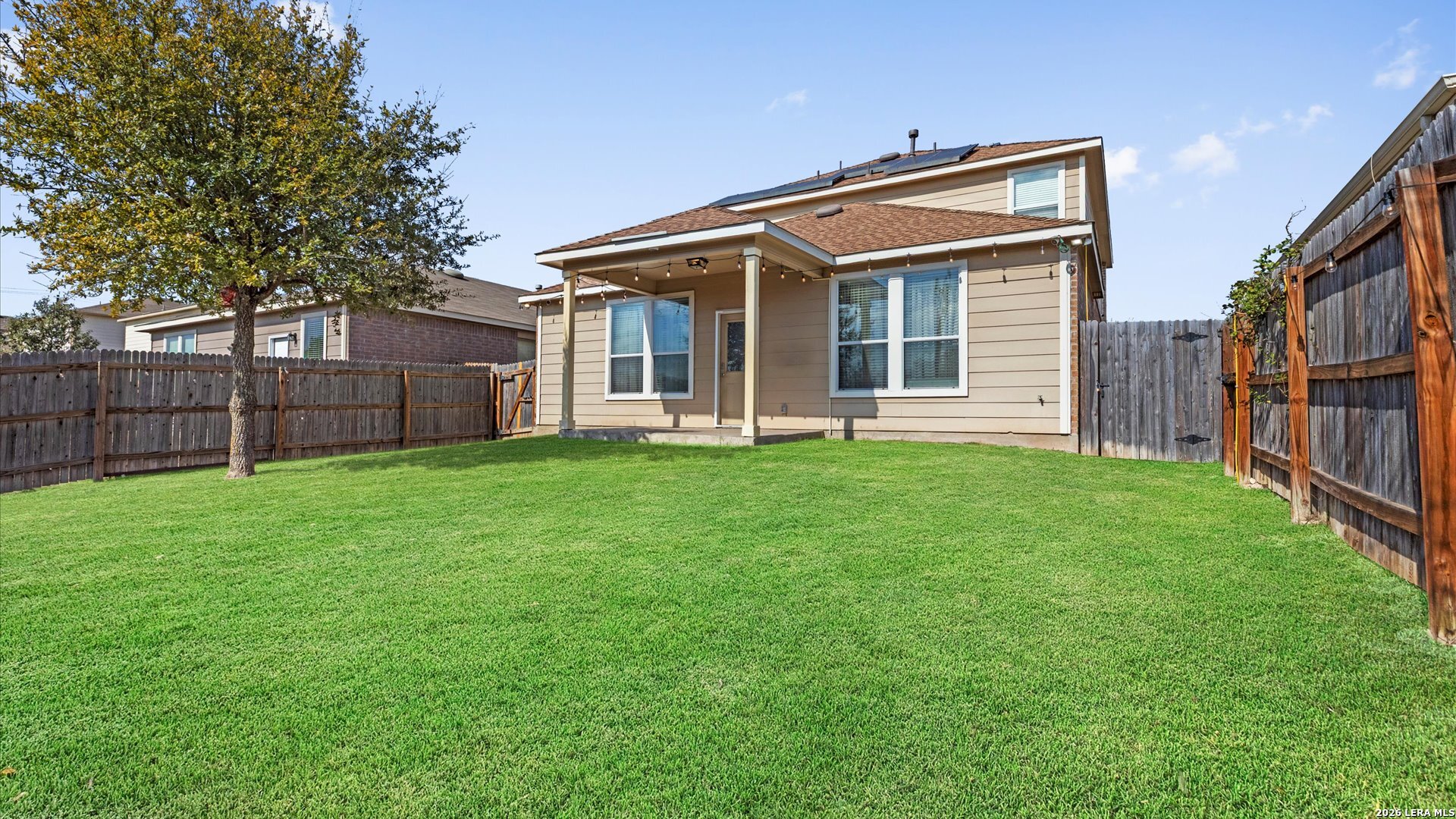 Welcome to your new home in the prestigious Alamo Ranch area! Nestled in the beautiful Hill Country you get the best of both worlds, small town living with all the amenities that San Antonio has to offer. This gorgeous five bedroom home boasts high ceilings, an open floor plan, and plenty of room for entertaining. Your primary bedroom with inverted ceilings will be your retreat at the end of the day. An ensuite bathroom with a beautifully tiled walk-in shower, pebble floors and built in bench will help you wash away your worries. All secondary bedrooms and game room are located upstairs for that extra bit of privacy you crave. Backed up to a greenbelt, you'll have scenic views and peaceful days as you plant your new garden. With a newer roof and HVAC, along with updated kitchen appliances and a tankless water heater, we've taken care of all your high-ticket items from the start. Solar panels will help deter those high Texas summer bills. Equipped with a Tesla power wall, you can charge your electric car at your convenience rather than waiting in line. With close proximity to shopping, highways, and more, this home has it all!