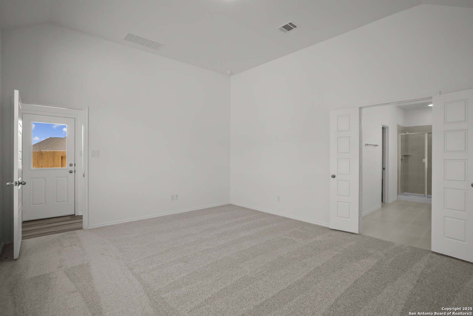 The dramatic 2-story entry makes a bold statement as you enter. An open-concept floor plan makes entertaining effortless, as the dining, kitchen, and great room areas are easily accessible. Enjoy cozy evenings in front of the great room fireplace. The first floor includes both the primary suite and a guest bedroom that is ideal for visitors. The primary suite boasts a beautiful bowed window overlooking the backyard, a bench seat in the shower, with a a bath as well, and two spacious closets. The study area is ideal for a home office and offers privacy and a convenient first-floor location. The covered patio overlooks a well-manicured lawn for outdoor fun and barbecues. Upstairs you'll find two additional bedrooms a large game room AND a media room! All bedrooms have spacious walk-in closets. Designer finishes throughout ensure that you'll love coming home each day. Schedule your tour today!