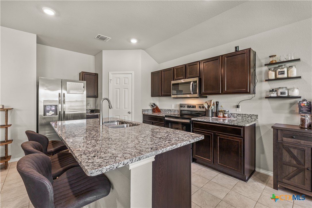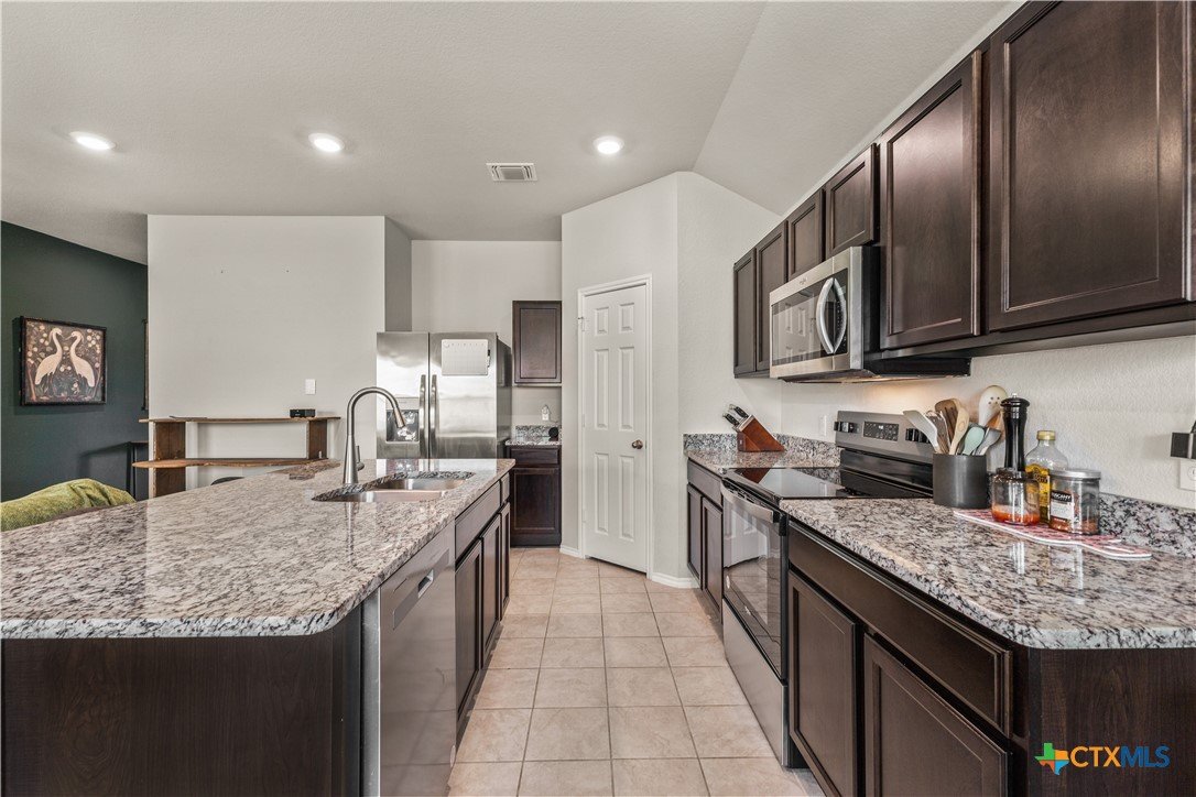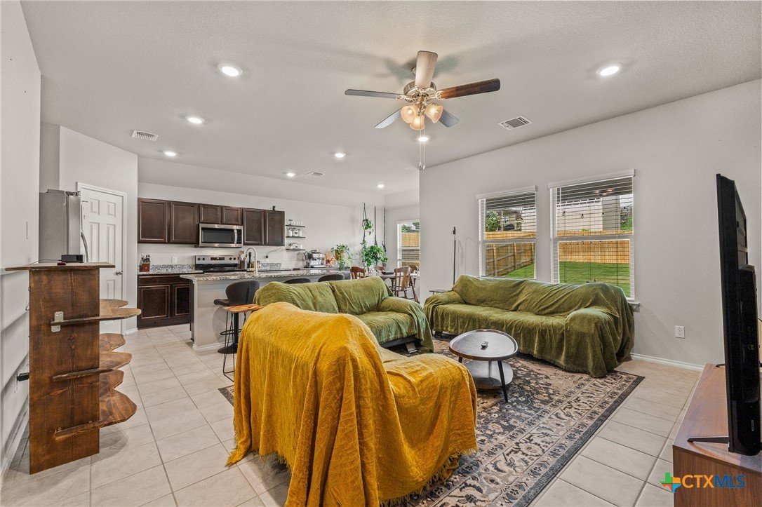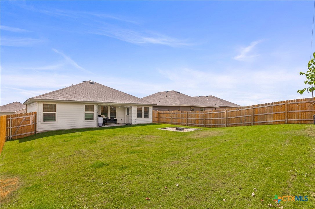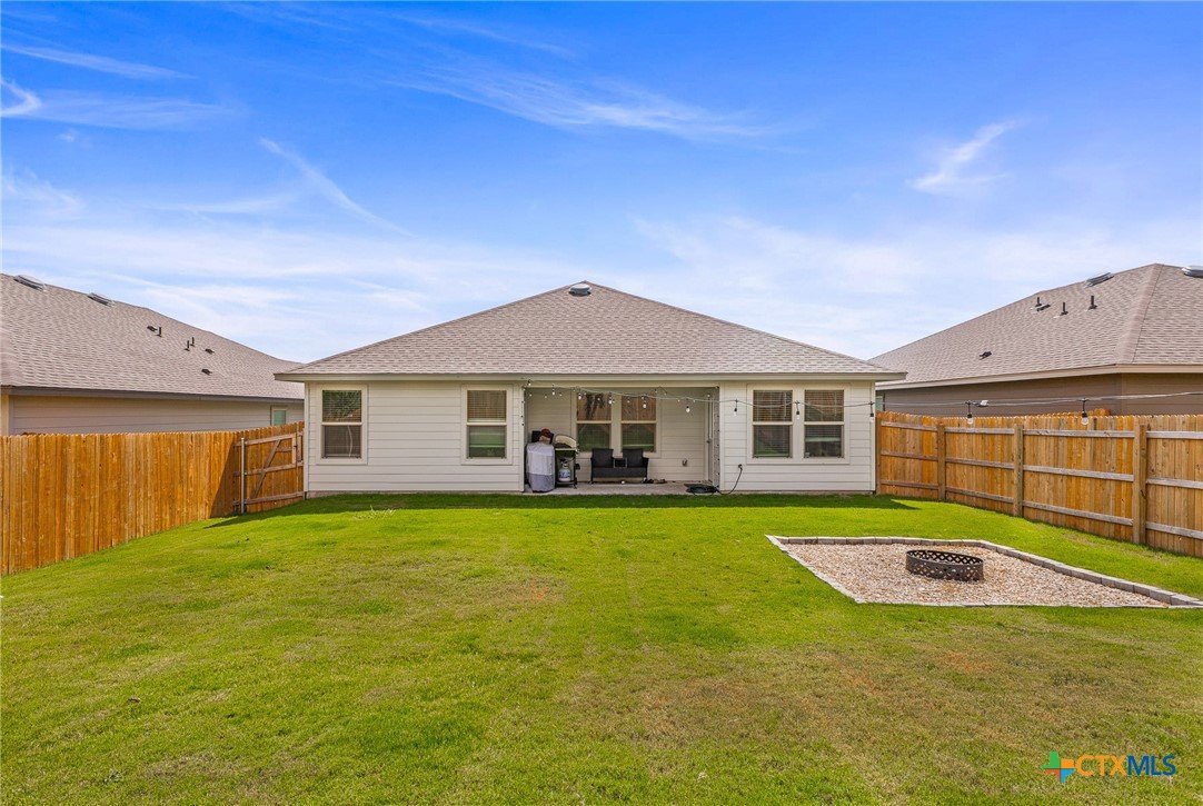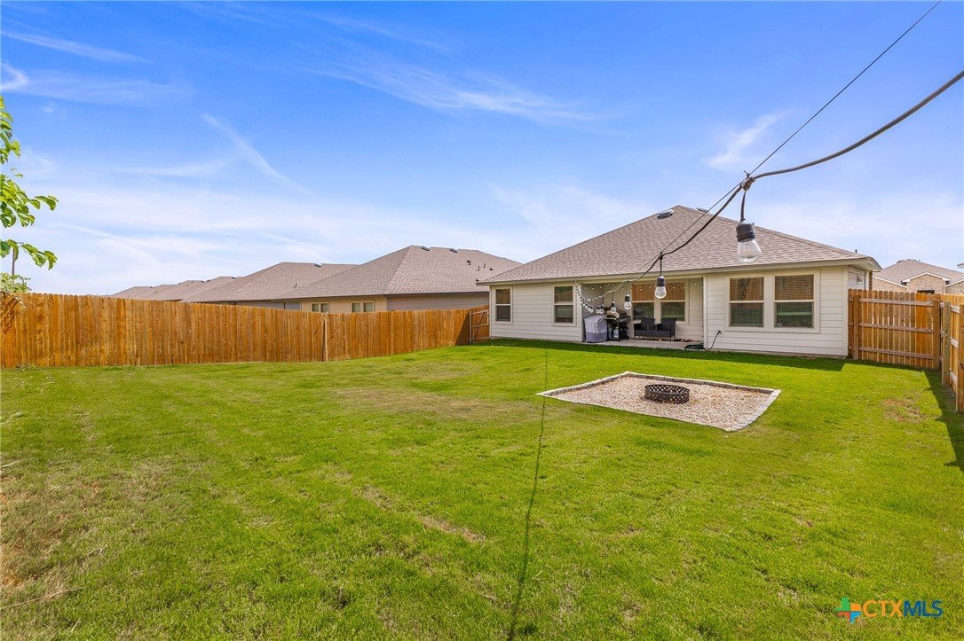 Welcome to this move-in ready 3-bedroom, 2-bathroom home in the desirable Freedom Ranch community with no HOA. Built in 2024, this single-story home offers 1,432 square feet of modern living space with an open-concept design that seamlessly connects the living, dining, and kitchen areas. The kitchen features granite countertops, stainless steel appliances, a large island with bar seating, and a walk-in pantry, making it both stylish and functional. The private owner’s suite includes a walk-in closet, double vanity, and a spacious walk-in shower, while two additional bedrooms provide flexibility for family, guests, or a home office. Outside, you’ll love the oversized backyard complete with a covered patio and fire pit area—perfect for entertaining or simply relaxing at home. Additional highlights include tile flooring in the main living areas, a two-car garage, and energy-efficient features throughout. Conveniently located near schools, shopping, US-190, and Fort Hood, this home offers the perfect blend of comfort, style, and everyday convenience.