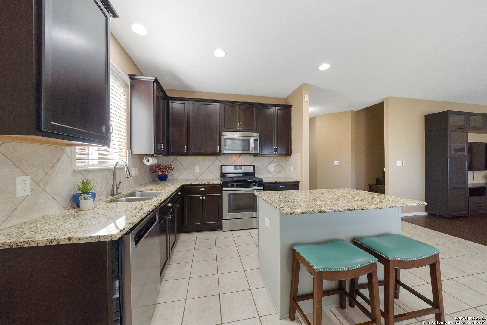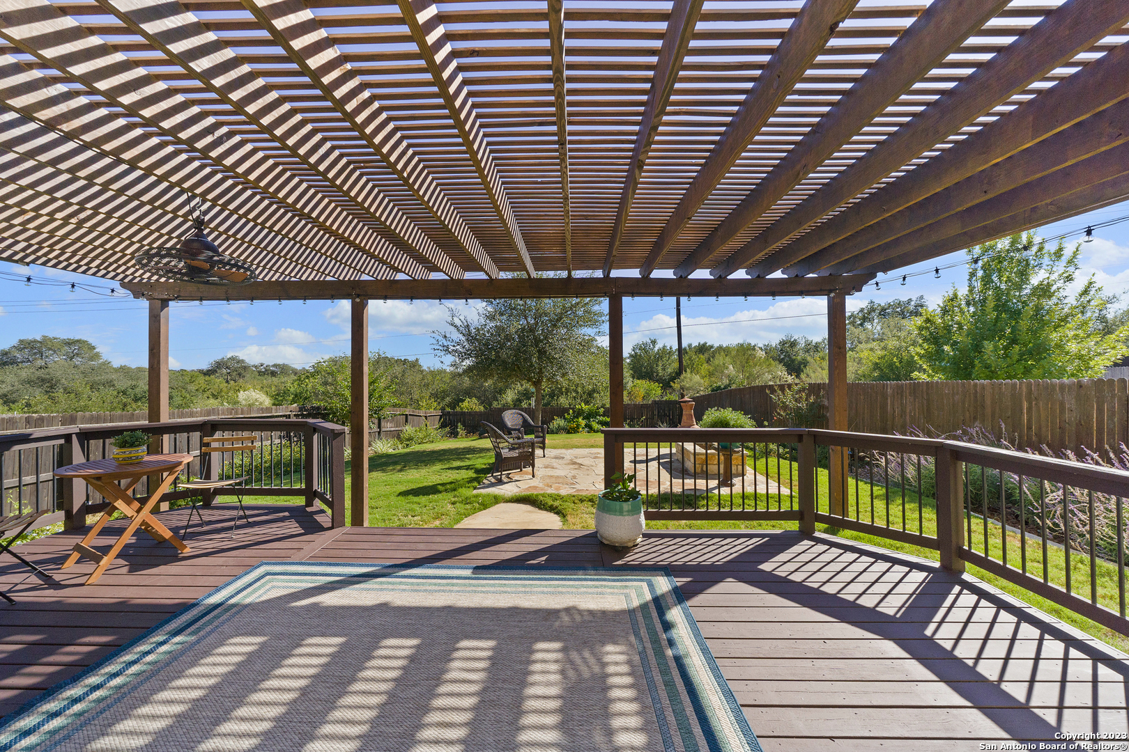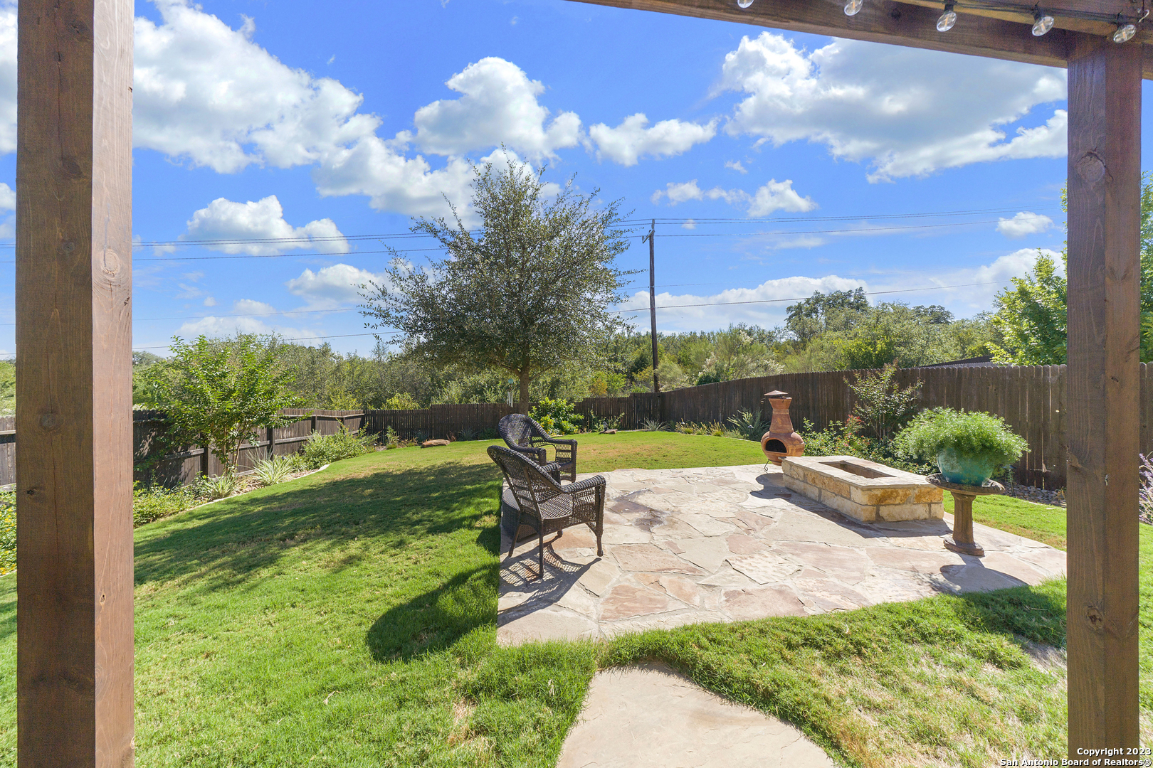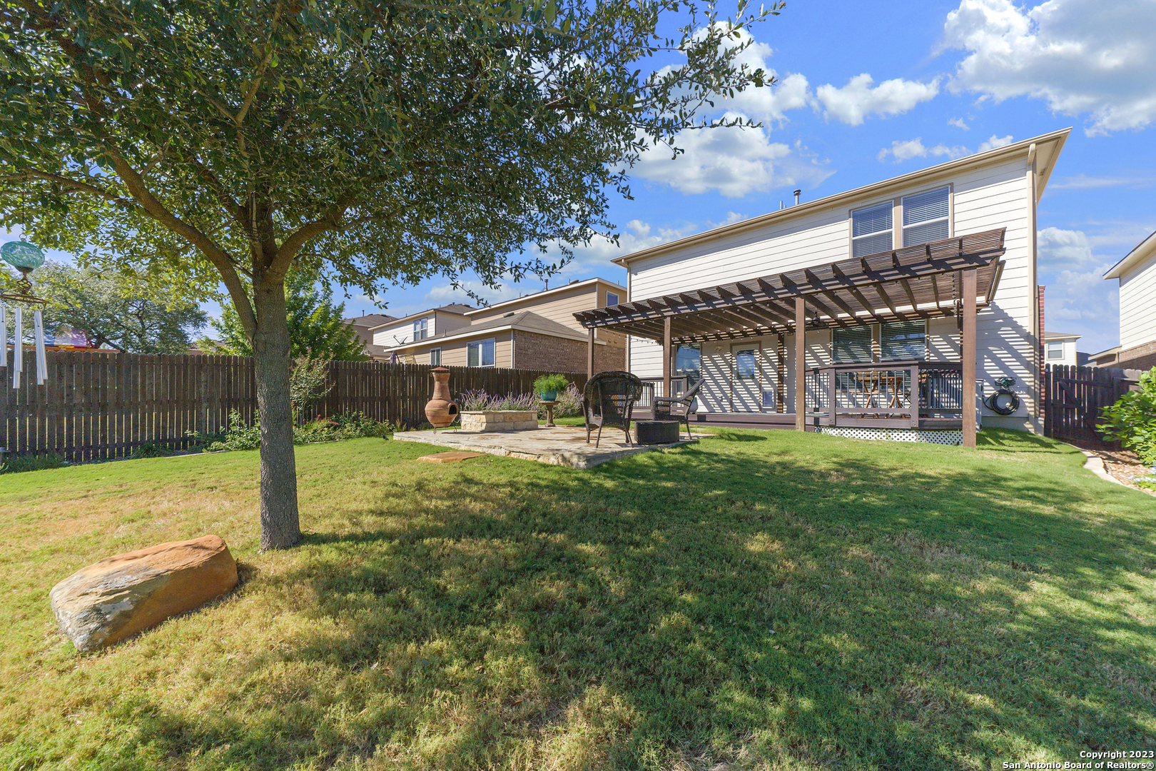 This lovely home is located in the highly desirable Alamo Ranch neighborhood with is surrounded by great restaurants, shopping and other conveniences such as great schools and the many amenities this beautiful community has to offer. This well-cared for house boasts designer colors granite countertops, ceiling fans and kitchen appliances other than a refrigerator. The two living areas make this a great house for entertaining and/or hanging out with family. Walk out to the backyard to be welcomed by a large deck with a pergola as well as a flagstone patio with a rock firepit and great landscaping with rock edging. Should you want to explore the neighborhood there are great walking/jogging trails, community swimming pool, tennis court, basketball court, park and playground as well as a great clubhouse.