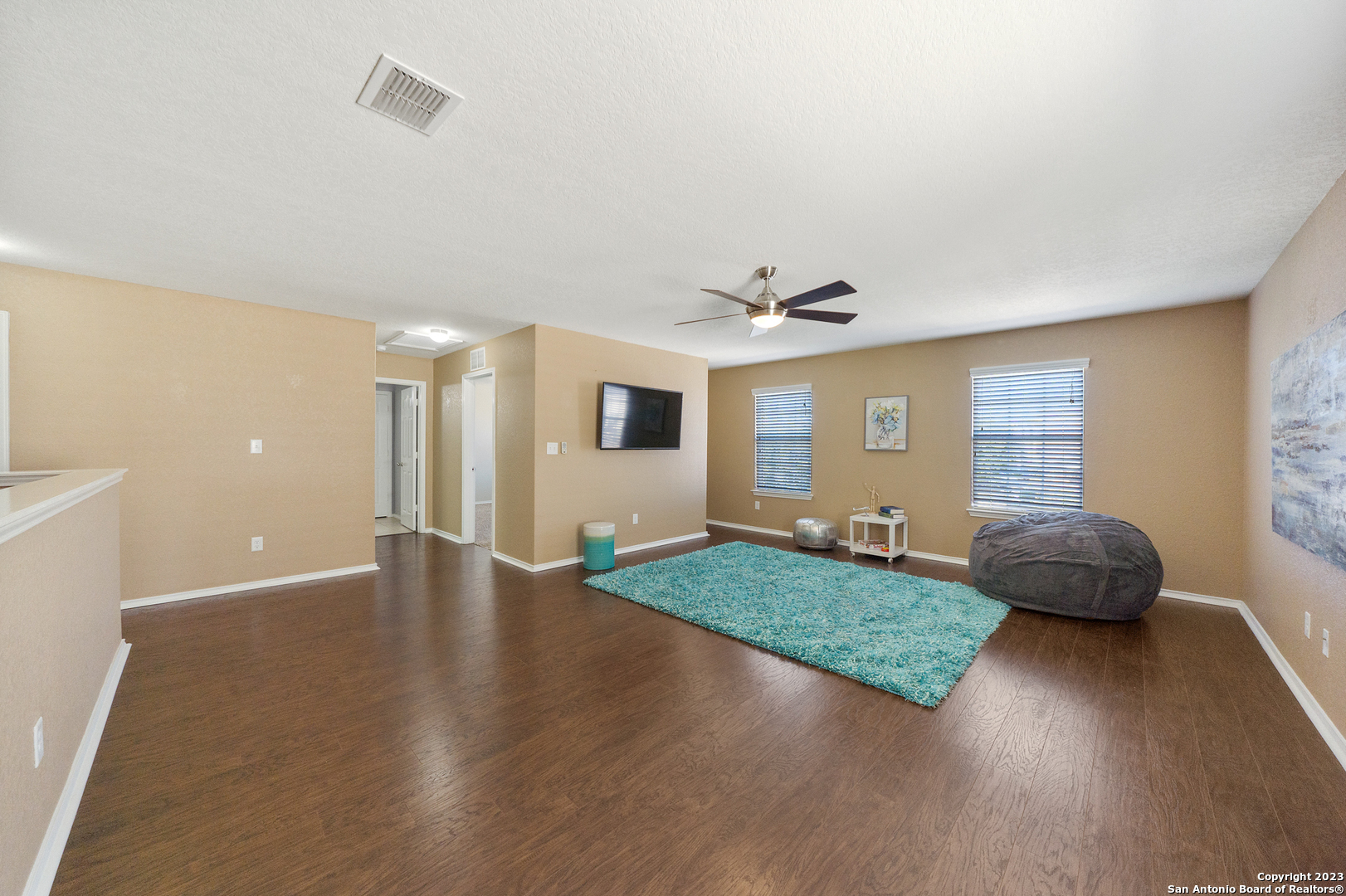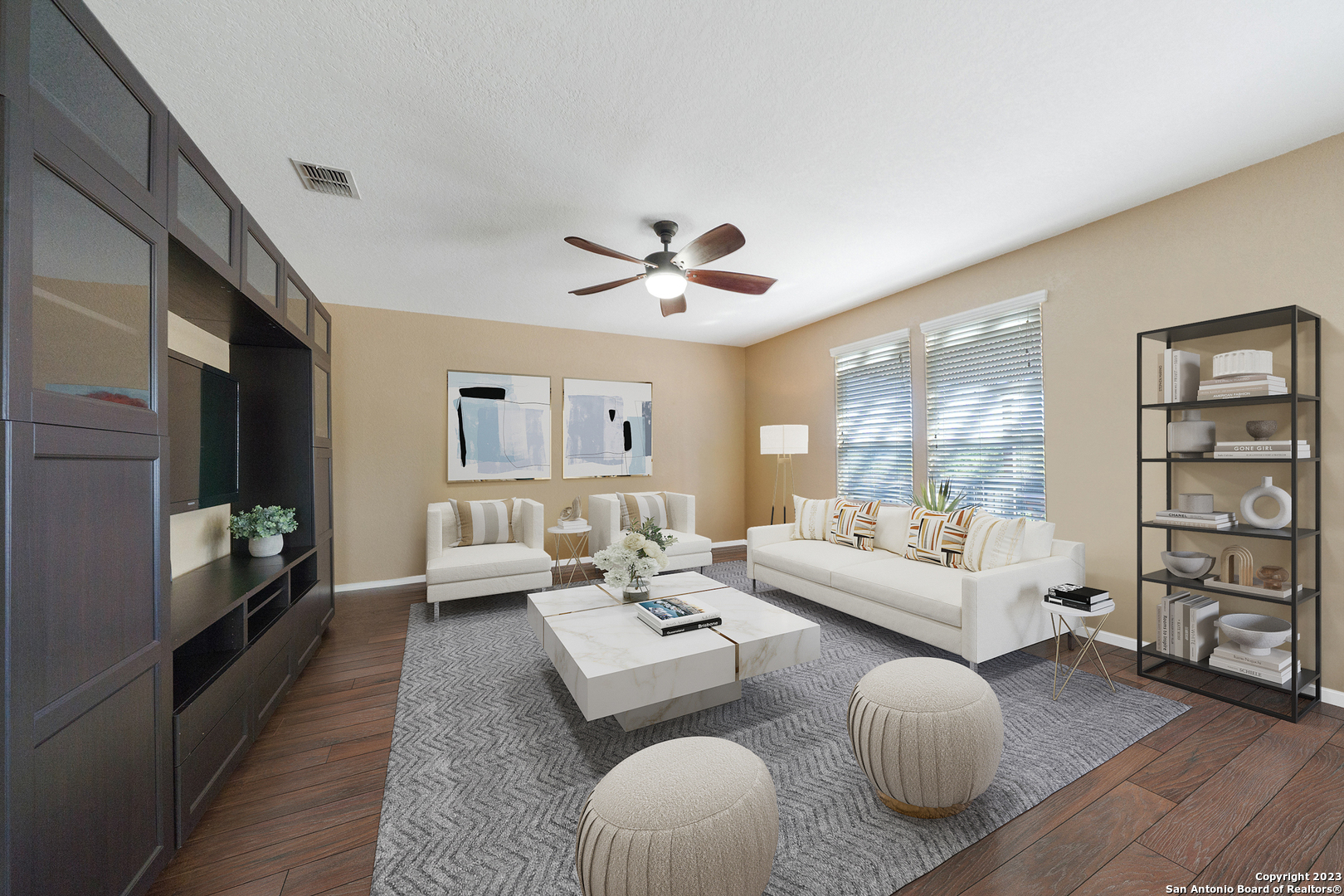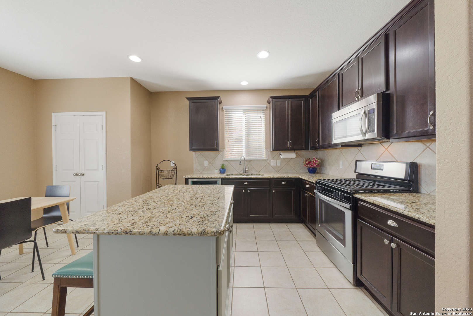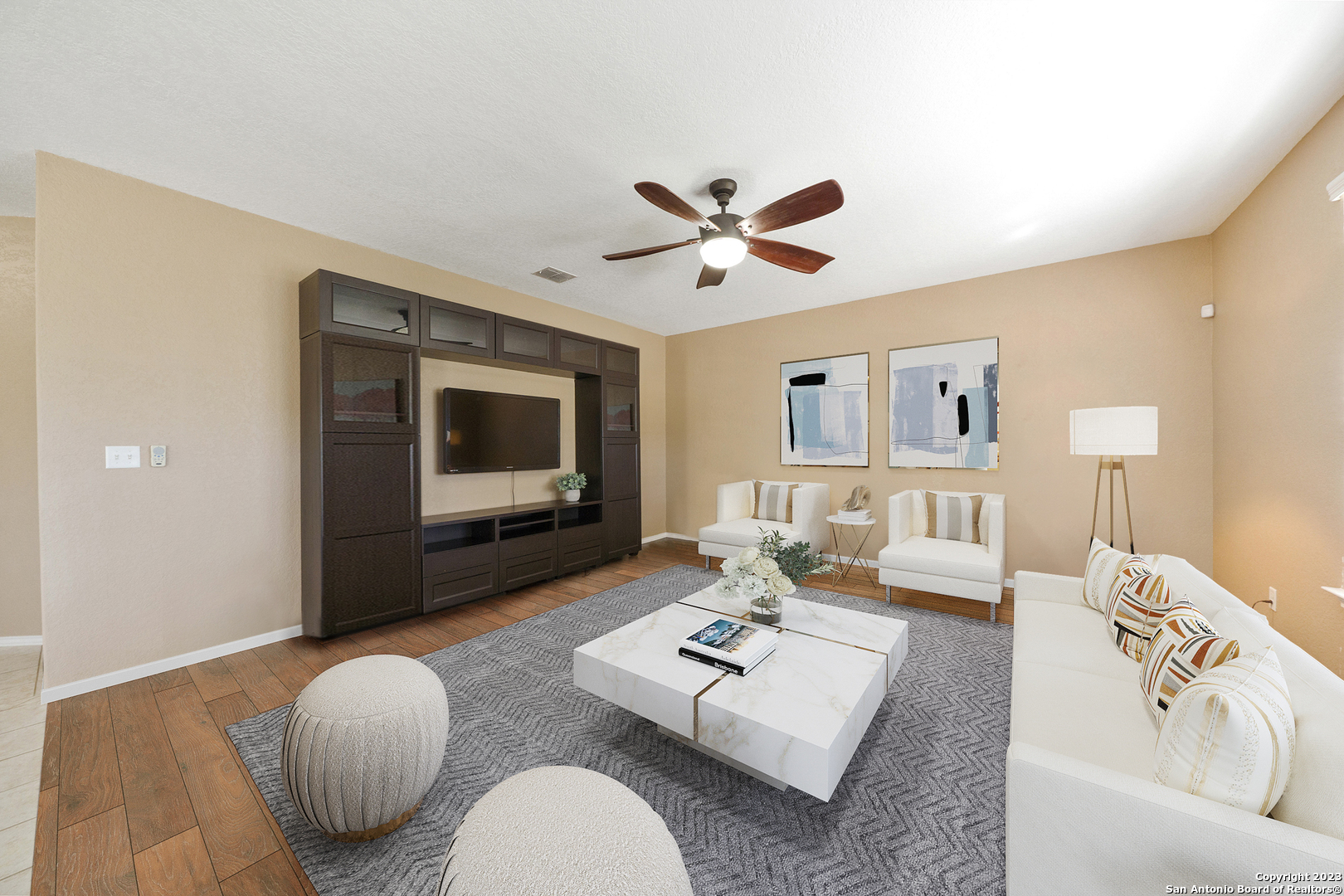 This lovely home is located in the highly desirable Alamo Ranch neighborhood with is surrounded by great restaurants, shopping and other conveniences such as great schools and the many amenities this beautiful community has to offer. This well-cared for house boasts designer colors granite countertops, ceiling fans and kitchen appliances other than a refrigerator. The two living areas make this a great house for entertaining and/or hanging out with family. Walk out to the backyard to be welcomed by a large deck with a pergola as well as a flagstone patio with a rock firepit and great landscaping with rock edging. Should you want to explore the neighborhood there are great walking/jogging trails, community swimming pool, tennis court, basketball court, park and playground as well as a great clubhouse.