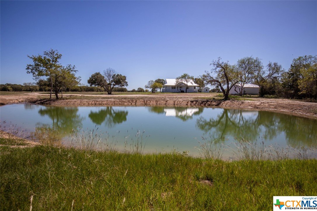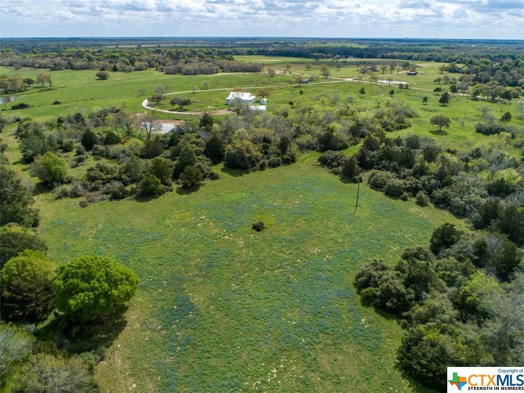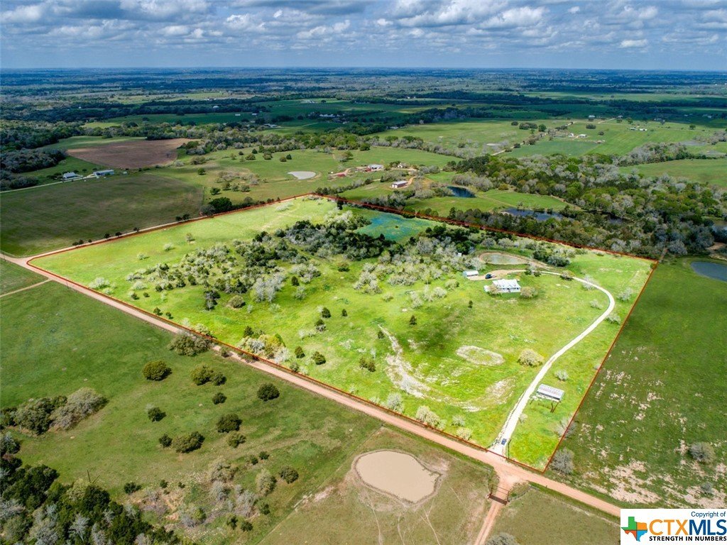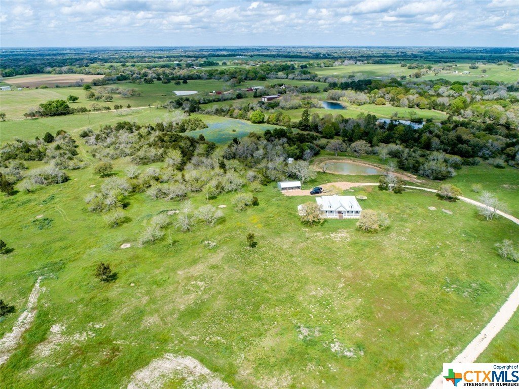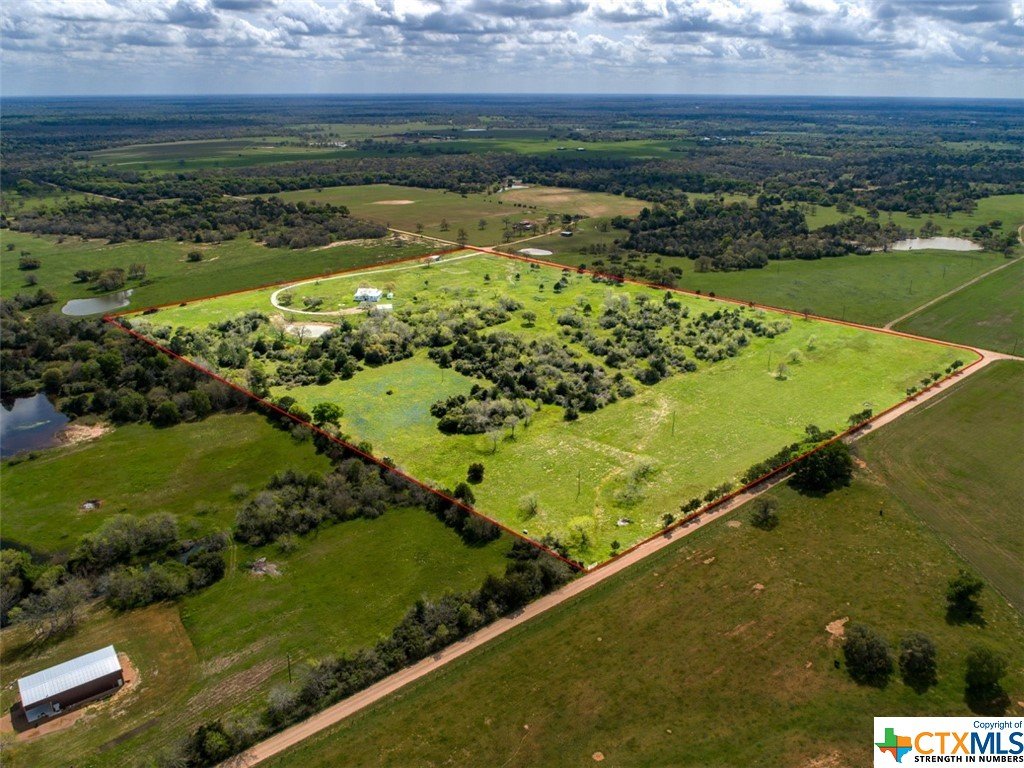 The 4-O Farm is a picturesque recreational getaway complete with a brand new 3B/2Ba modern farmhouse with a spacious wrap-around porch. In addition to the new home, there is a 24’ x 30’ pole barn, a screened gravel driveway and parking area, sandstone fire pit as well as a freshly landscaped yard with irrigation system. This property also features a stand-alone laundry and storage building, matching well house, and a pond just behind the home. The 4-0 is located less than 100 miles from San Antonio, Houston and Austin and only 40 miles from the very popular Round Top Antique Show. If antiques aren’t your thing, go tour the 7 Historic Painted Churches in the area or visit the Shiner Brewery, all a short country drive from here. This home comes fully furnished, has never been lived in, and is ready for the new owners to start making lasting memories with family and friends. The 3B/2Ba house was recently completed in September 2023. It has 1475 sq. ft. of conditioned space with an additional 1324 sq. ft. of wrap-around porch with white picket railing. Entering the home from either the front or back you are greeted by cathedral ceilings with 6”x12” decorative wooden beams and wall-to-wall shiplap. The entire interior floor is wood-like porcelain tile which is waterproof and very durable. The kitchen has custom cabinets, sealed pine countertops, and an island with a built-in seating area for casual dining and additional storage. Just off the kitchen is the dining room and built-in pantry. The master suite is of ample size to allow for a queen bed and a desk. Entering the master bath you’ll find a walk-in shower, double sink vanity, and 6’x10’ walk-in closet. The second bedroom has a queen bed and a built-in closet. The guest room has two single beds and a custom-built armoire in lieu of a closet. The entire home is furnished with hand-selected antiques and custom-built furniture. The 40.317 acres have a great balance between open pasture (60%) and dense woodland (40%)