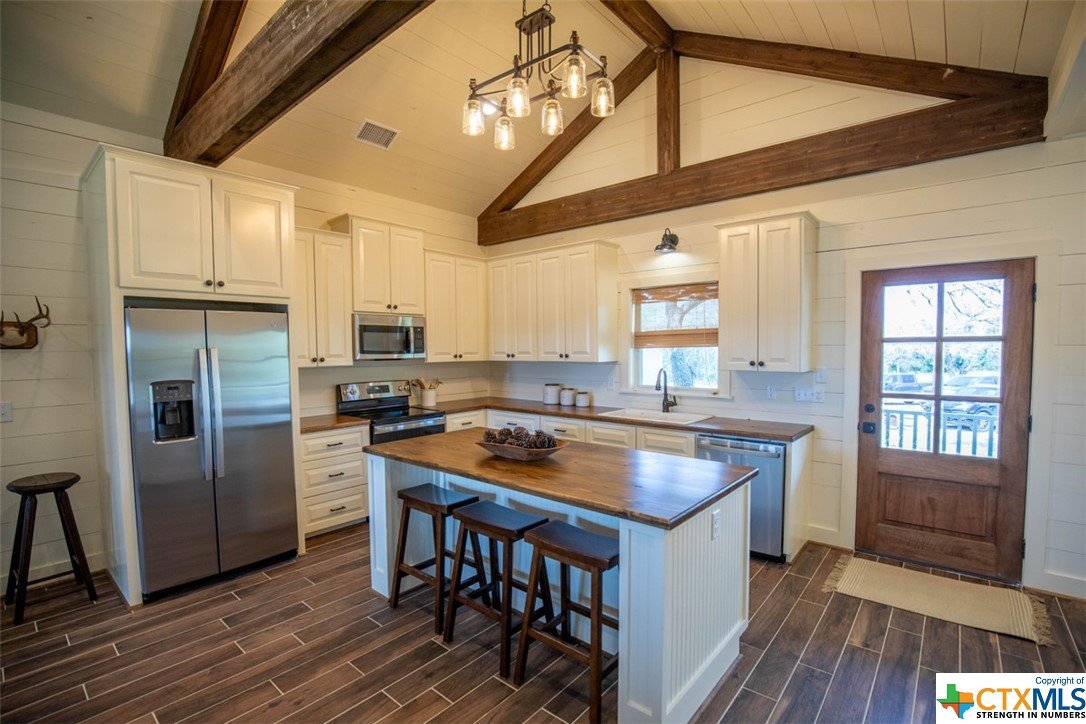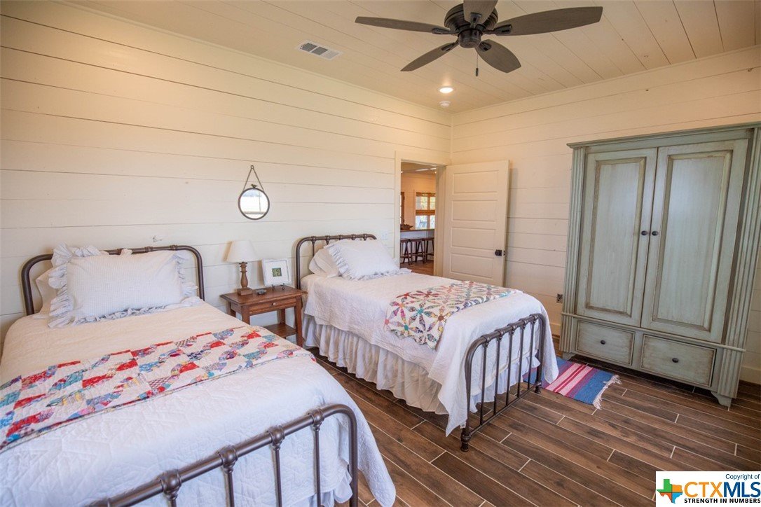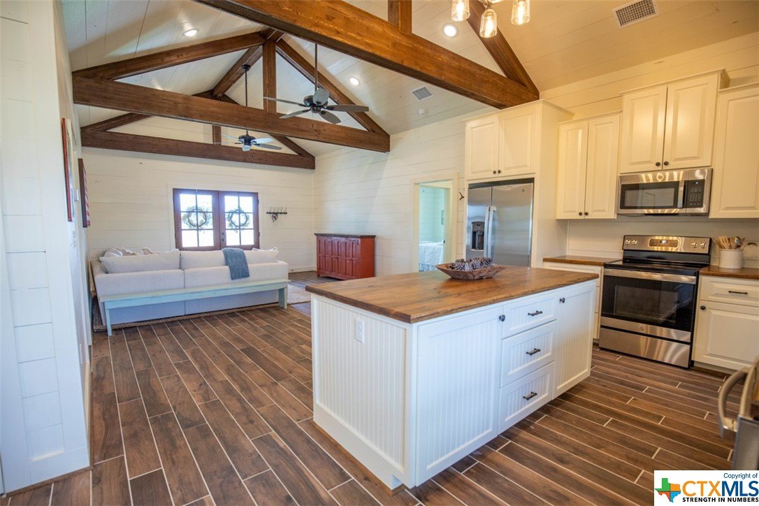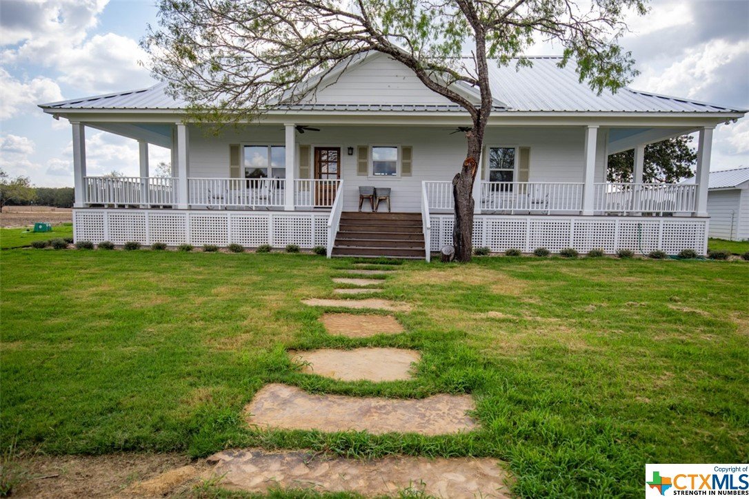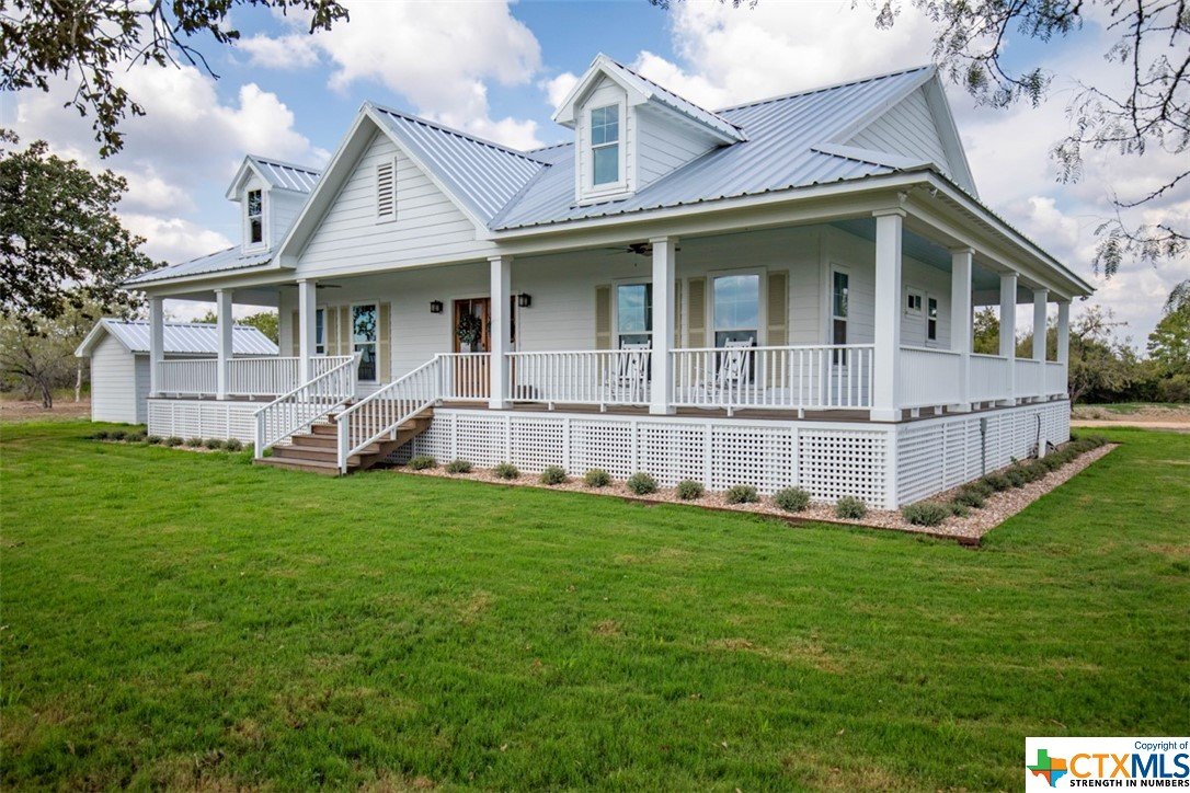 The 4-O Farm is a picturesque recreational getaway complete with a brand new 3B/2Ba modern farmhouse with a spacious wrap-around porch. In addition to the new home, there is a 24’ x 30’ pole barn, a screened gravel driveway and parking area, sandstone fire pit as well as a freshly landscaped yard with irrigation system. This property also features a stand-alone laundry and storage building, matching well house, and a pond just behind the home. The 4-0 is located less than 100 miles from San Antonio, Houston and Austin and only 40 miles from the very popular Round Top Antique Show. If antiques aren’t your thing, go tour the 7 Historic Painted Churches in the area or visit the Shiner Brewery, all a short country drive from here. This home comes fully furnished, has never been lived in, and is ready for the new owners to start making lasting memories with family and friends. The 3B/2Ba house was recently completed in September 2023. It has 1475 sq. ft. of conditioned space with an additional 1324 sq. ft. of wrap-around porch with white picket railing. Entering the home from either the front or back you are greeted by cathedral ceilings with 6”x12” decorative wooden beams and wall-to-wall shiplap. The entire interior floor is wood-like porcelain tile which is waterproof and very durable. The kitchen has custom cabinets, sealed pine countertops, and an island with a built-in seating area for casual dining and additional storage. Just off the kitchen is the dining room and built-in pantry. The master suite is of ample size to allow for a queen bed and a desk. Entering the master bath you’ll find a walk-in shower, double sink vanity, and 6’x10’ walk-in closet. The second bedroom has a queen bed and a built-in closet. The guest room has two single beds and a custom-built armoire in lieu of a closet. The entire home is furnished with hand-selected antiques and custom-built furniture. The 40.317 acres have a great balance between open pasture (60%) and dense woodland (40%)