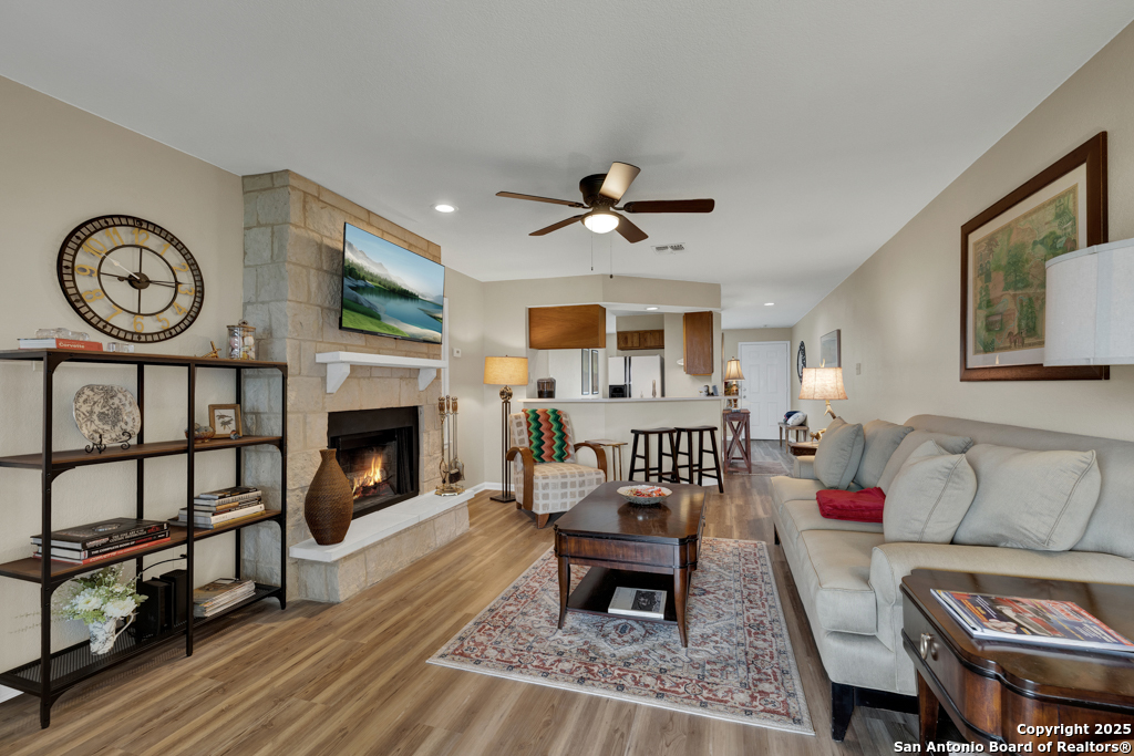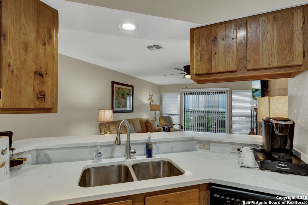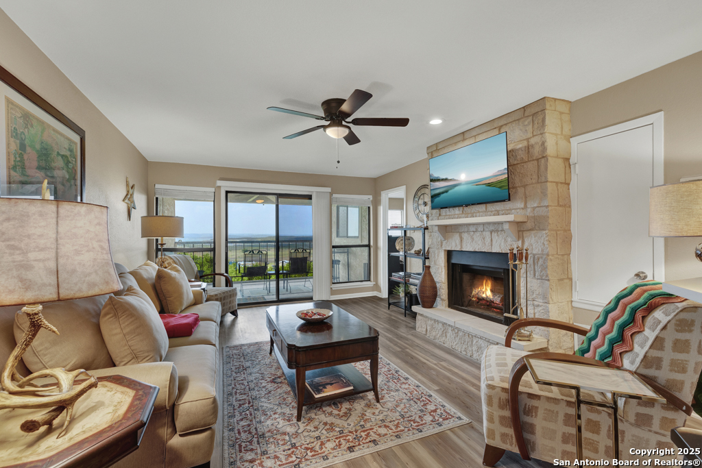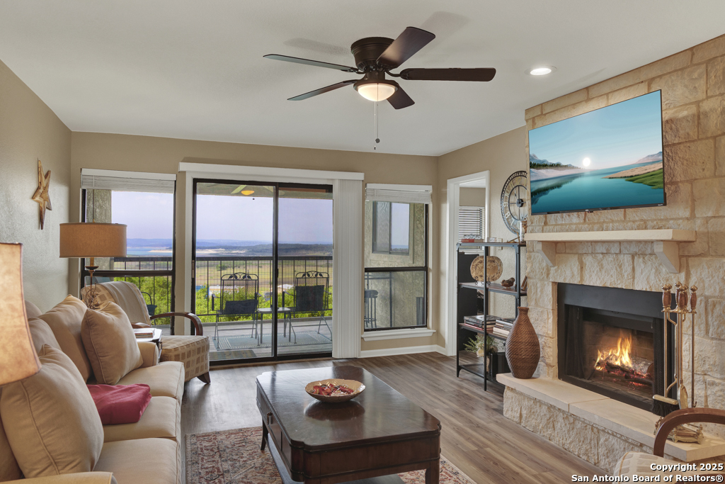 Discover the epitome of lake living with this magnificent 2-bedroom, 2-bathroom condominium, offering breathtaking 180-degree views of Canyon Lake. Nestled in the coveted Cougar Ridge Condos on the north side of Canyon Lake, Texas, this home is a true gem, boasting an array of upgrades. Here's a glimpse of what awaits: Enjoy the elegance and durability of new vinyl flooring throughout the entire condo. Both bathrooms and the kitchen have new quartz countertops, new shower and tile, complemented by custom vanities and toilets. Recessed lighting and new ceiling fans, and fully repainted to provide a fresh, contemporary look. In addition, a new hot water heater, new microwave, stunning new stone fireplace, new roof installed within the last two years ensures peace of mind. Unmatched Location and Amenities! Beyond the condo's updated interior, the location offers a wealth of activities and conveniences. Take a refreshing dip in the community's sparkling pool or take a short drive to Jacob's Creek Park. The Canyon Lake Marina and Brookshire Brother's located just across 306. Enjoy tubing on the Guadalupe River, dining at popular restaurants, and exploring local bars and shops. Located only 20 minutes from New Braunfels and Gruene, and a short drive to Wimberley, where you can experience Market Days, the scenic Blanco River, Jacob's Well, and Blue Hole. A 35-minute drive to the San Marcos Outlet malls promises endless shopping opportunities. Embrace the idyllic lake life and make this stunning condo your new home. With its combination of luxurious upgrades, prime location, and spectacular views, this property is sure to be in high demand. Schedule your showing today before this spectacular opportunity slips away!