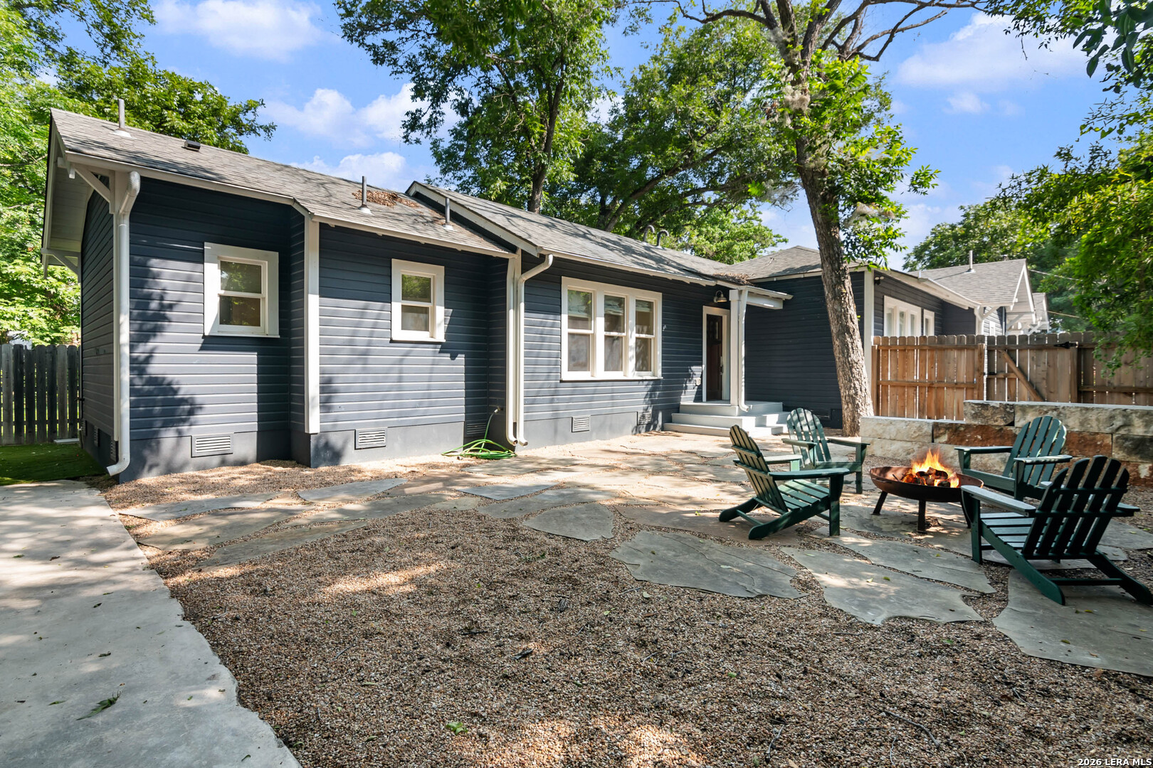 Featured in HGTV's House Hunters, this charming 1924 craftsman bungalow has had a total makeover! Nestled in the coveted River Road area of Brackenridge, the location is steps away from the San Antonio River, and second to none for ease of getting anywhere central within minutes. Extensively renovated in 2018, this house is an interior modern gem with the classic craftsman facade. Large kitchen with expansive island is great for entertaining and has ample cabinet storage, large pantry and plenty of counter prep space. Three bedrooms, all ensuite, offer privacy and large closet spaces. Spacious primary suite with large walk in closet and dual vanity bath. Large laundry room. Tankless hot water heater and water softener. Private backyard with lots of hardscape and turf grass.