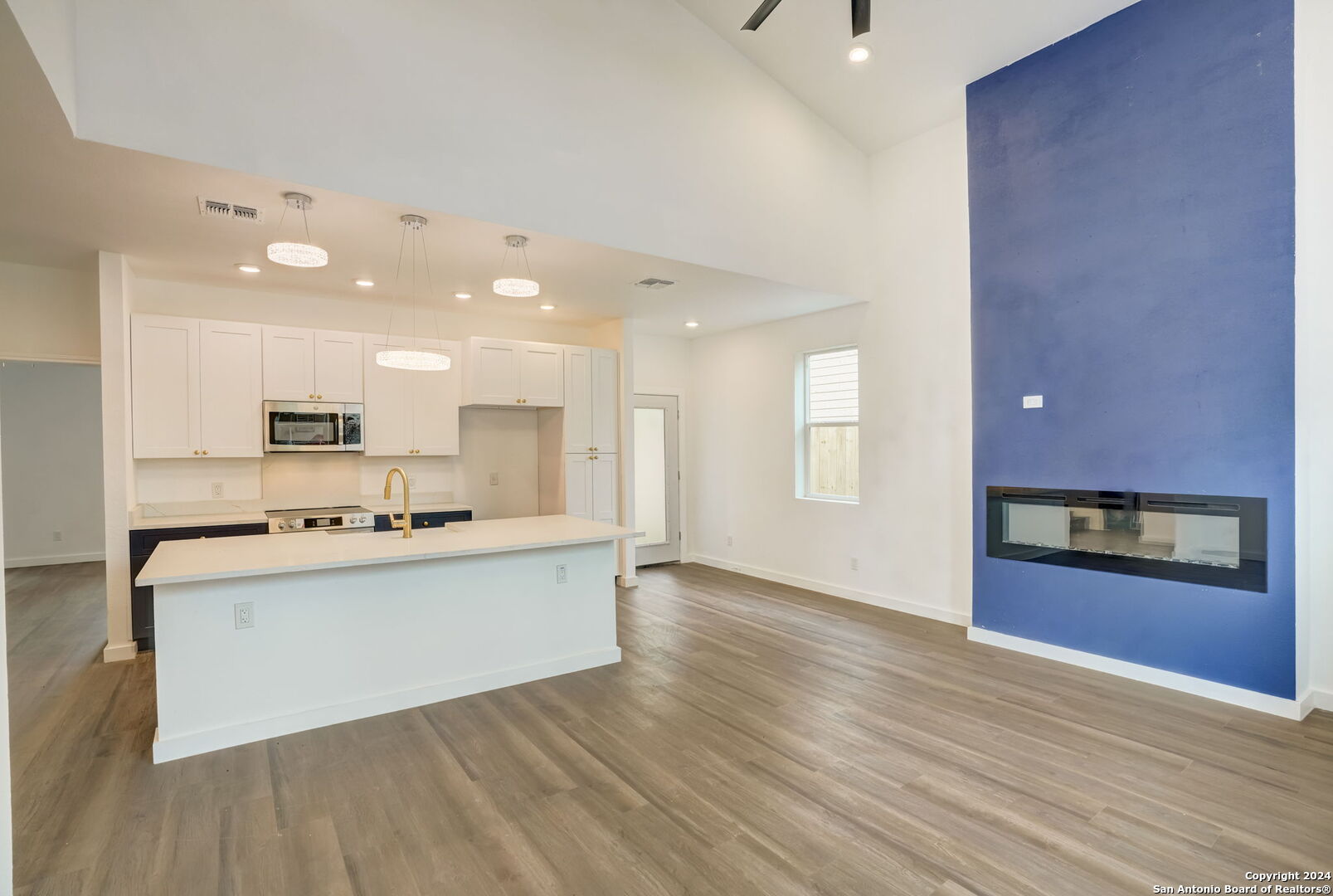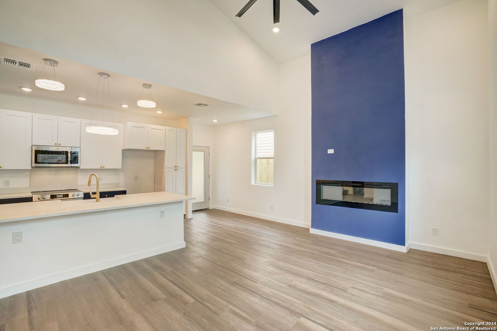 Located in the vibrant and up-and-coming eastside of San Antonio, this 2-story modern style home is a true gem waiting to be discovered. With sleek lines and contemporary design, this home offers perfect blend of form and function. As you step inside you are greeted by an open floor plan seamlessly connects the living room, dining, and kitchen. abundance of natural light streaming in through windows creates a warm and inviting atmosphere. The kitchen is a chef's dream, featuring high-end appliances,