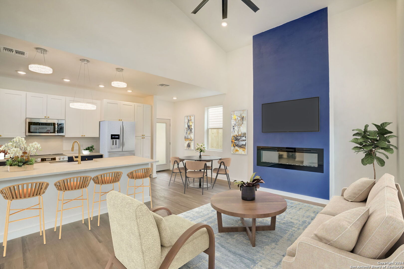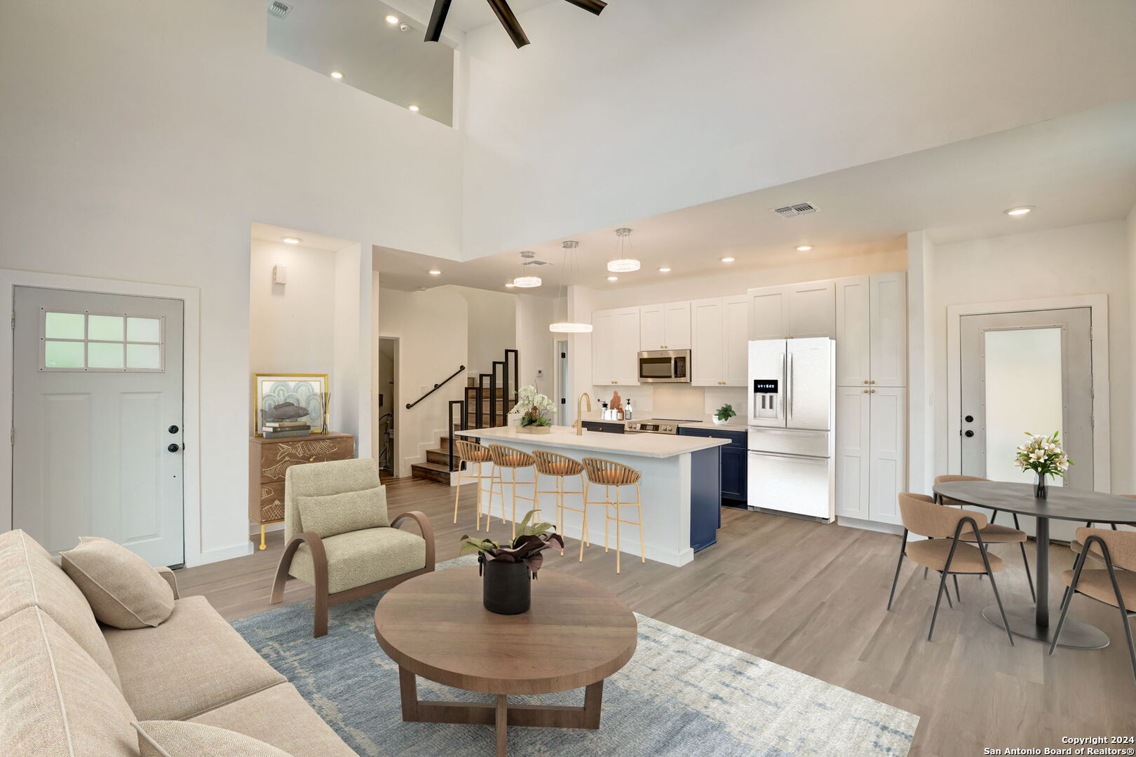Located in the vibrant and up-and-coming eastside of San Antonio, this 2-story modern style home is a true gem waiting to be discovered. With sleek lines and contemporary design, this home offers perfect blend of form and function. As you step inside you are greeted by an open floor plan seamlessly connects the living room, dining, and kitchen. abundance of natural light streaming in through windows creates a warm and inviting atmosphere. The kitchen is a chef's dream, featuring high-end appliances,