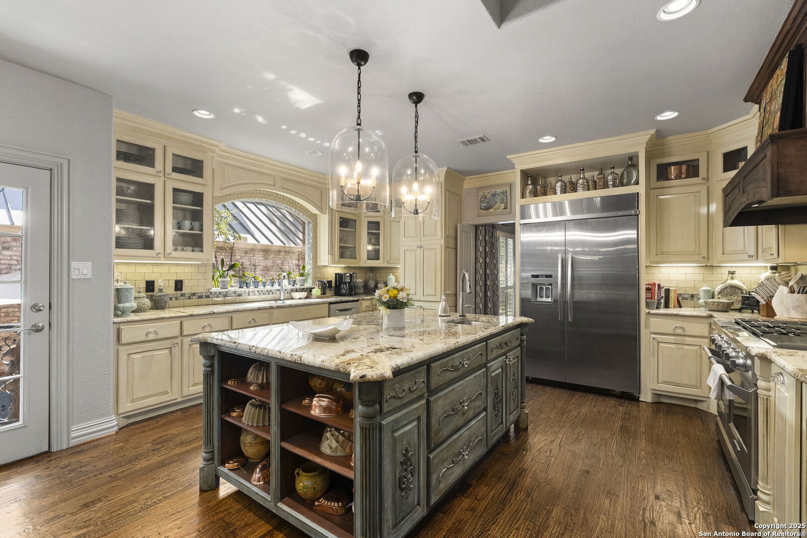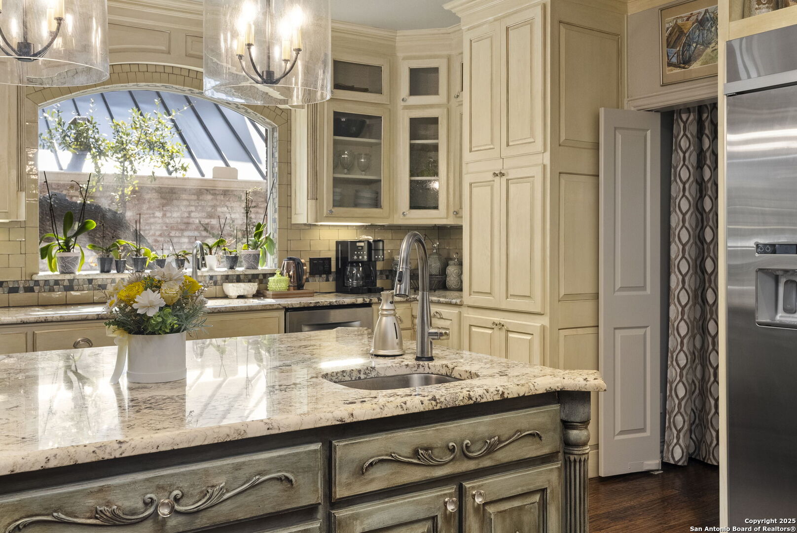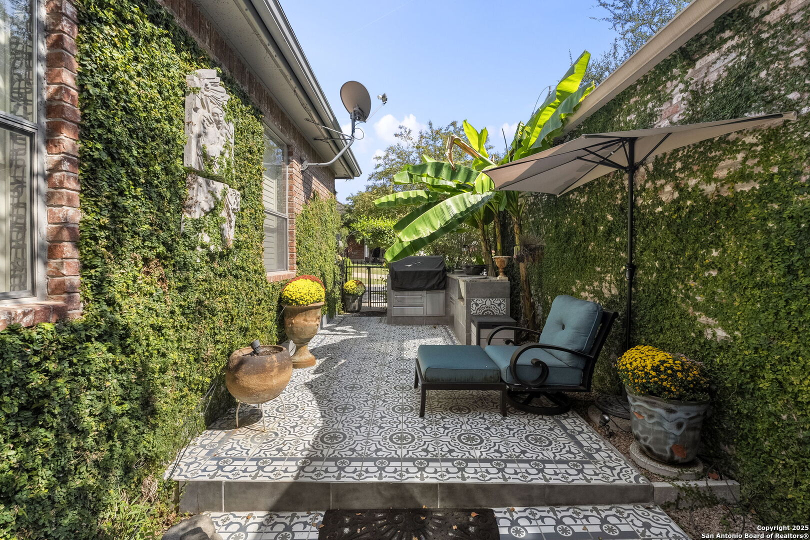 Welcome to 126 Westcourt Lane-where timeless elegance meets modern comfort inside the gates of The Dominion. This fully remodeled single-story garden home isn't just a residence; it's a curated lifestyle experience designed for those who appreciate craftsmanship, tranquility, and refined taste. From the moment you step inside, you're greeted by soaring ceilings and brand new, real hand-scraped hardwood floors that flow through an open-concept layout perfect for entertaining or quiet evenings at home. The chef-inspired kitchen is anchored by an oversized granite island, custom cabinetry, and stainless appliances, all opening seamlessly into the living room and cozy breakfast area with views to the private courtyard. A luxurious primary suite features a clawfoot tub, seamless glass walk-in shower, dual vanities, and boutique-style walk-in California closet. The French-doored office, currently being used as a 3rd bedroom, offers a quiet retreat for productivity or reading, while tucked away for privacy. Halfway through, this home reminds you that it was designed not just to impress-but to embrace. Outside, the serene courtyard with outdoor kitchen and fireplace becomes an extension of your living space, ideal for year-round gatherings or peaceful mornings with coffee. This is low-maintenance luxury at its finest; no pool, no fuss, just lock-and-leave peace of mind in one of San Antonio's most secure & prestigious communities The Dominion. Every detail has been thoughtfully considered, including modern lighting, fresh paint, and extensive upgrades throughout. Nestled on a quiet cul-de-sac alley with garage access while the front of the home is located on Westcourt Lane and tree-lined, with direct access to walking trails and just minutes from world-class golf course at Dominion, shopping, and dining galore, this is the kind of home that rarely becomes available, especially at this price. Call your Realtor to schedule your private tour today before this opportunity is gone.