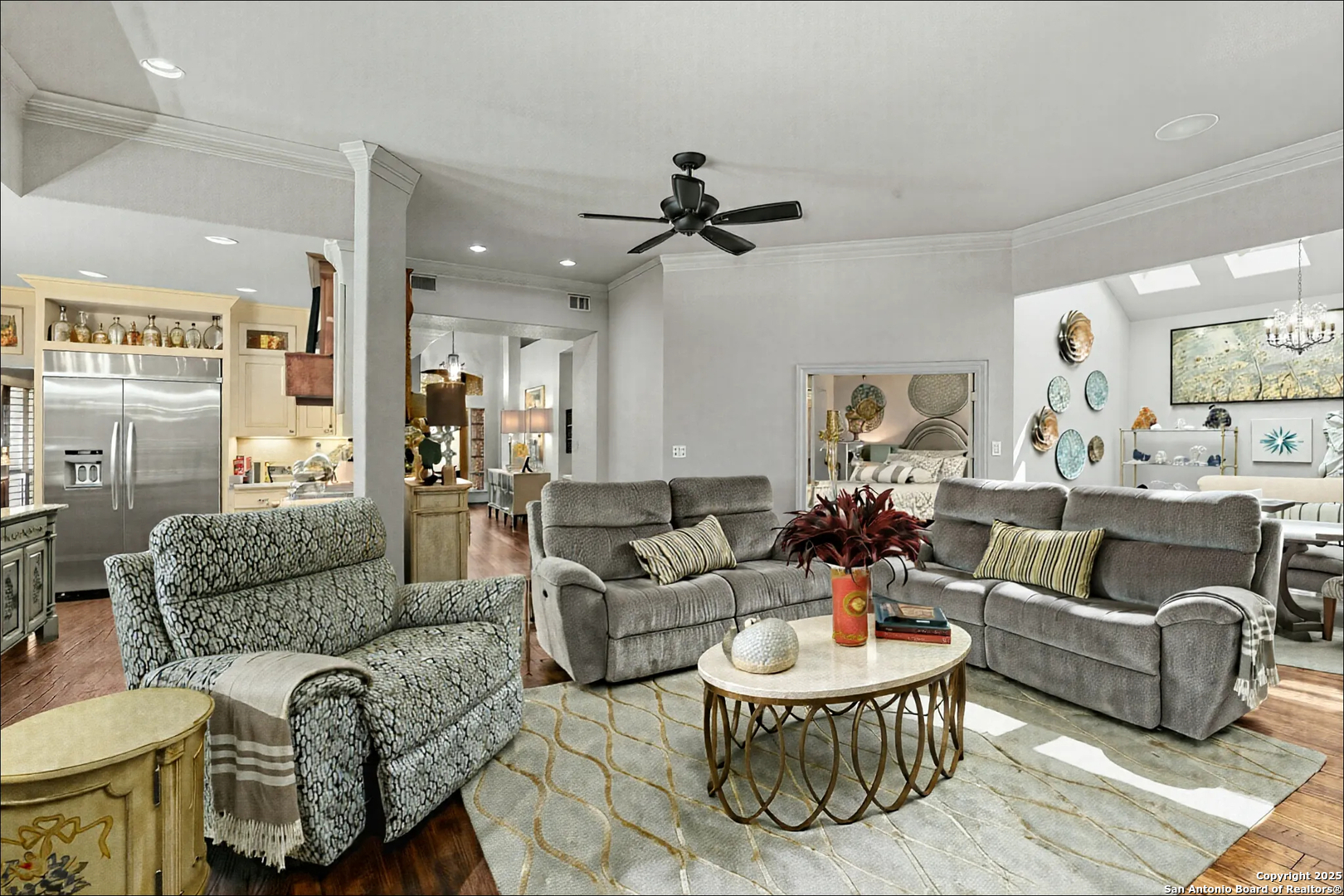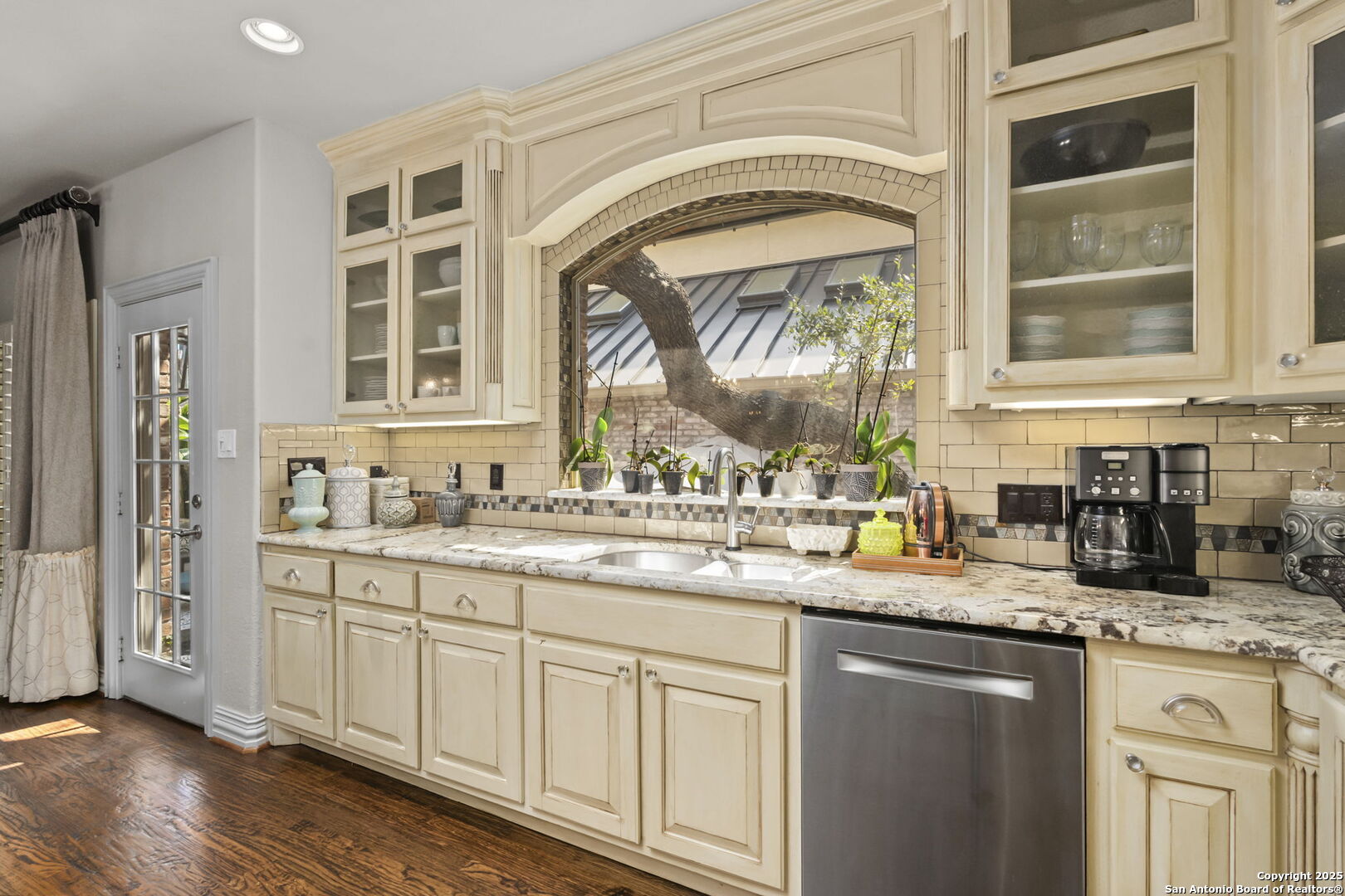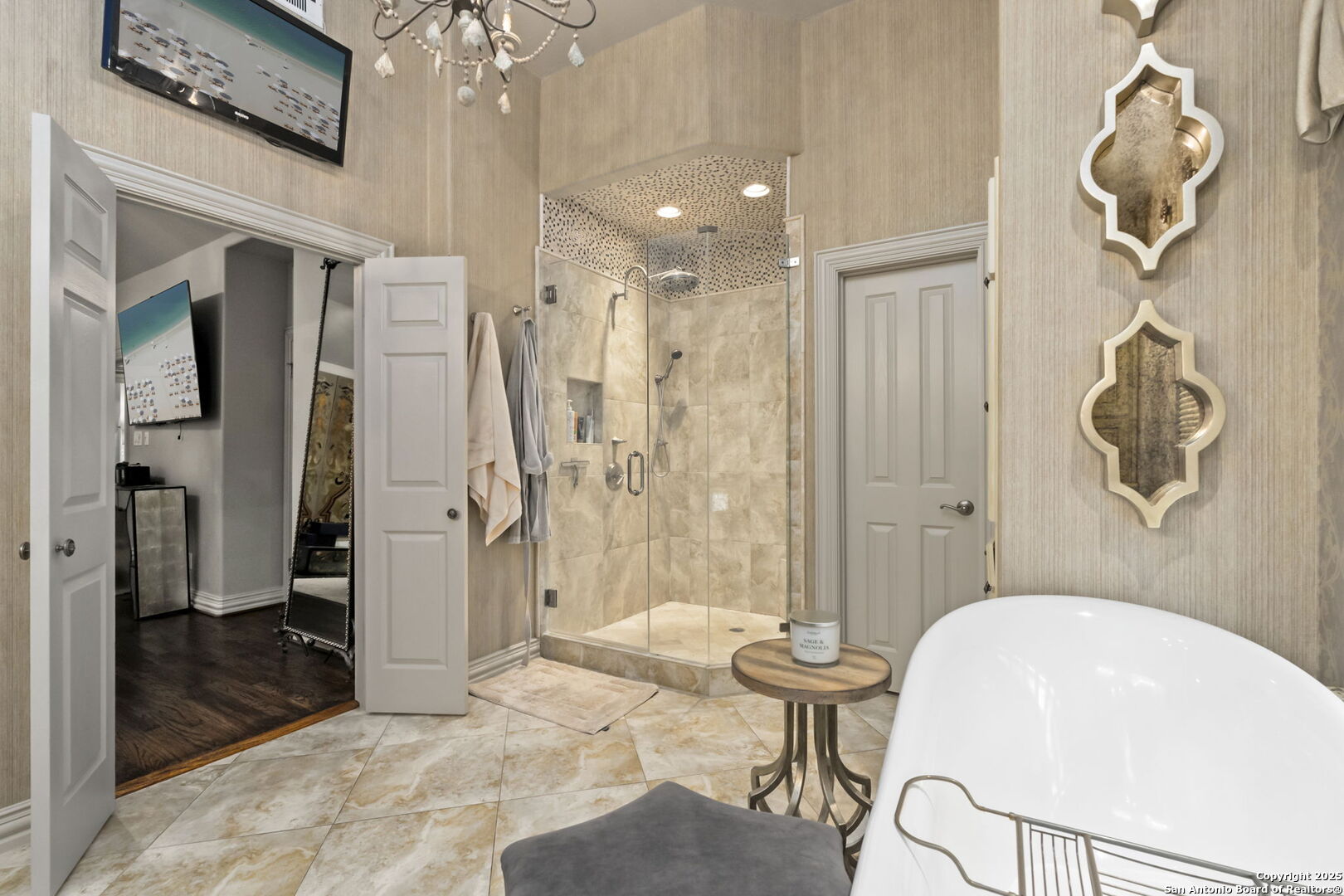 Welcome to 126 Westcourt Lane-where timeless elegance meets modern comfort inside the gates of The Dominion. This fully remodeled single-story garden home isn't just a residence; it's a curated lifestyle experience designed for those who appreciate craftsmanship, tranquility, and refined taste. From the moment you step inside, you're greeted by soaring ceilings and brand new, real hand-scraped hardwood floors that flow through an open-concept layout perfect for entertaining or quiet evenings at home. The chef-inspired kitchen is anchored by an oversized granite island, custom cabinetry, and stainless appliances, all opening seamlessly into the living room and cozy breakfast area with views to the private courtyard. A luxurious primary suite features a clawfoot tub, seamless glass walk-in shower, dual vanities, and boutique-style walk-in California closet. The French-doored office, currently being used as a 3rd bedroom, offers a quiet retreat for productivity or reading, while tucked away for privacy. Halfway through, this home reminds you that it was designed not just to impress-but to embrace. Outside, the serene courtyard with outdoor kitchen and fireplace becomes an extension of your living space, ideal for year-round gatherings or peaceful mornings with coffee. This is low-maintenance luxury at its finest; no pool, no fuss, just lock-and-leave peace of mind in one of San Antonio's most secure & prestigious communities The Dominion. Every detail has been thoughtfully considered, including modern lighting, fresh paint, and extensive upgrades throughout. Nestled on a quiet cul-de-sac alley with garage access while the front of the home is located on Westcourt Lane and tree-lined, with direct access to walking trails and just minutes from world-class golf course at Dominion, shopping, and dining galore, this is the kind of home that rarely becomes available, especially at this price. Call your Realtor to schedule your private tour today before this opportunity is gone.