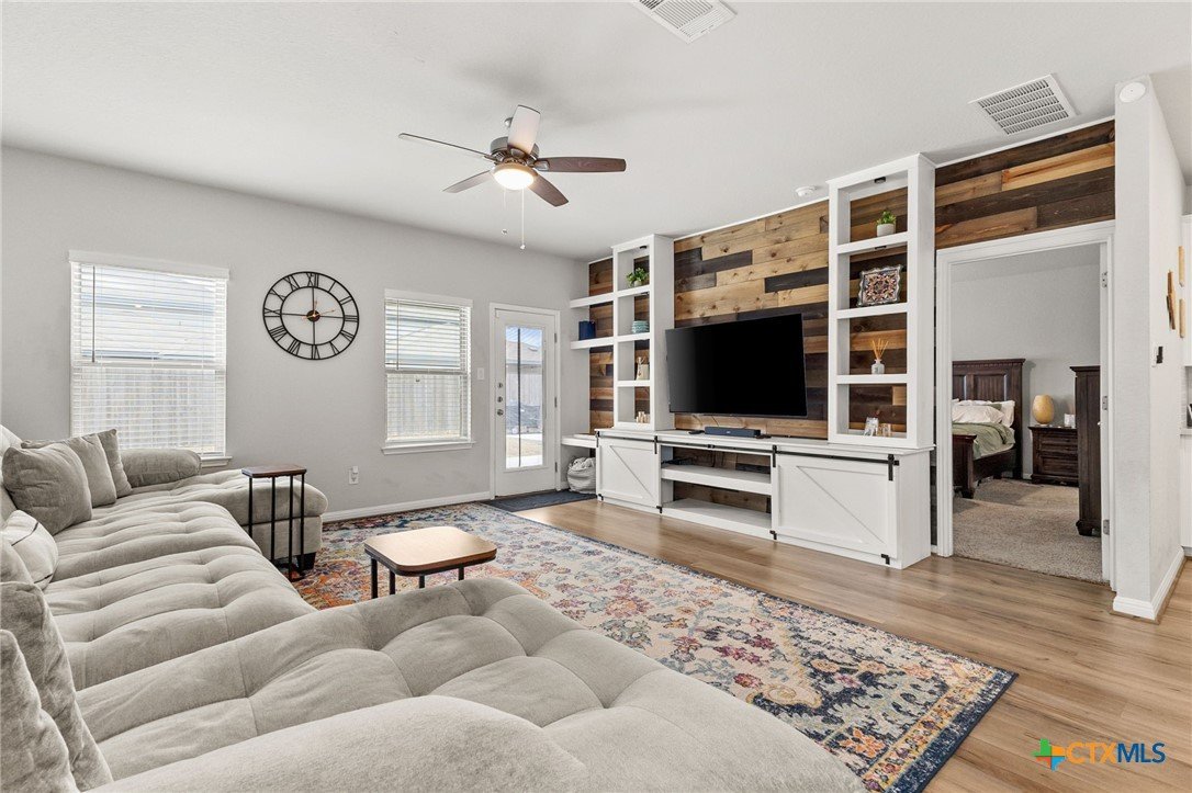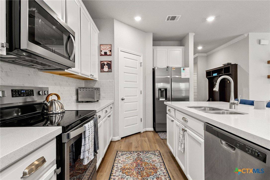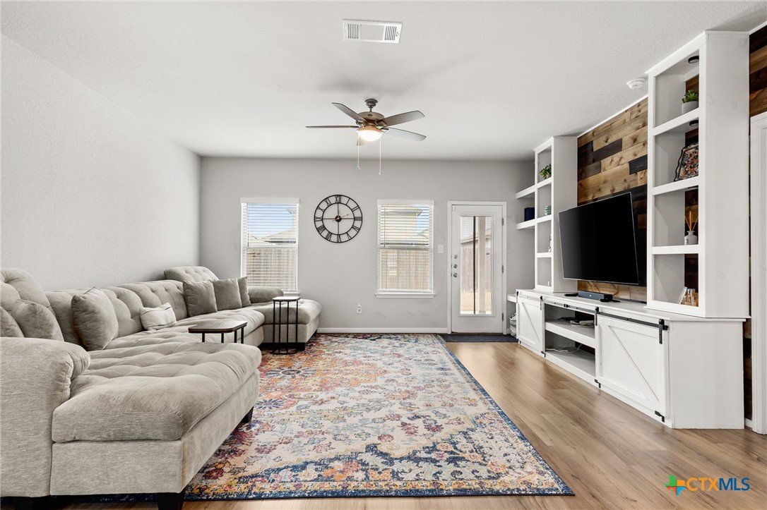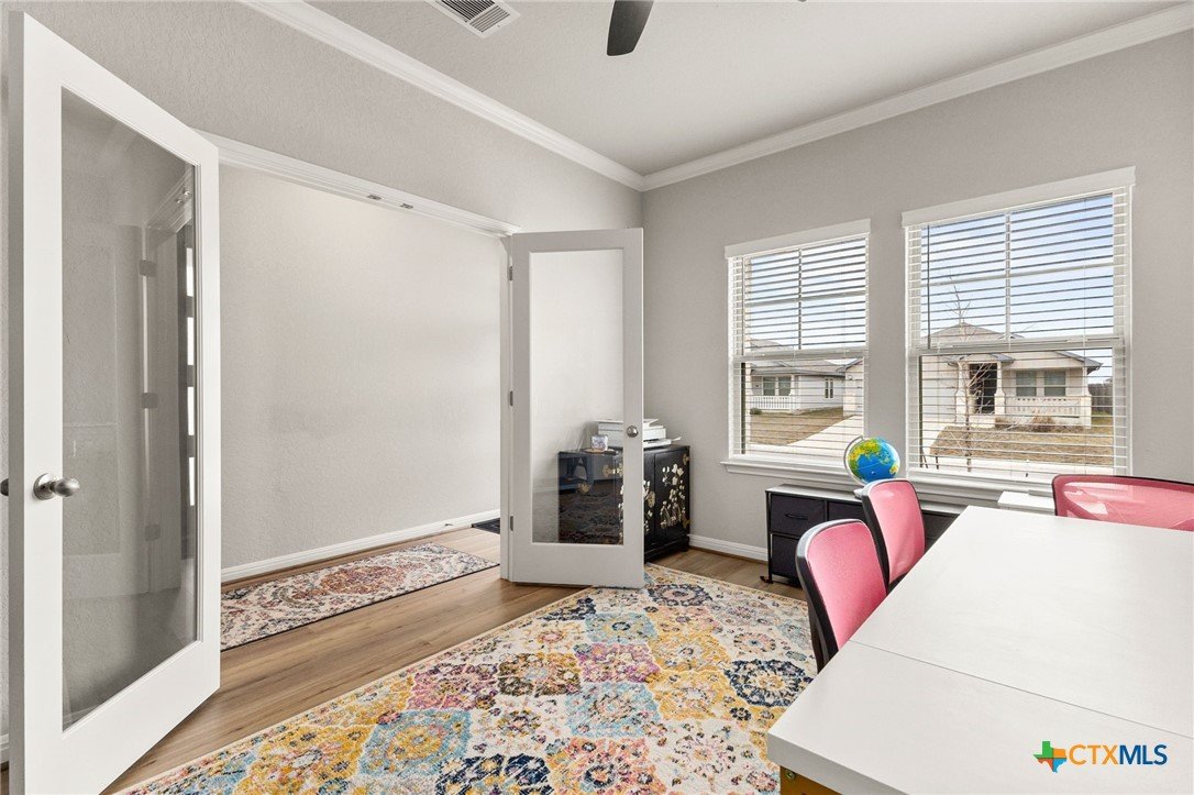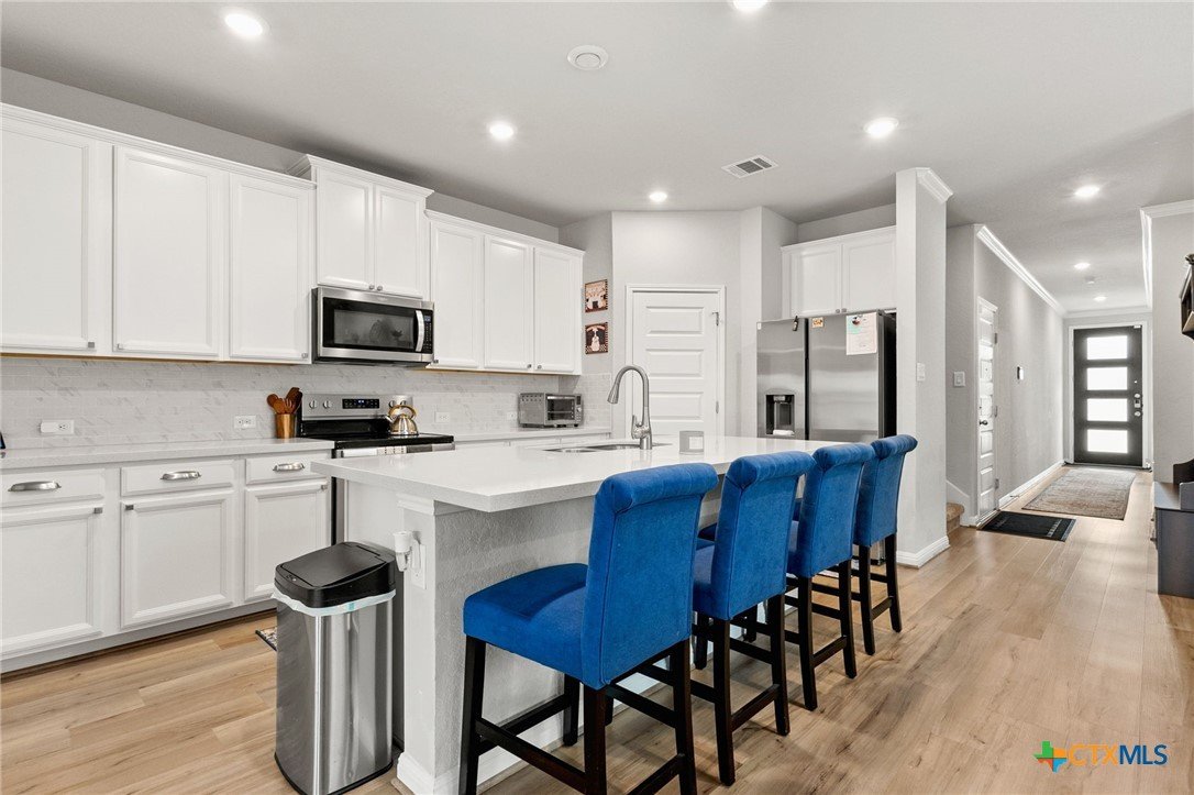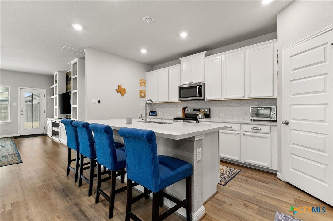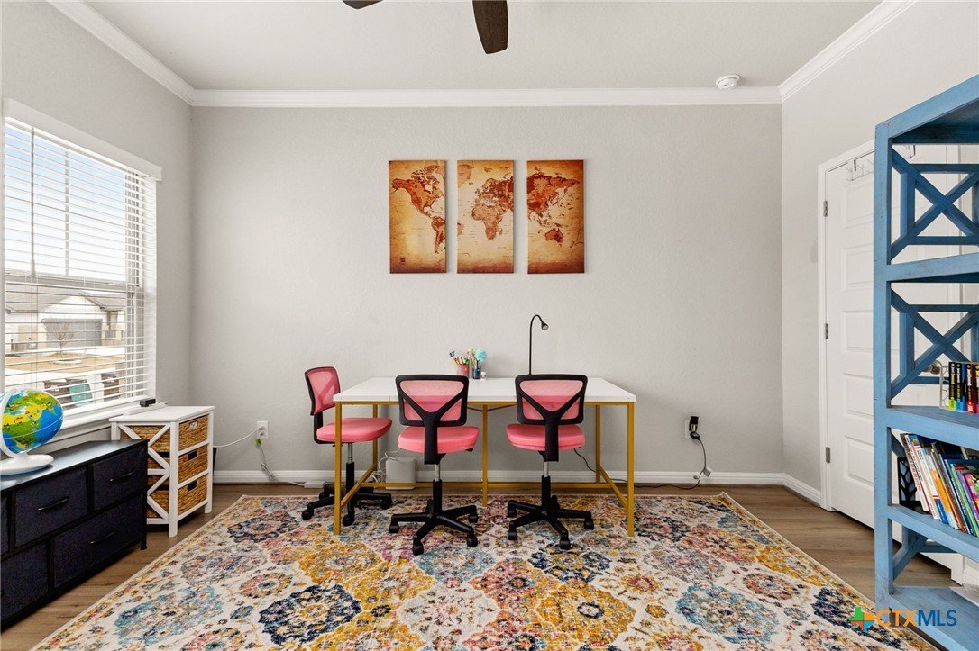 Sellers providing $5,000.00 towards closing costs for this beautiful energy-efficient home with plenty of space for your entire family! The kitchen is big enough for entertaining guest for those special occasions and comes equipped with elegant quartz countertops and plenty of cabinet and storage space. The living room has been upgraded with a custom media wall that gives it that extra special feel of home sweet home. Large primary bedroom with bay window and large closet located downstairs. Two ADDITIONAL office/flex rooms and one upstairs game room/loft. All other bedrooms and restroom are located upstairs. Large walk-in laundry room downstairs. Two car garage with additional storage space inside the garage. Extended driveway so you can park your vehicles comfortably. The patio slab has been custom made to provide additional entertainment/outdoor grilling space. This home is located in the Meyers Landing community just minutes away from shopping centers (HEB, Target, HomeGoods and more!), entertainment, restaurants and access to I-35, Hwy 46 and Hwy 123. Ask your Realtor about all the additional inclusions/exclusions with purchase of home! Seller encouraging all interested buyers to send in their offer! All reasonable offers will be presented with a quick response! You'll never know unless you submit an offer! Sellers providing $5,000.00 towards closing costs!!!