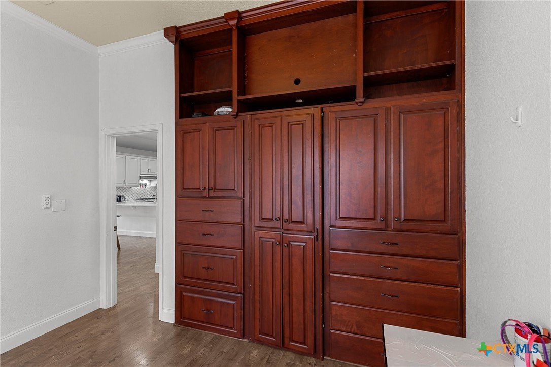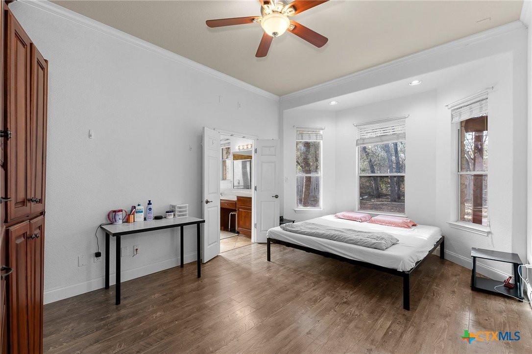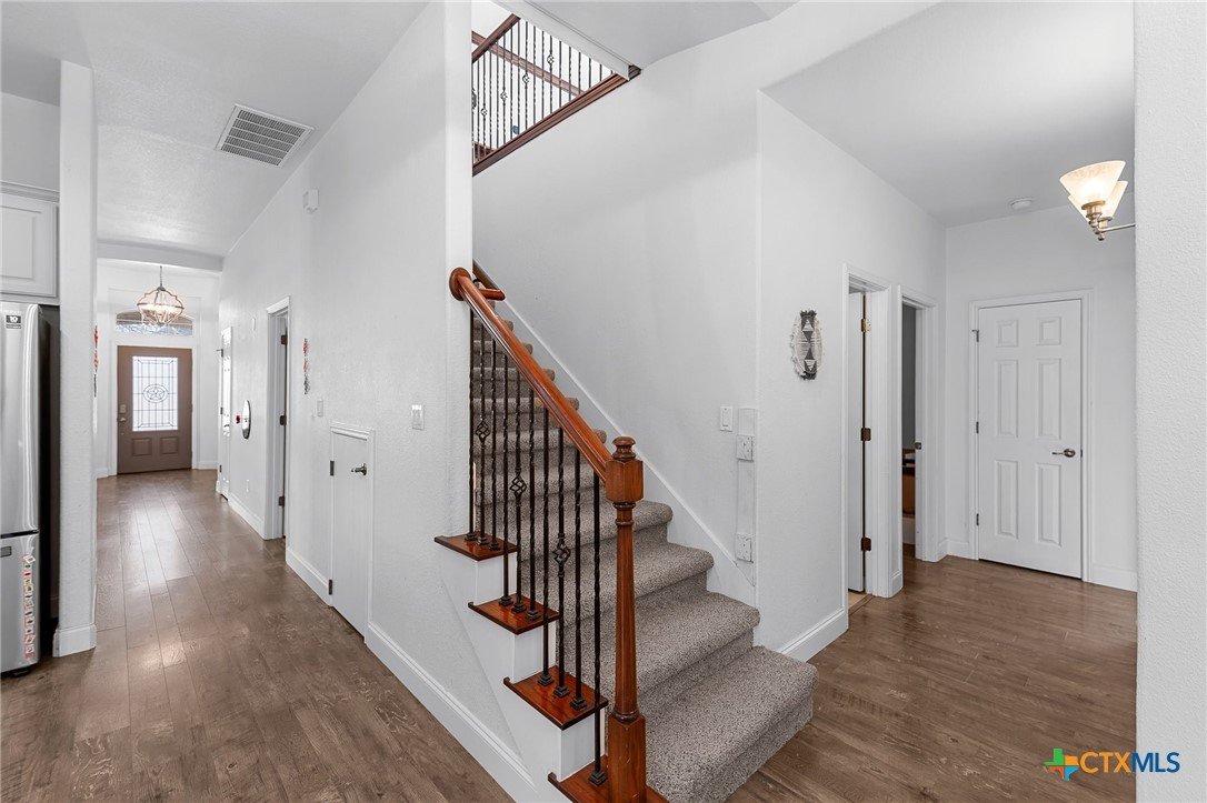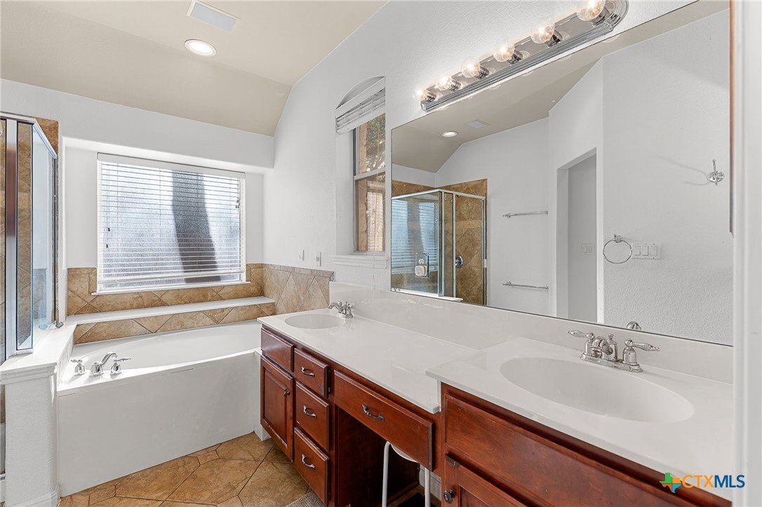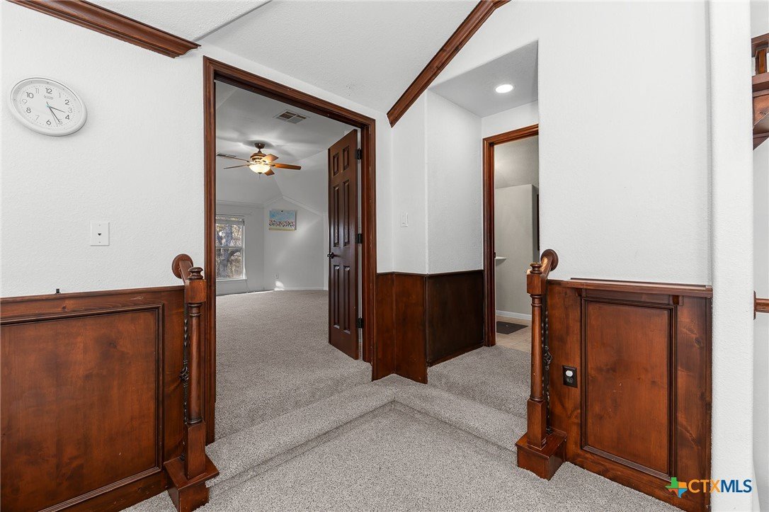 Welcome to 12606 Palfrey Lane, a beautiful 1.5-story home showcasing an exceptional and highly coveted floor plan in the heart of Austin. Thoughtfully designed, all bedrooms are located on the main level, along with a formal dining room and a private office featuring its own window overlooking mature trees—perfect for working from home in a serene setting. The spacious primary suite is a true retreat, highlighted by a one-of-a-kind secret closet straight out of a movie. The spa-inspired primary bathroom includes dual vanities, a standing shower, and a relaxing soaking tub. Secondary bedrooms are generously sized and each offers its own walk-in closet. The open-concept kitchen with Quartz counters flows seamlessly into the living area with its own cozy fireplace, making it ideal for entertaining and everyday gatherings. Complete with a stainless steel refrigerator and Bosch 800 dishwasher, this space is perfect for conversations, celebrations, and creating lasting memories. Upstairs, you’ll find double attic storage access and two massive additional living areas, offering endless possibilities—guest space, media room, home theater, game room, playroom, or all of the above. A full bathroom suite upstairs adds even more flexibility and convenience. Step outside to a backyard that is truly peaceful, backing to a greenbelt with mature trees for added privacy. The covered back porch and pergola is ideal for entertaining or unwinding while enjoying the natural surroundings. This home is a true gem, located just minutes from The Domain, Apple campus, major shopping, dining, and entertainment, offering the perfect blend of comfort, functionality, and prime Austin living.