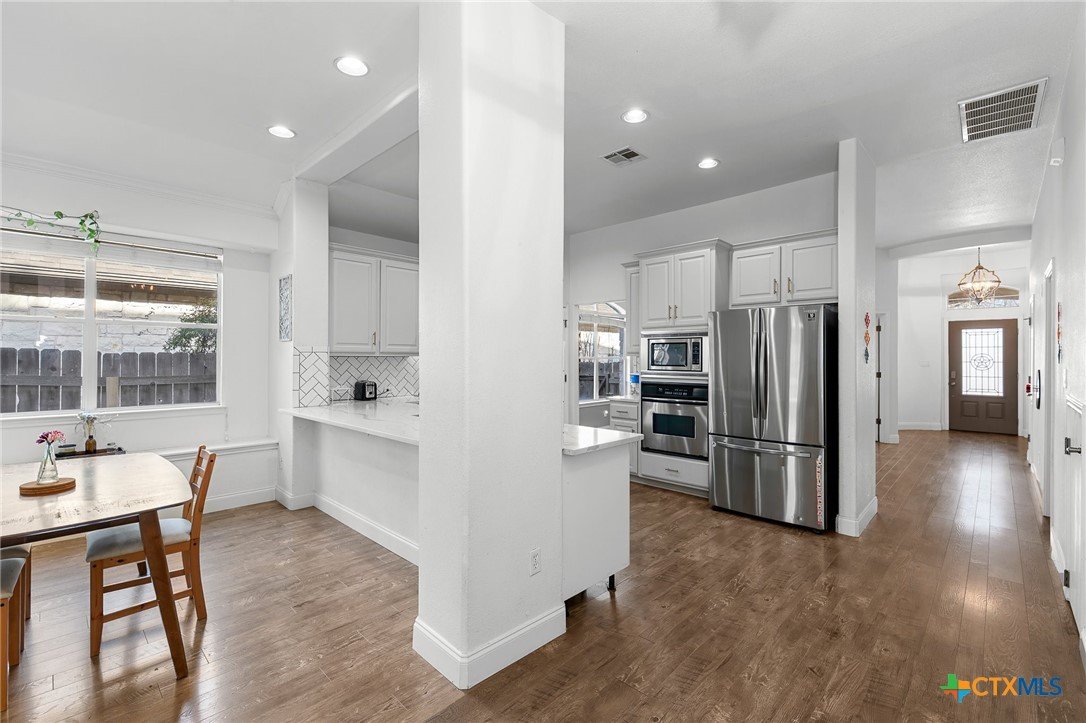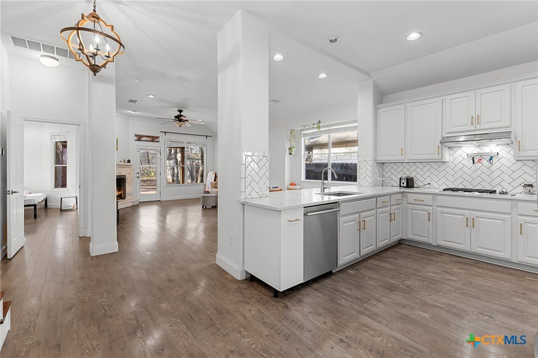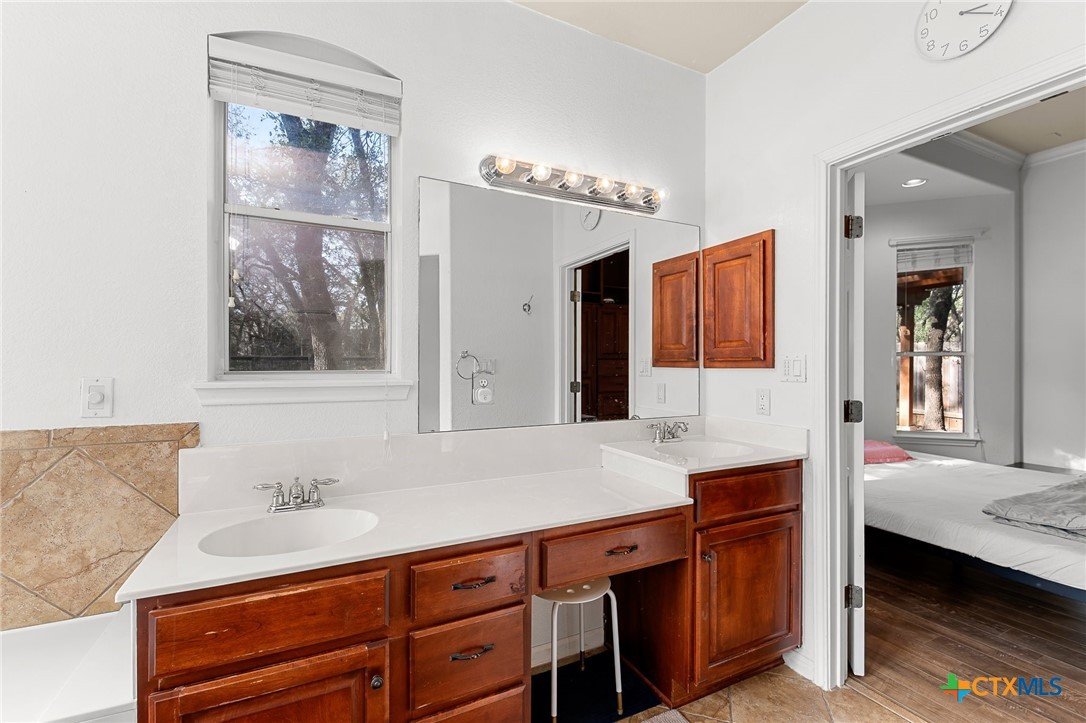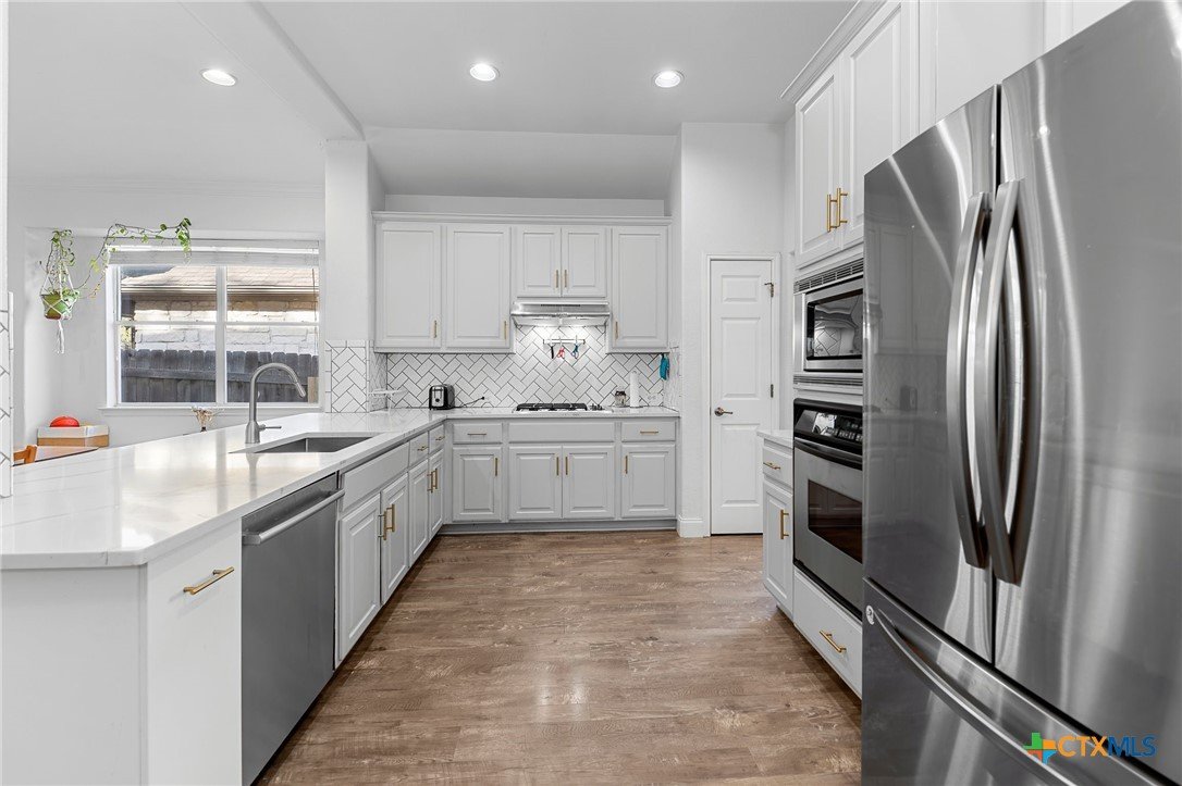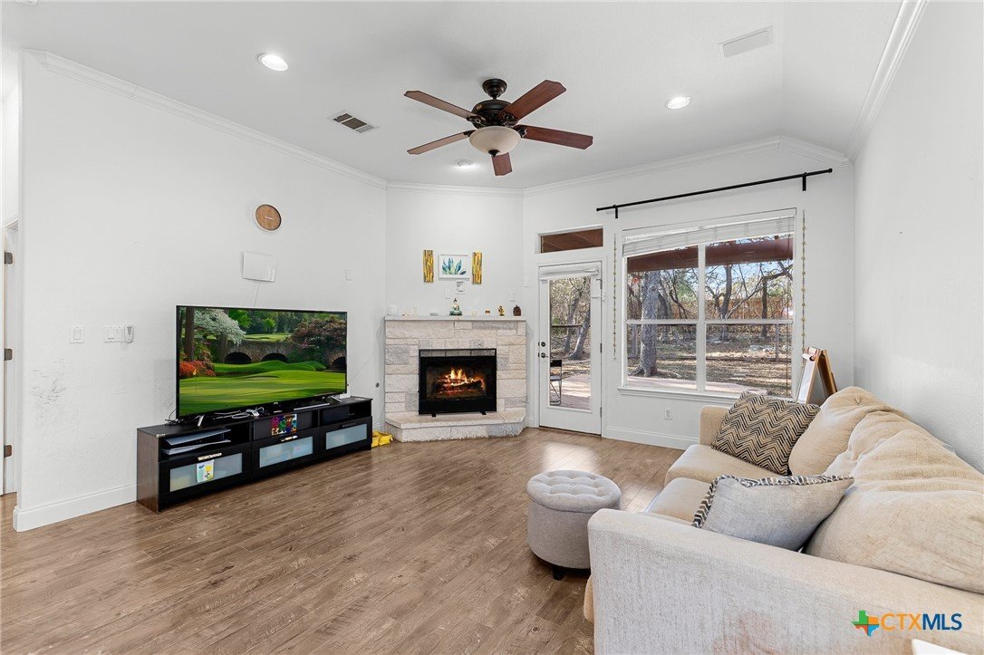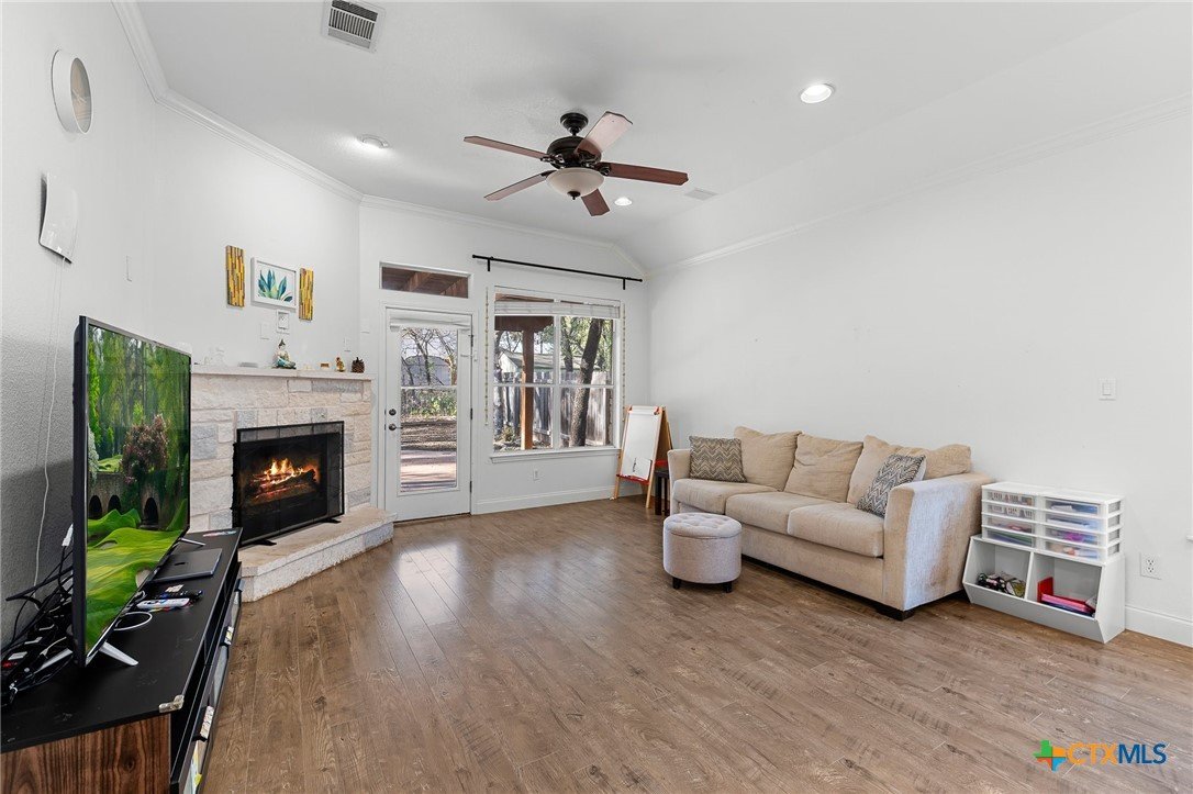 Welcome to 12606 Palfrey Lane, a beautiful 1.5-story home showcasing an exceptional and highly coveted floor plan in the heart of Austin. Thoughtfully designed, all bedrooms are located on the main level, along with a formal dining room and a private office featuring its own window overlooking mature trees—perfect for working from home in a serene setting. The spacious primary suite is a true retreat, highlighted by a one-of-a-kind secret closet straight out of a movie. The spa-inspired primary bathroom includes dual vanities, a standing shower, and a relaxing soaking tub. Secondary bedrooms are generously sized and each offers its own walk-in closet. The open-concept kitchen with Quartz counters flows seamlessly into the living area with its own cozy fireplace, making it ideal for entertaining and everyday gatherings. Complete with a stainless steel refrigerator and Bosch 800 dishwasher, this space is perfect for conversations, celebrations, and creating lasting memories. Upstairs, you’ll find double attic storage access and two massive additional living areas, offering endless possibilities—guest space, media room, home theater, game room, playroom, or all of the above. A full bathroom suite upstairs adds even more flexibility and convenience. Step outside to a backyard that is truly peaceful, backing to a greenbelt with mature trees for added privacy. The covered back porch and pergola is ideal for entertaining or unwinding while enjoying the natural surroundings. This home is a true gem, located just minutes from The Domain, Apple campus, major shopping, dining, and entertainment, offering the perfect blend of comfort, functionality, and prime Austin living.