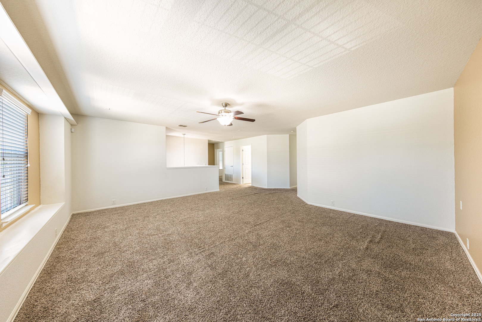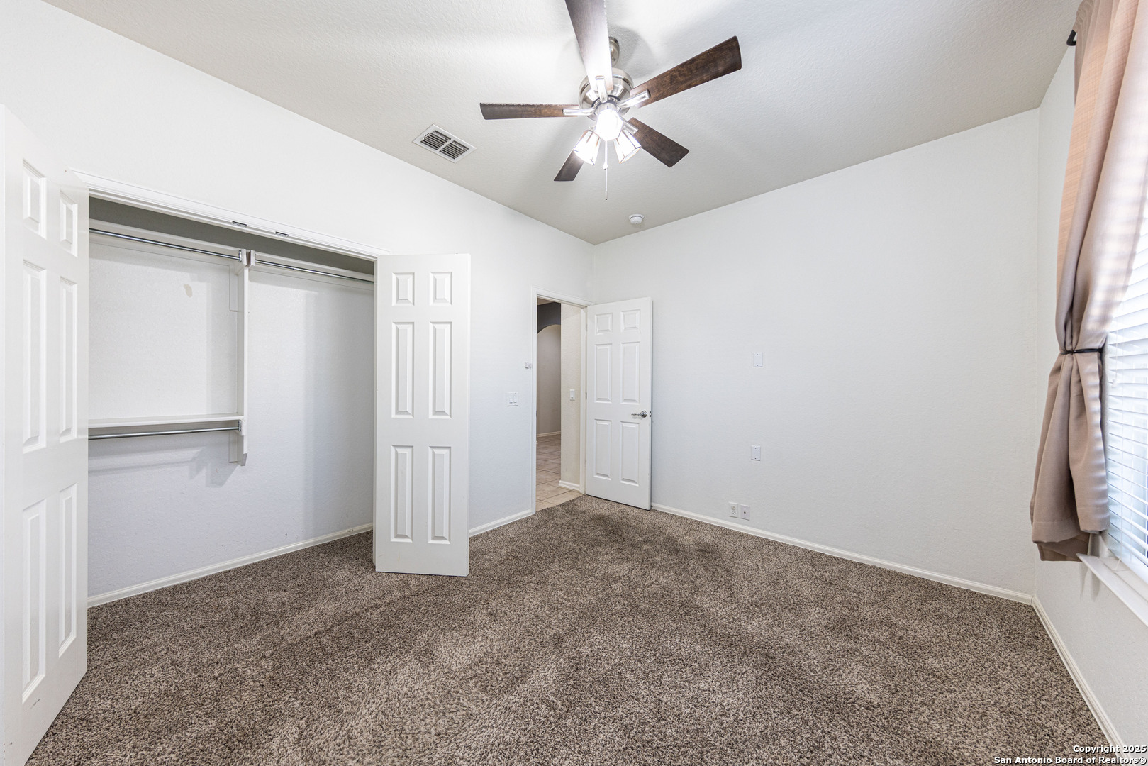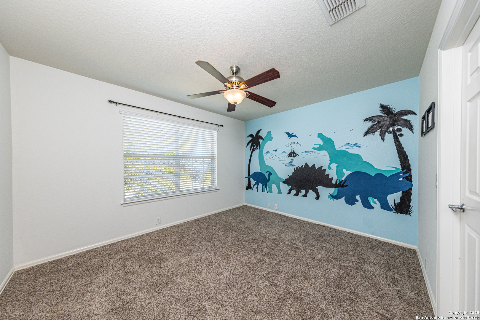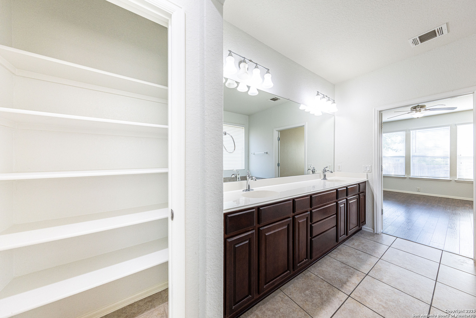 This 2,989 sq. ft. home offers a flexible floor plan with TWO bedroom suites with full bathrooms on the first floor, making the layout ideal for multi-generational living or added comfort and privacy for visiting guests. This is a spacious 5 bed, 3 bath home in Alamo Ranch with highly rated Northside ISD schools. Enjoy an open-concept living and kitchen space with tile flooring throughout and granite countertops, a large dine-in island, stainless steel appliances, GAS cooking, a large pantry and an additional breakfast nook that opens to your beautiful outdoor patio. The primary bedroom features laminate flooring for easy maintenance and is wheelchair accessible with a large shower with a low threshold and a massive walk-in closet. Additional spaces downstairs include an office nook off the kitchen, a spacious utility room with sink and extra storage and a partially finished garage with epoxy flooring, additional storage and a water softener. Upstairs, enter a large loft space ideal as an additional living space, game room or media room. 3 additional bedrooms upstairs feature plush carpet, blinds throughout and large closets for plenty of storage. You have even more storage with a large, finished section of the attic upstairs. Outside, enjoy serene outdoor living with a large, covered patio with ceiling fans, an extended deck with built-in seating and storage with a stunning mature oak tree that provides added shade and privacy. Plus, enjoy resort-like community amenities that are only a 2-minute drive away that include a pool, clubhouse, park, playground, sports courts, and trails. The home is also only minutes from shopping and dining at Alamo Ranch Marketplace and offers quick access to Loop 1604 for easy commutes to UTSA, the Medical Center, San Antonio Airport, downtown and more. An extra perk during summer nights is that you can enjoy the Six Flags fireworks in the distance right from your own home! This one-of-a-kind floor plan with two suites downstairs won't last long so be sure to schedule your tour today.