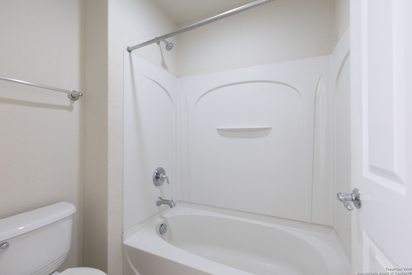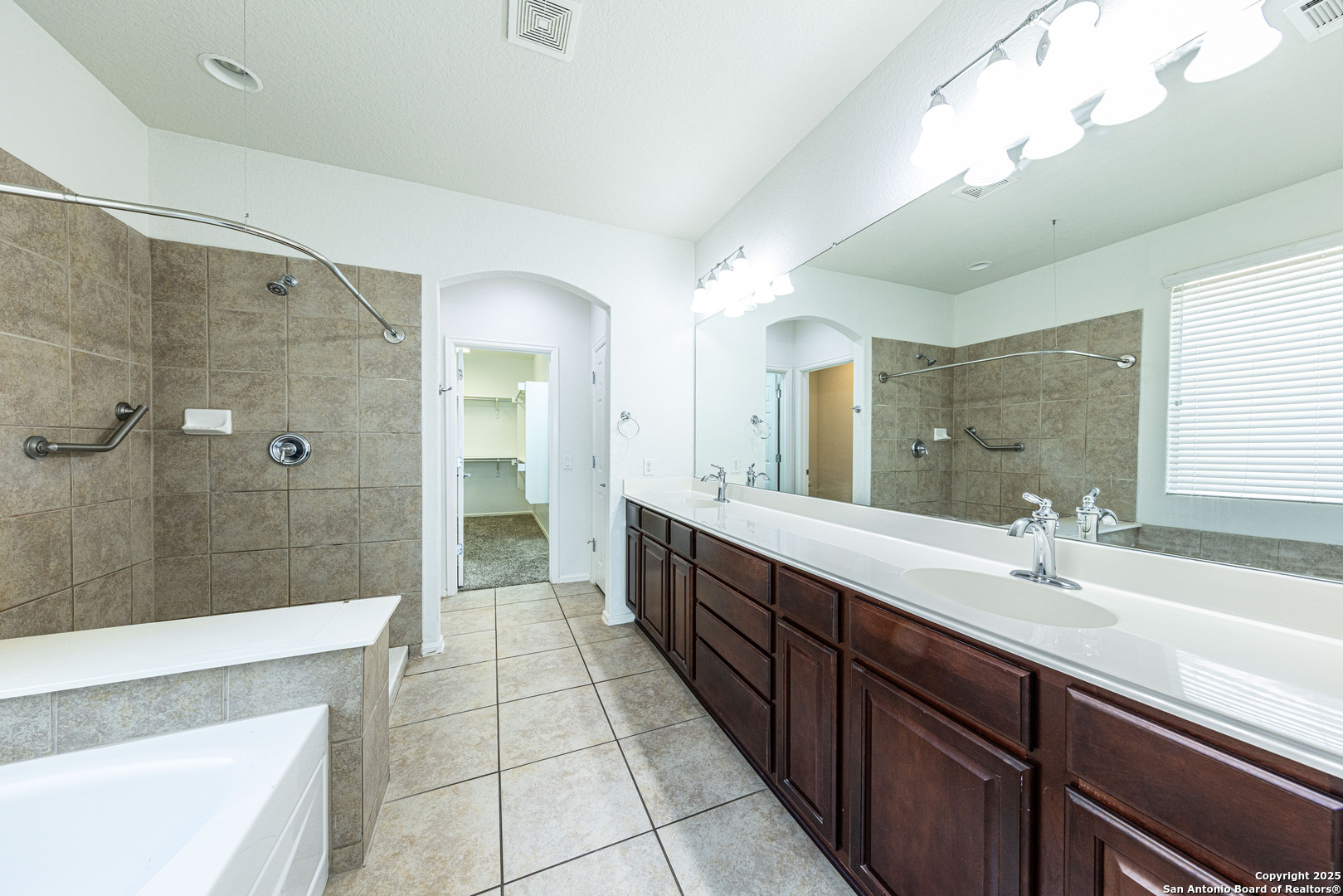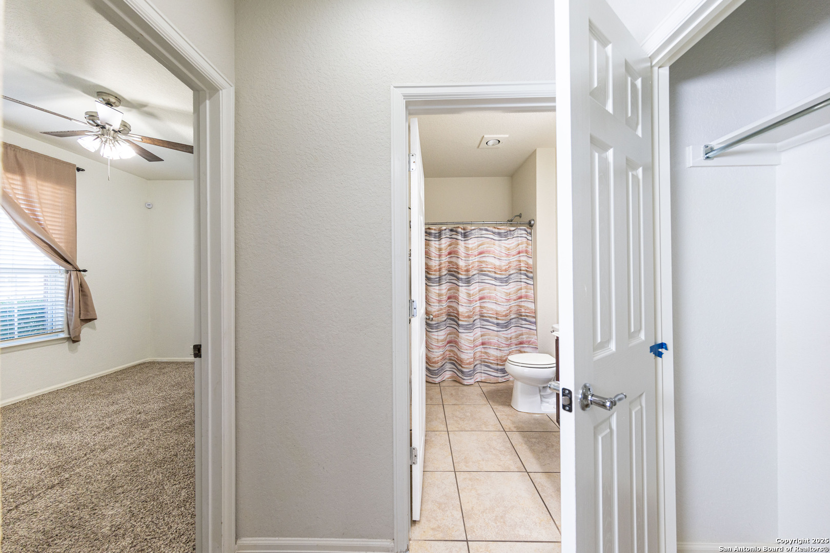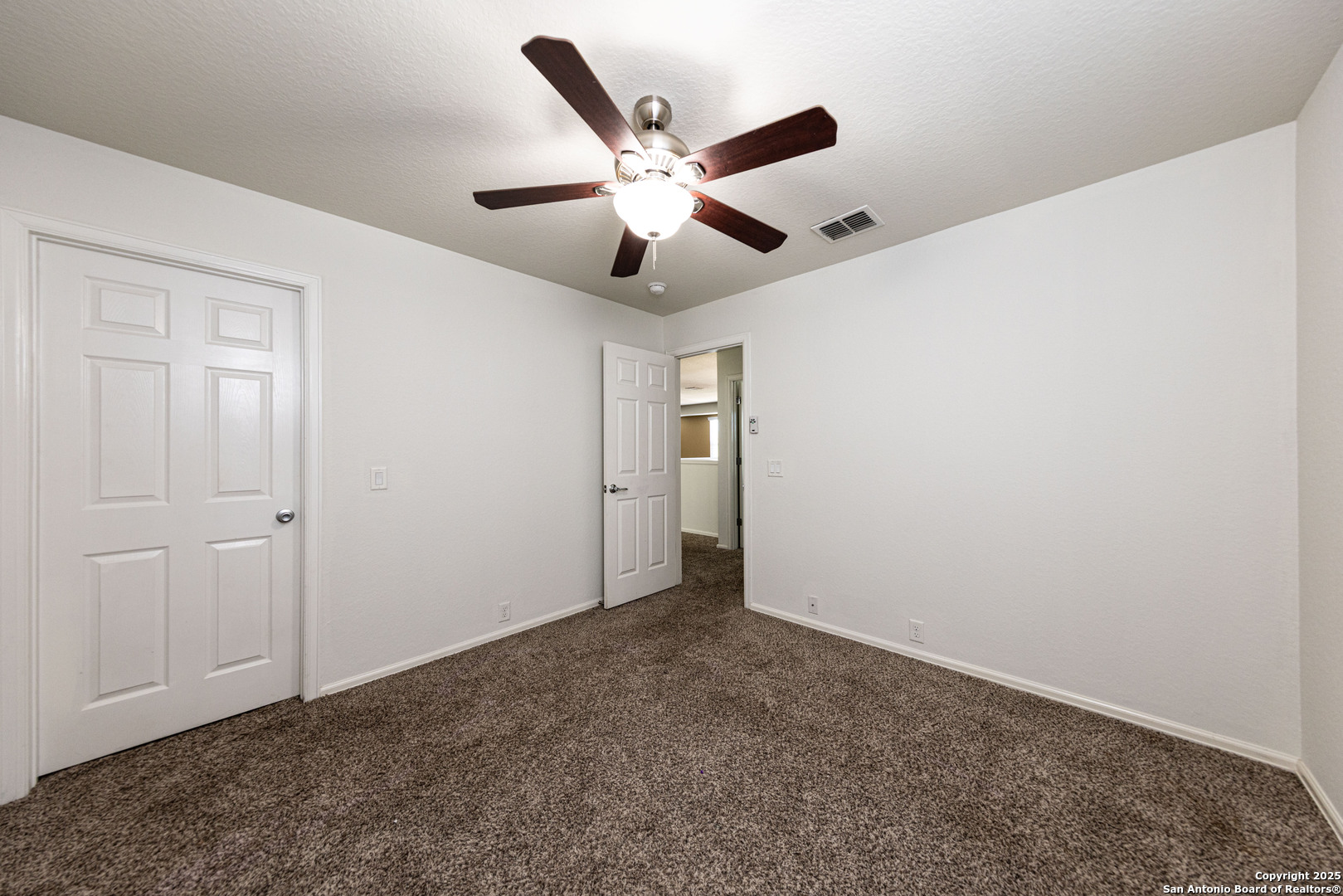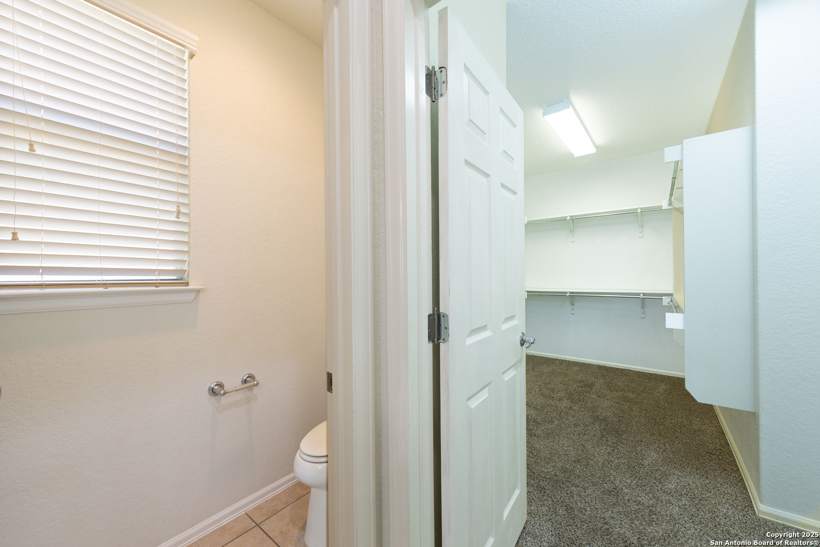 This 2,989 sq. ft. home offers a flexible floor plan with TWO bedroom suites with full bathrooms on the first floor, making the layout ideal for multi-generational living or added comfort and privacy for visiting guests. This is a spacious 5 bed, 3 bath home in Alamo Ranch with highly rated Northside ISD schools. Enjoy an open-concept living and kitchen space with tile flooring throughout and granite countertops, a large dine-in island, stainless steel appliances, GAS cooking, a large pantry and an additional breakfast nook that opens to your beautiful outdoor patio. The primary bedroom features laminate flooring for easy maintenance and is wheelchair accessible with a large shower with a low threshold and a massive walk-in closet. Additional spaces downstairs include an office nook off the kitchen, a spacious utility room with sink and extra storage and a partially finished garage with epoxy flooring, additional storage and a water softener. Upstairs, enter a large loft space ideal as an additional living space, game room or media room. 3 additional bedrooms upstairs feature plush carpet, blinds throughout and large closets for plenty of storage. You have even more storage with a large, finished section of the attic upstairs. Outside, enjoy serene outdoor living with a large, covered patio with ceiling fans, an extended deck with built-in seating and storage with a stunning mature oak tree that provides added shade and privacy. Plus, enjoy resort-like community amenities that are only a 2-minute drive away that include a pool, clubhouse, park, playground, sports courts, and trails. The home is also only minutes from shopping and dining at Alamo Ranch Marketplace and offers quick access to Loop 1604 for easy commutes to UTSA, the Medical Center, San Antonio Airport, downtown and more. An extra perk during summer nights is that you can enjoy the Six Flags fireworks in the distance right from your own home! This one-of-a-kind floor plan with two suites downstairs won't last long so be sure to schedule your tour today.