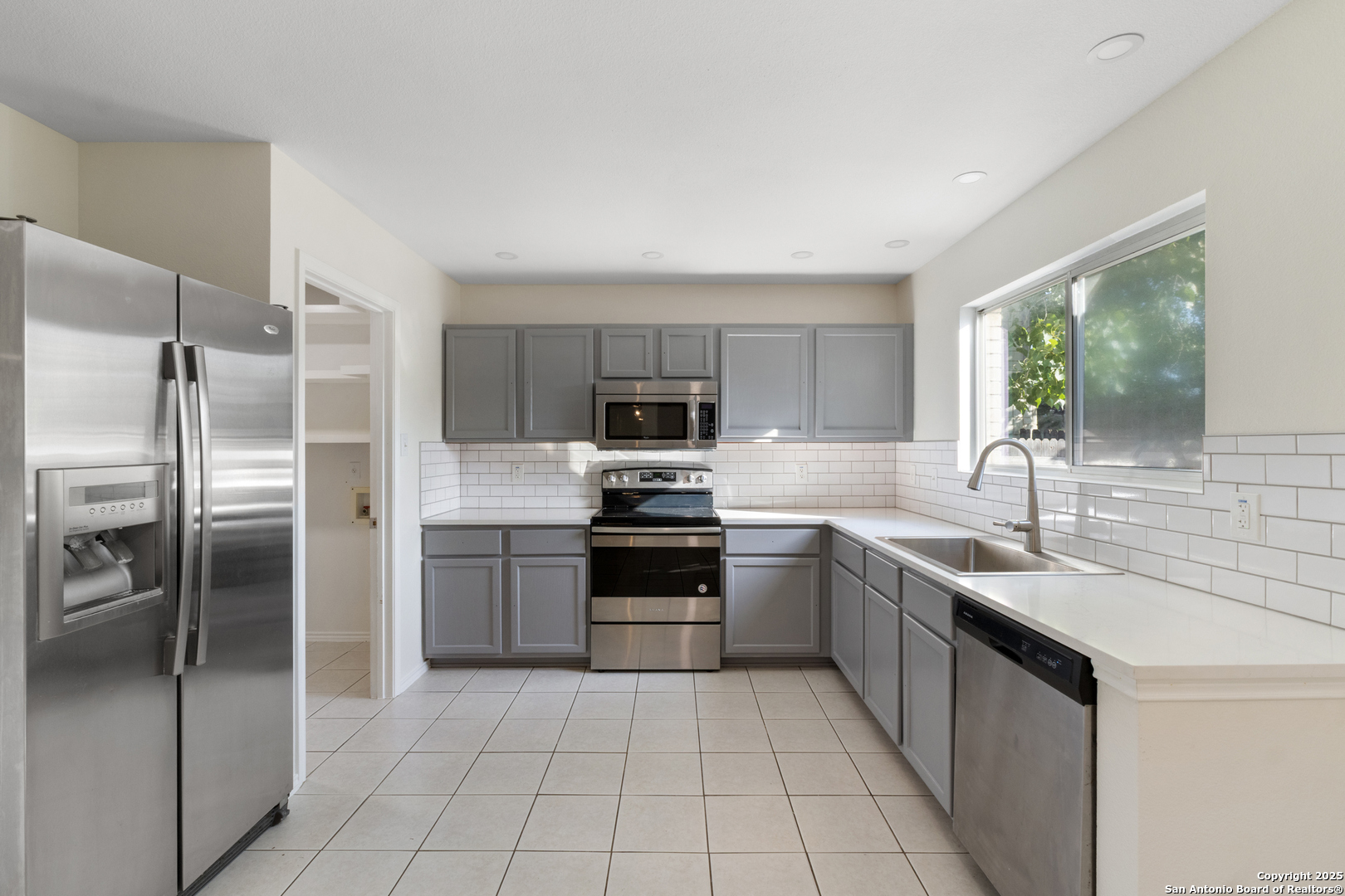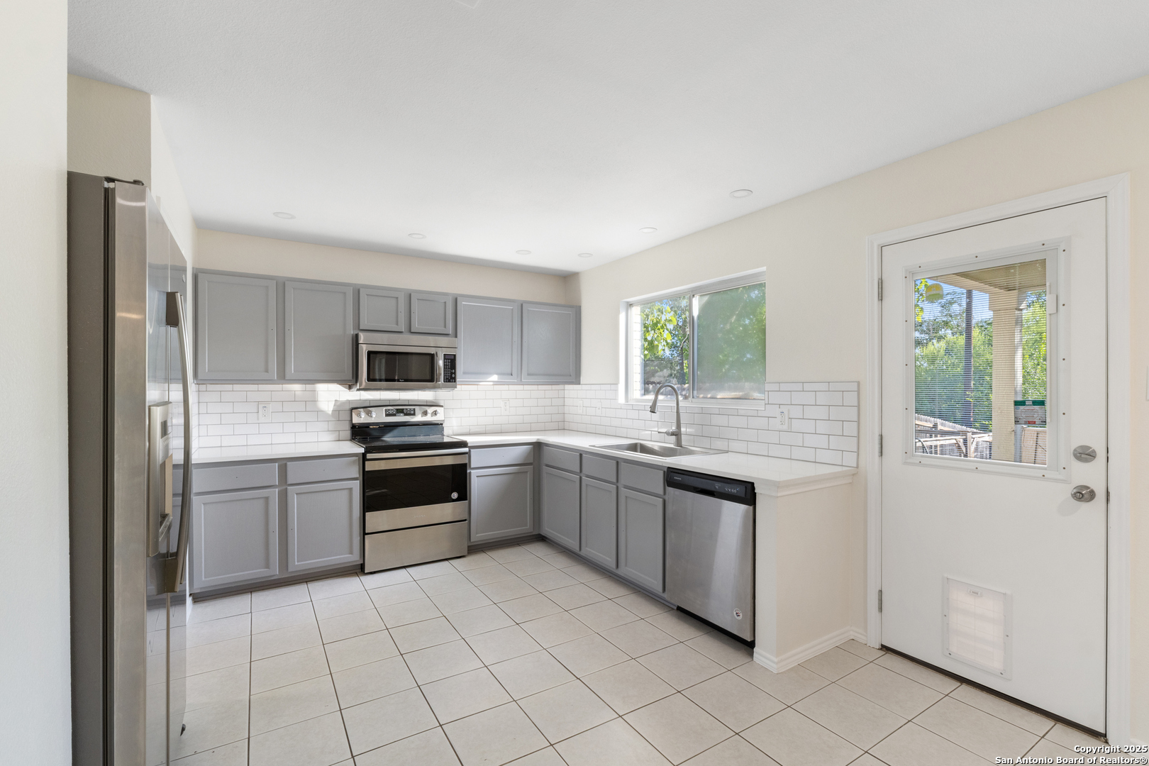 Charming updated home in the desirable Overlook at Carriage Hills! This 2,021 sq. ft. two-story beauty features 3 bedrooms, 2.5 baths, and recent upgrades including a stylishly renovated kitchen, fresh flooring downstairs, and new paint throughout the entire interior. The spacious layout offers an inviting living area perfect for relaxing or entertaining, while the bright kitchen boasts modern finishes and ample storage. Upstairs, you'll find comfortable bedrooms and a well-appointed primary suite. Step outside to a large backyard-ideal for gatherings, gardening, or simply enjoying the Texas sunshine. Located just minutes from UTSA, the brand-new H-E-B, La Cantera, and The Rim, with quick access to major highways for an easy commute. Move-in ready and waiting for you!
