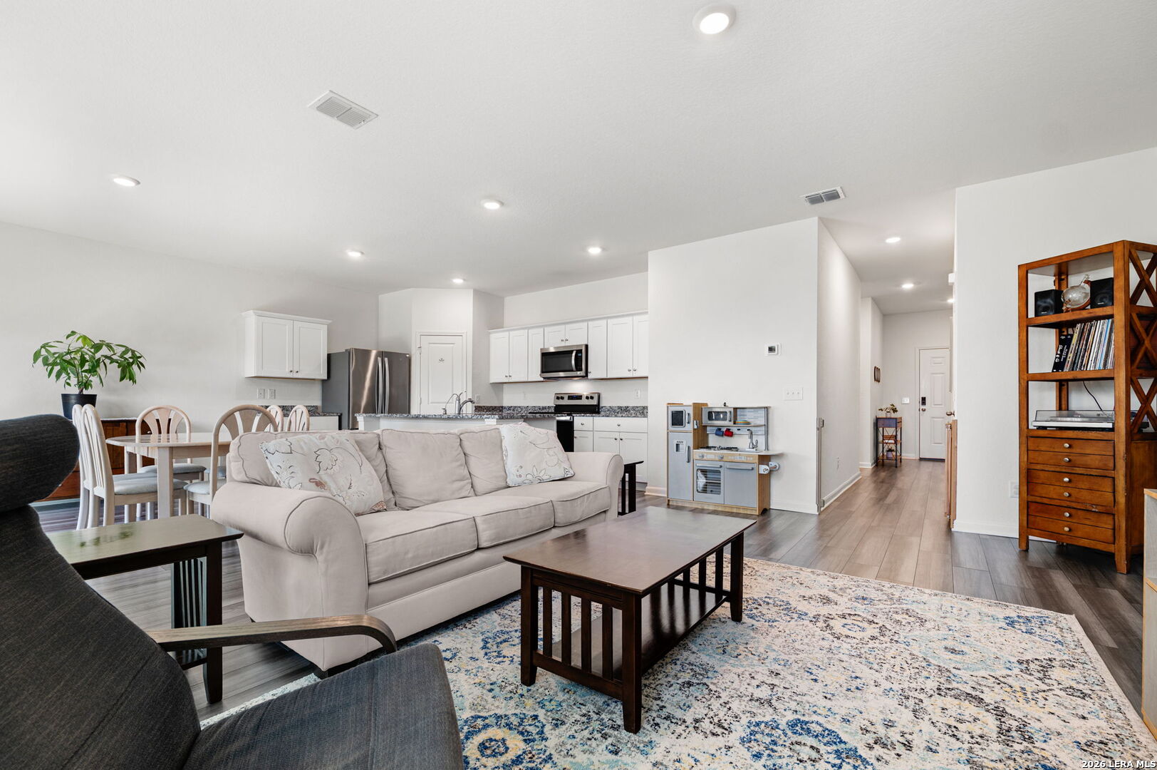 VA Assumable 4.875 interest rate!!! Welcome to a home designed for connection, comfort, and everyday ease; perfectly positioned in one of San Antonio's most convenient locations. From the moment you walk in, you're greeted by an open, light-filled layout where the living room, dining area, and kitchen flow seamlessly together, creating the ideal space for everything from relaxed evenings to hosting family & friends. Imagine mornings filled with natural light pouring through the windows, coffee at the island, and weekends spent gathered with the people who matter most. A secondary bedroom & full bath are located downstairs, offering a flexible setup ideal for guests, extended family, or multigenerational living. Whether it's hosting visiting loved ones or creating a private space for long-term stays, this layout adapts to your needs. Upstairs features a spacious primary suite, additional bedrooms, a second living area, and a conveniently located laundry room designed to make everyday living both functional & comfortable. For military & government employee families, this home offers the flexibility & location that support a dynamic lifestyle. With quick access to JBSA Lackland, Medina Annex, & Port San Antonio, along with easy connectivity to Hwy 90, commuting is simple and efficient. The layout provides space to settle in, host visiting family during transitions, or create separate areas for work, rest, and daily routines. Located within Medina Valley ISD, near shopping, dining, and daily conveniences including H-E-B, Costco, Lowe's, and Home Depot, everything you need is just minutes away. Community amenities include a pool, park, and recreational areas, perfect for unwinding, staying active, and enjoying time together. Refrigerator, washer, and dryer convey with the home, adding to the home's move-in-ready convenience.This home combines thoughtful design, everyday functionality, and a location that truly supports the pace of San Antonio living. Schedule a tour today!