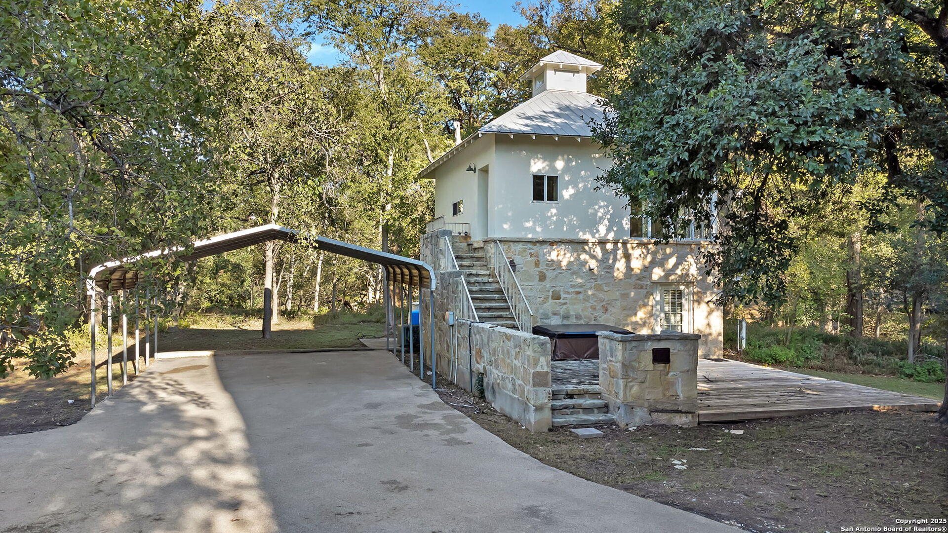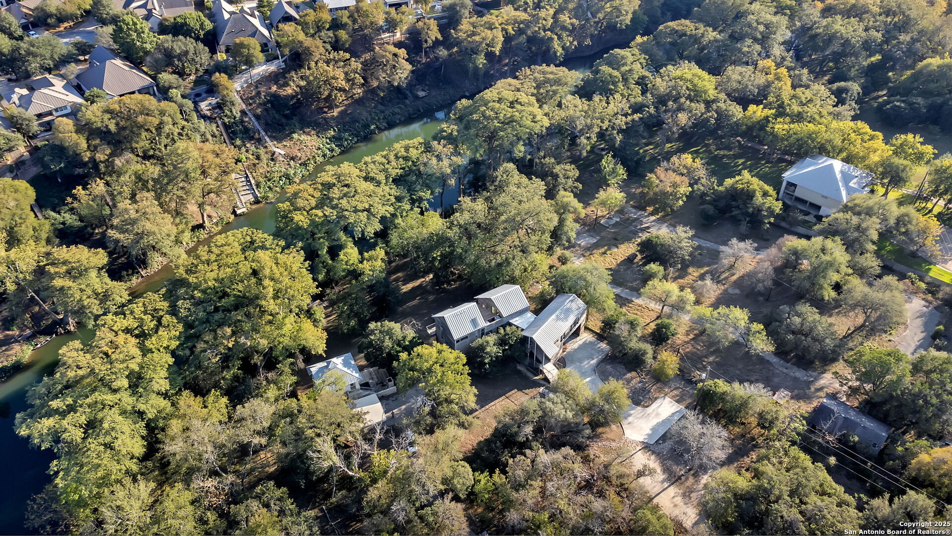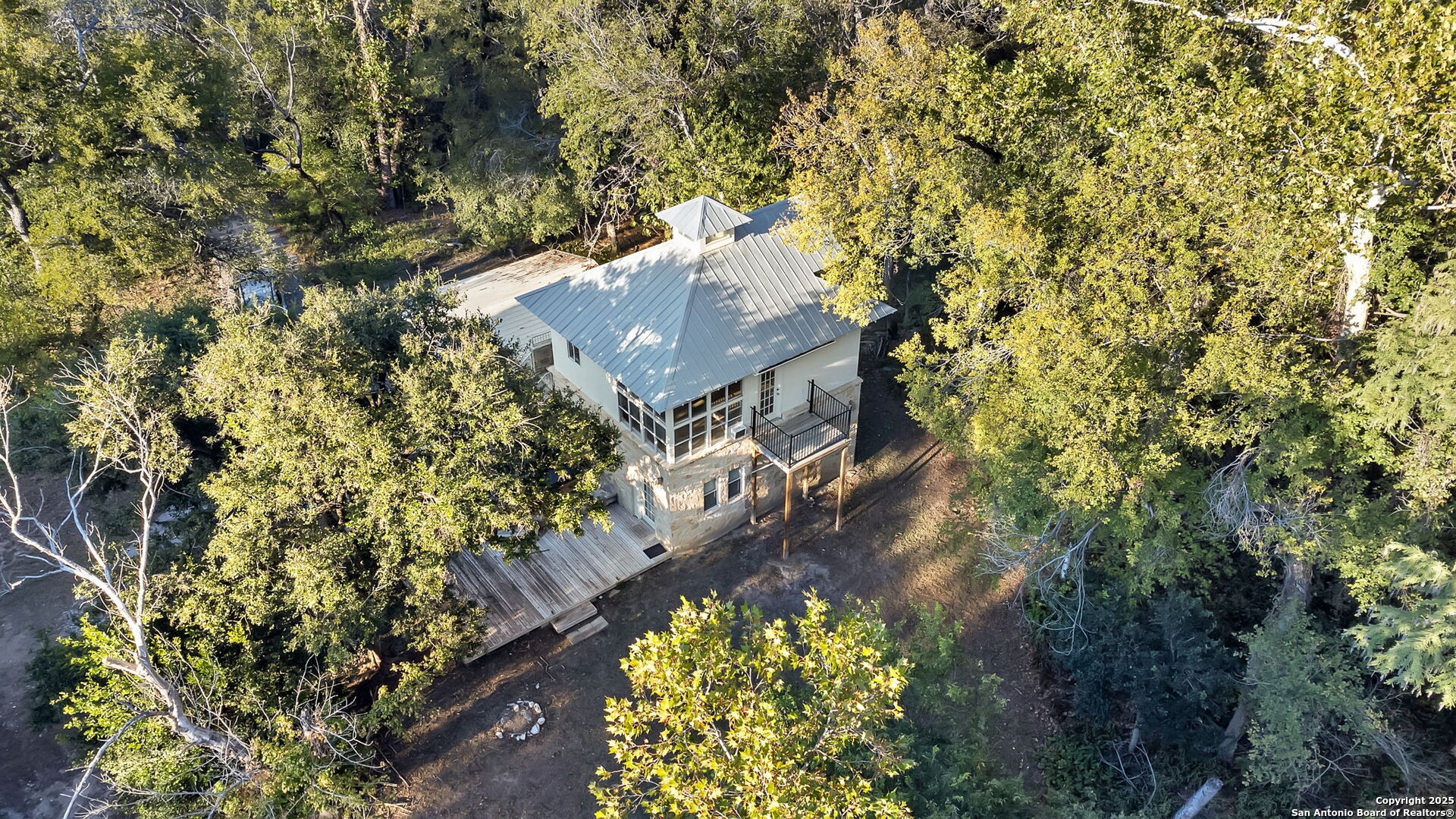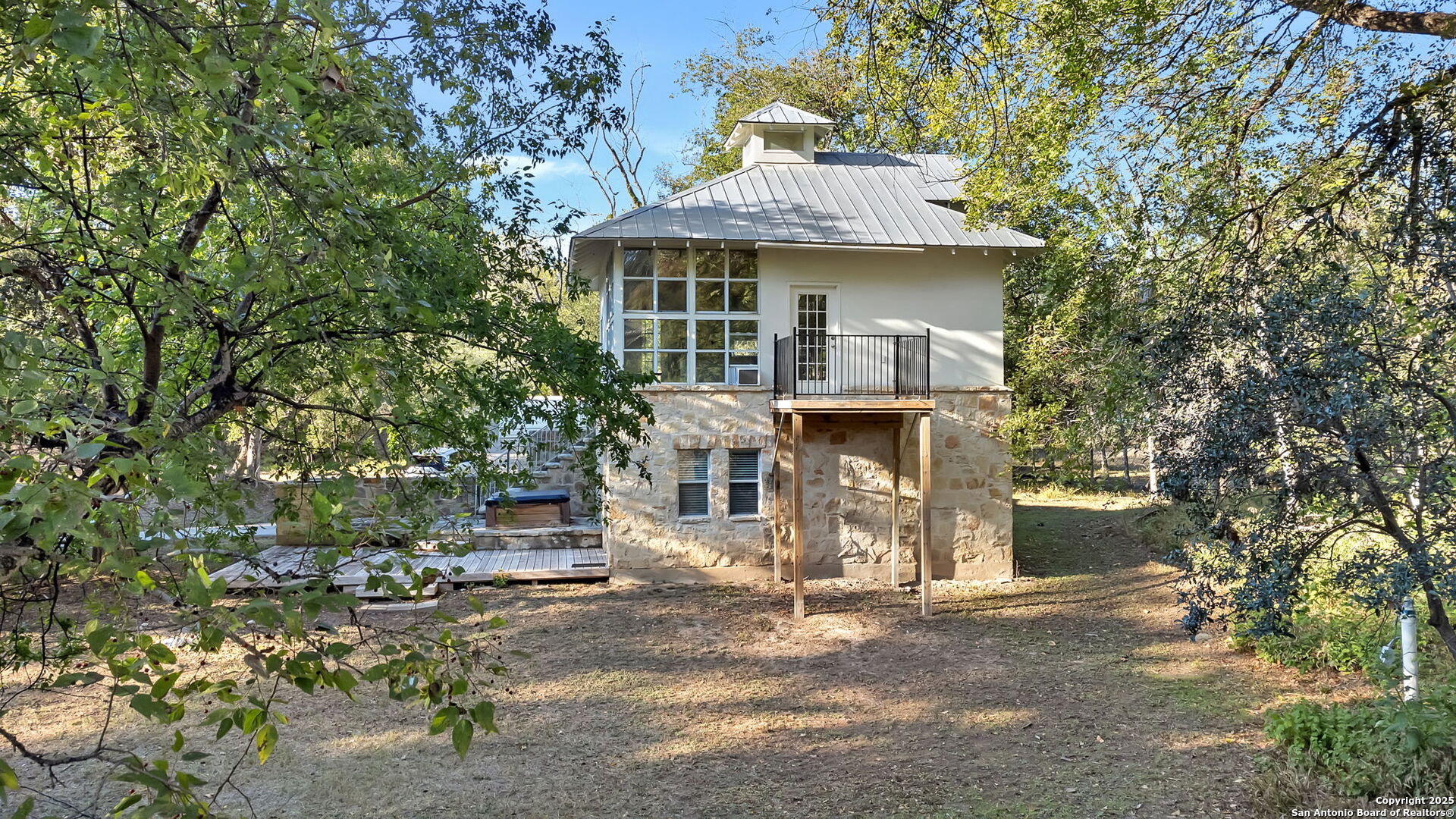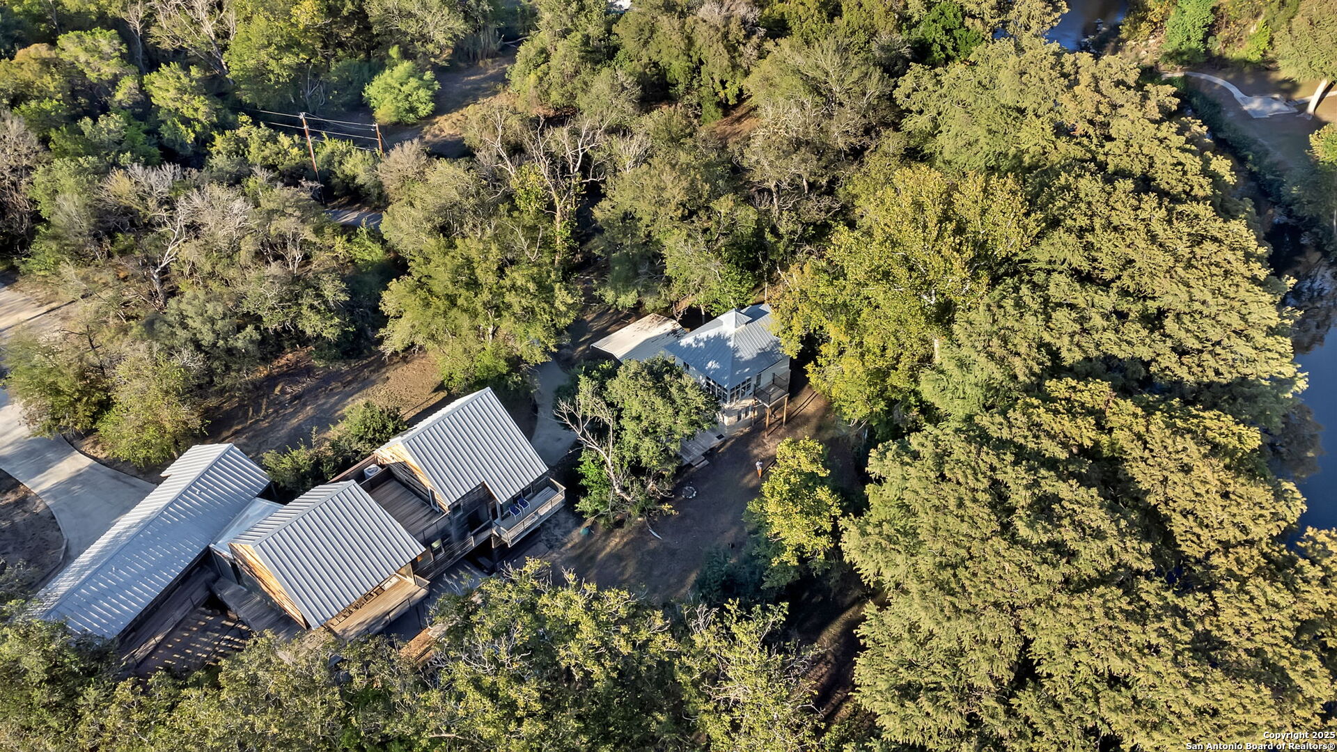 Rare Find! 100 feet Guadalupe River frontage in-town on almost 2 acres heavily wooded forest of towering oaks & elms. Very cool 2 story Alamo Stone cottage/weekend home. Lots of windows & views up and down the river. Spacious rock patio with hot tub & fire pit. This is a great place to relax & BBQ while watching the river activities. Wood deck on river's edge. Spiral stairs to loft/home office. Whether you're looking for a weekend getaway or your own everyday private oasis this is it.