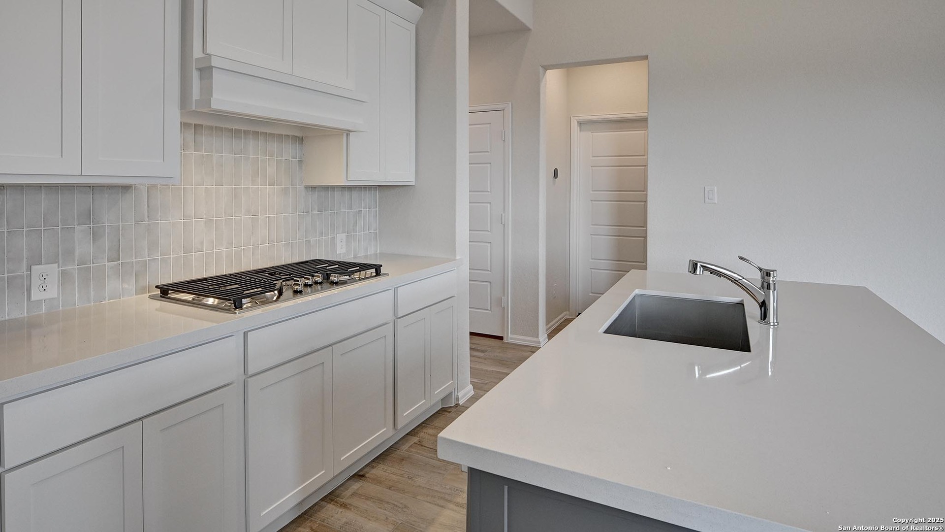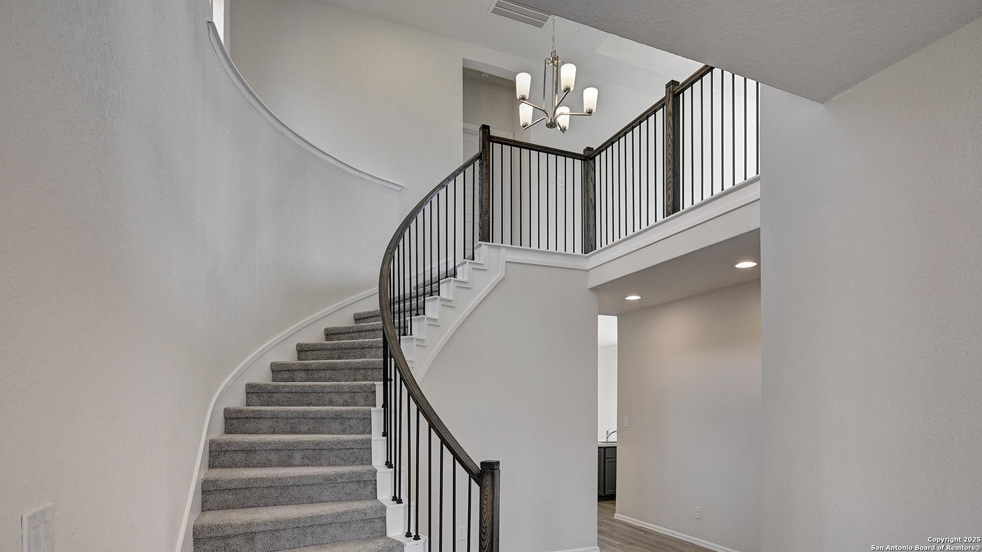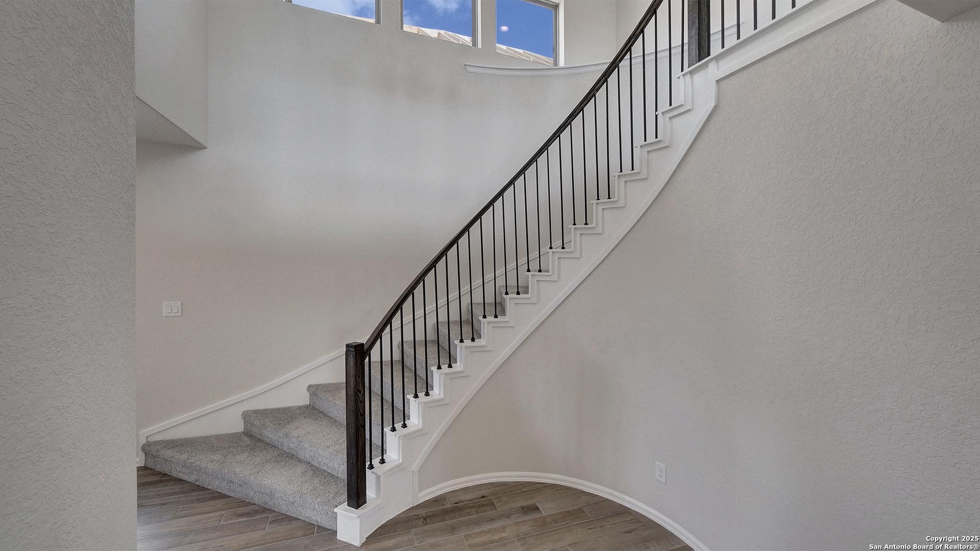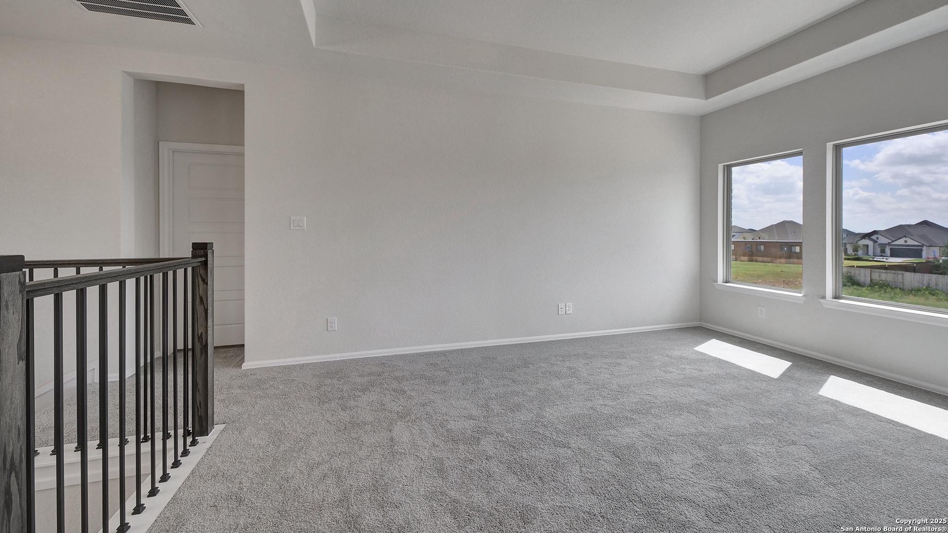 READY FOR MOVE-IN! Entryway opens into a curved staircase that is embraced by a grand ceiling. A secondary bedroom is right off the main hallway and has access to a full private bathroom and walk-in closet. As you enter the kitchen you are greeted by the island that features built-in seating, a 5-burner gas cooktop and a walk-in pantry. The dining area connects to the family room which boasts a wall of windows and access to the covered backyard patio. The primary bedroom is off the main living areas and allows ample natural light with its three large windows. Double doors lead into the primary bathroom which has dual vanities, a linen closet, large glass enclosed shower, and an oversized walk-in closet. It also allows dual access to the utility room for added convenience. Upstairs you are greeted by a game room which features a wall of windows. Completing the space are three bedrooms and two full bathrooms. Landscaping features a multi-zone sprinkler system. The mud room is off the two-car garage.