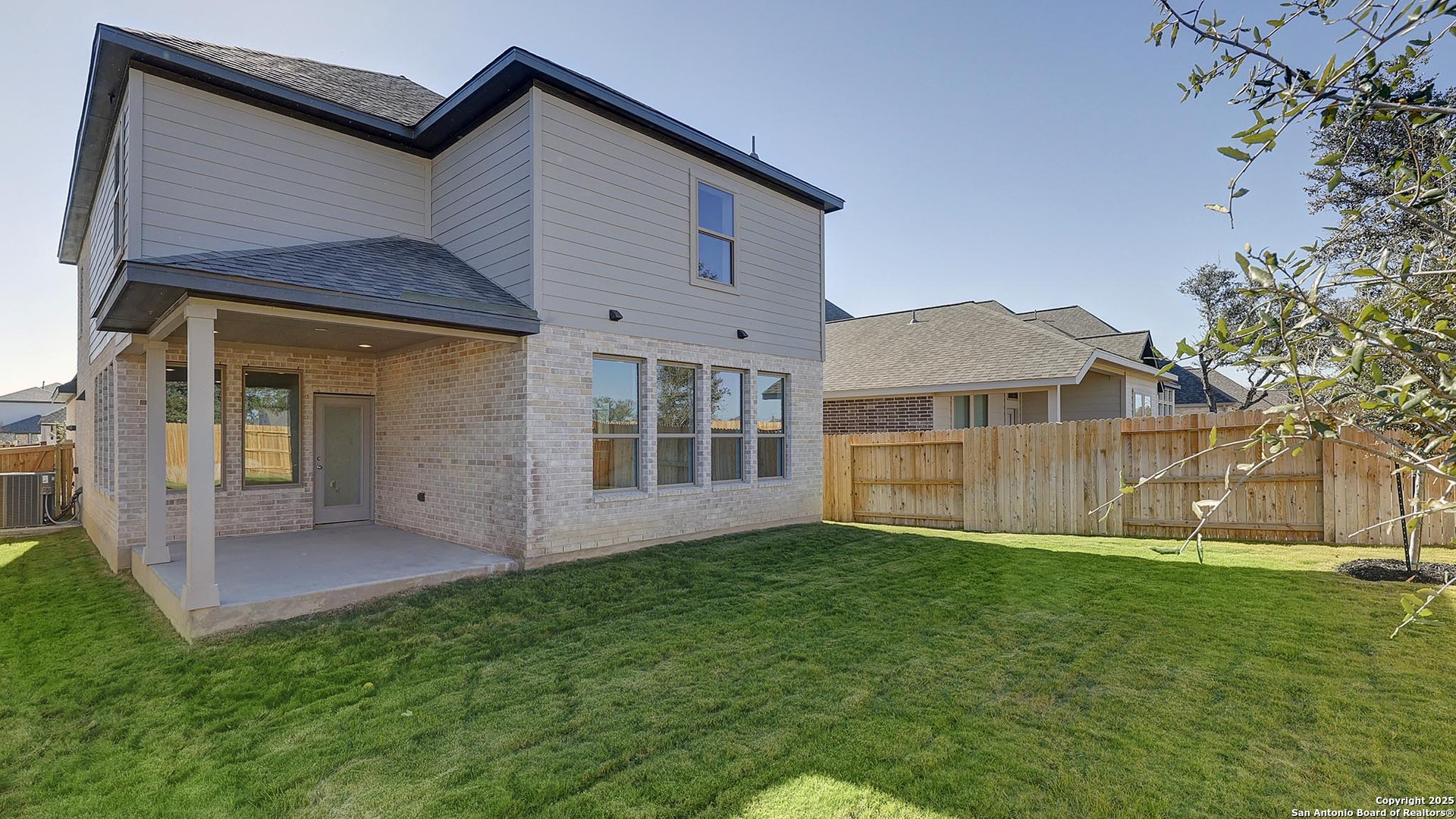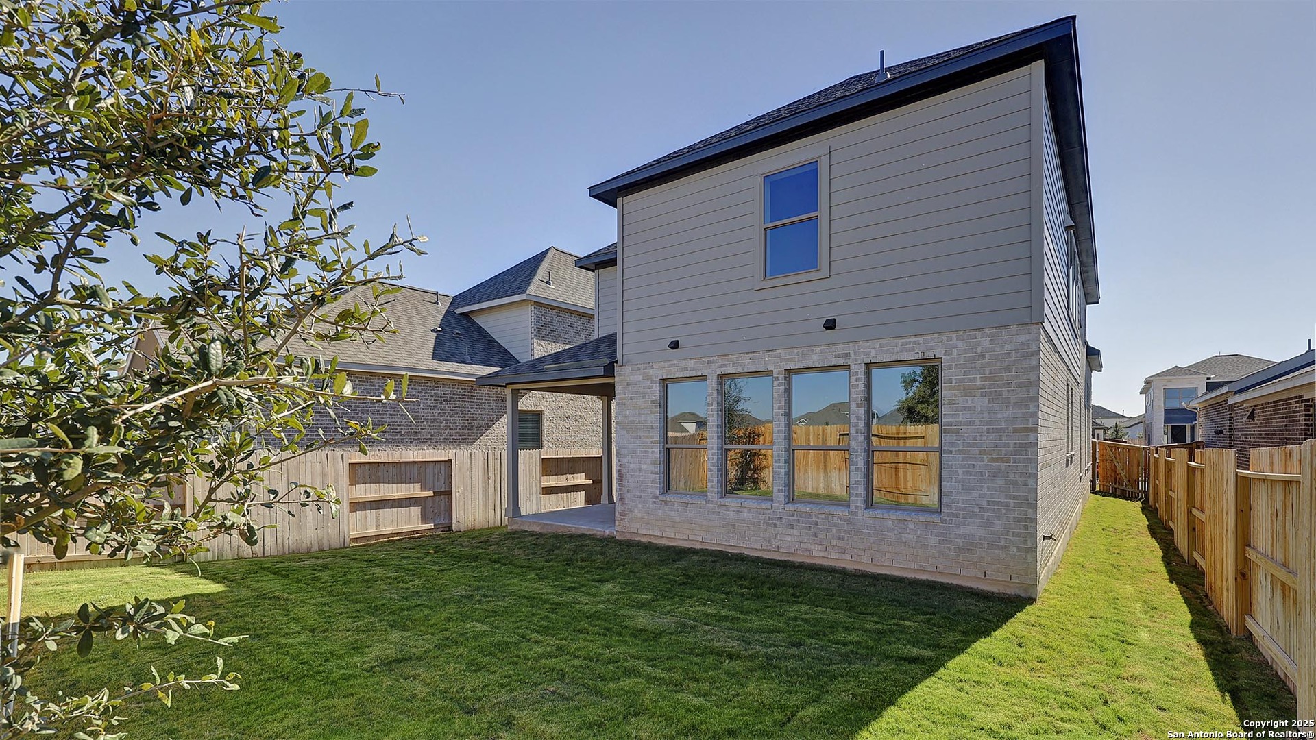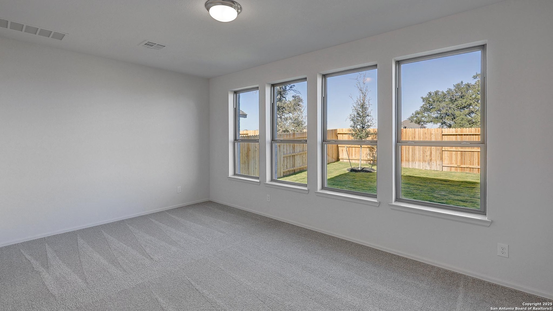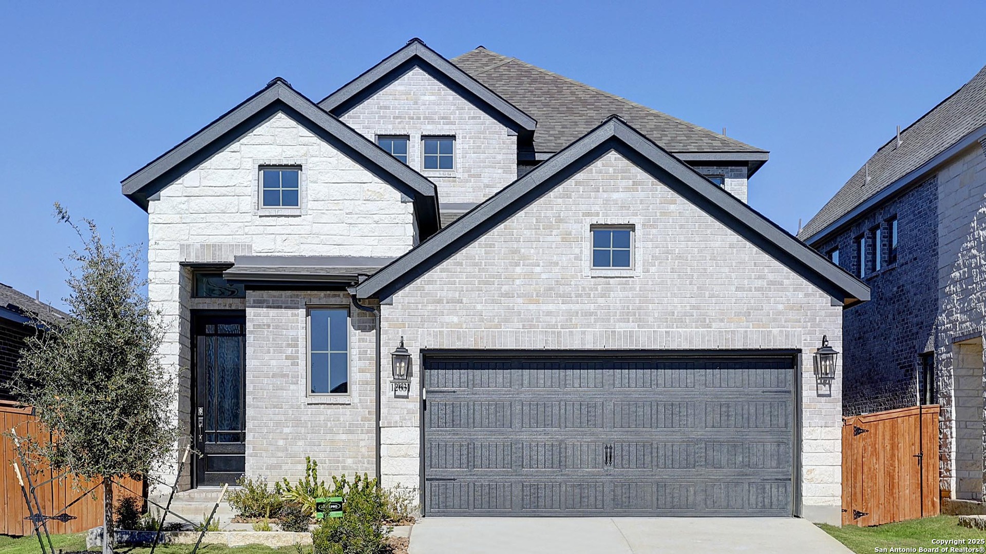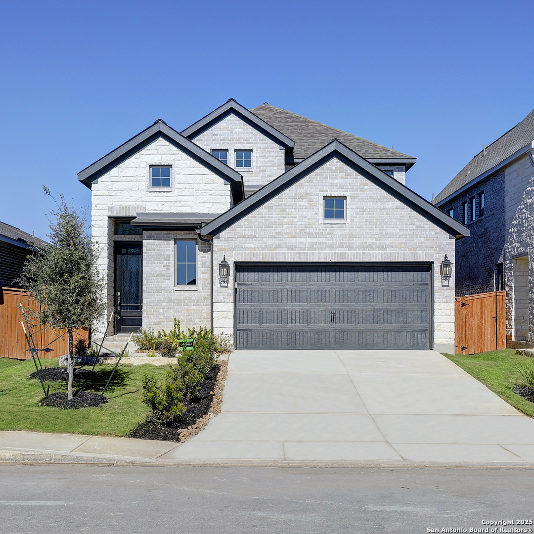 Step through the front entrance and you'll find a spacious entryway adorned with three large windows allowing natural light to illuminate the space. Located right off the front entrance is the utility room. As you proceed into the family room, you'll be captivated by the 19-foot ceilings and wood mantel fireplace. The corner kitchen features an island with built-in seating, 5-burner gas cooktop and a walk-in pantry. The adjacent dining area is bathed in natural light from the corner wall of windows. Enter the private primary suite, where a wall of windows welcomes you filling the room with natural light. French doors lead you to the primary bath, which offers dual vanities, a spacious glass-enclosed shower, and two oversized walk-in closets. On the second floor, you'll discover an open game room. The secondary bedrooms feature walk-in closets, separate linen closets, and share a full bathroom. A private guest suite with a full bathroom completes the upstairs. Outside is an extended covered backyard patio. Completing the floor plan is a mud room located just off the two-car garage.