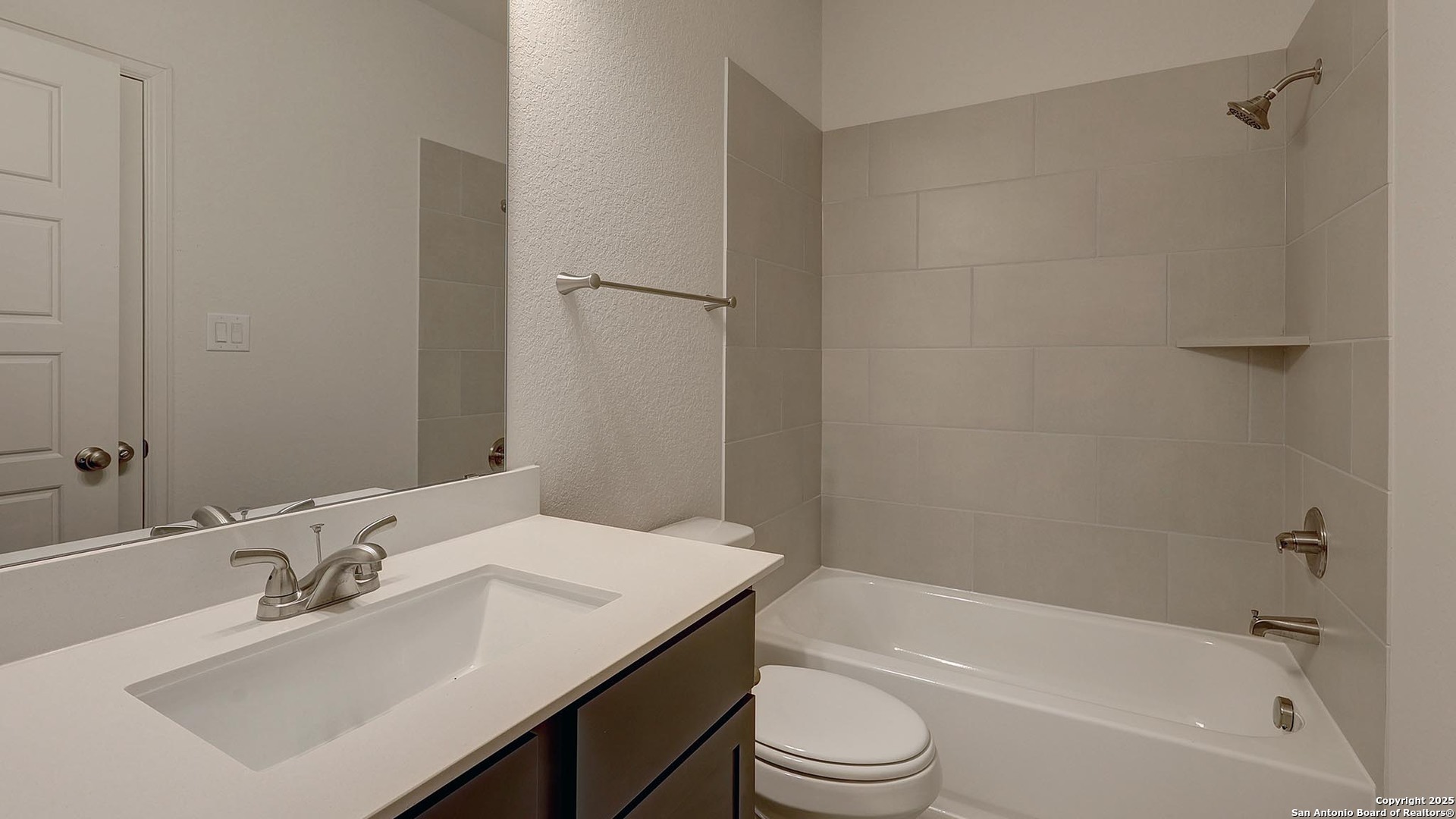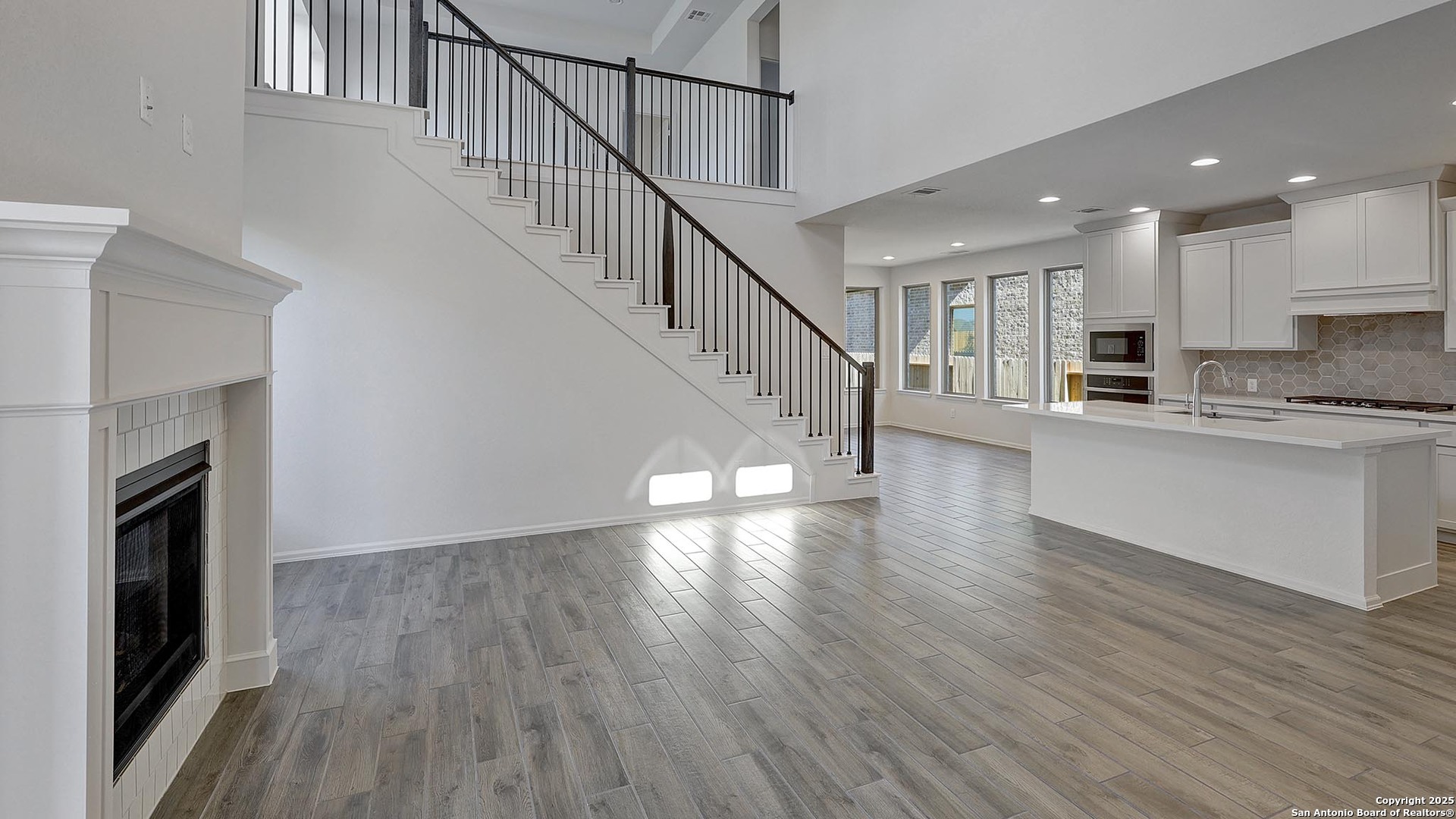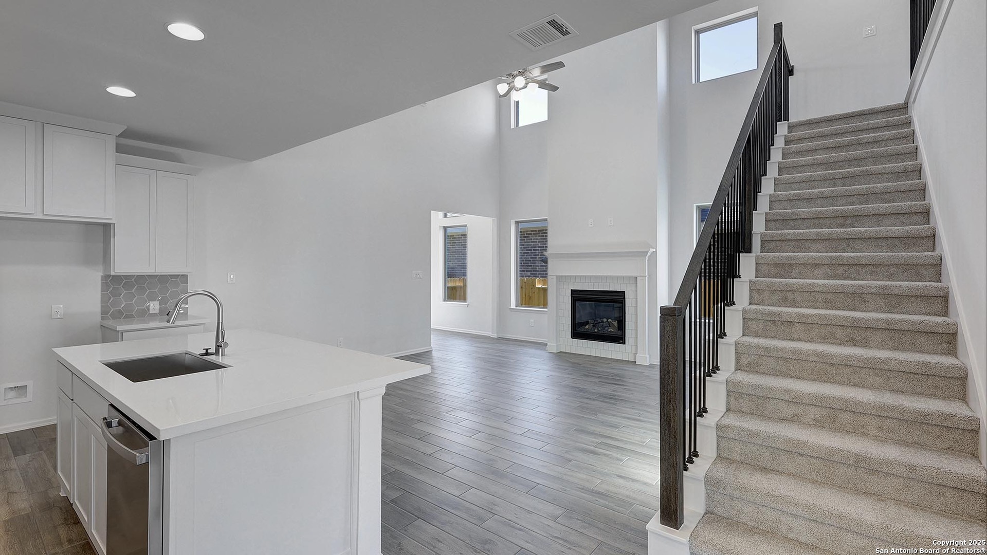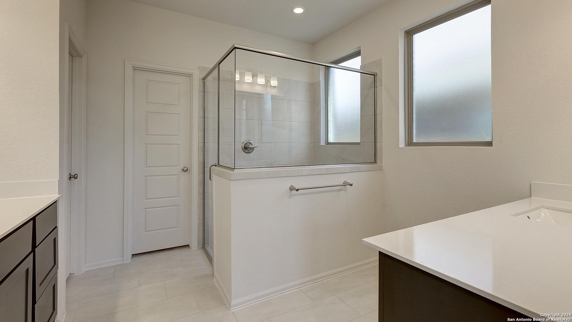 Step through the front entrance and you'll find a spacious entryway adorned with three large windows allowing natural light to illuminate the space. Located right off the front entrance is the utility room. As you proceed into the family room, you'll be captivated by the 19-foot ceilings and wood mantel fireplace. The corner kitchen features an island with built-in seating, 5-burner gas cooktop and a walk-in pantry. The adjacent dining area is bathed in natural light from the corner wall of windows. Enter the private primary suite, where a wall of windows welcomes you filling the room with natural light. French doors lead you to the primary bath, which offers dual vanities, a spacious glass-enclosed shower, and two oversized walk-in closets. On the second floor, you'll discover an open game room. The secondary bedrooms feature walk-in closets, separate linen closets, and share a full bathroom. A private guest suite with a full bathroom completes the upstairs. Outside is an extended covered backyard patio. Completing the floor plan is a mud room located just off the two-car garage.
