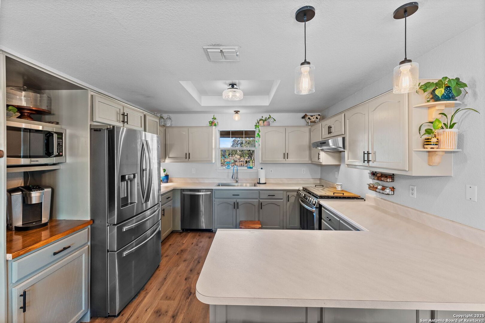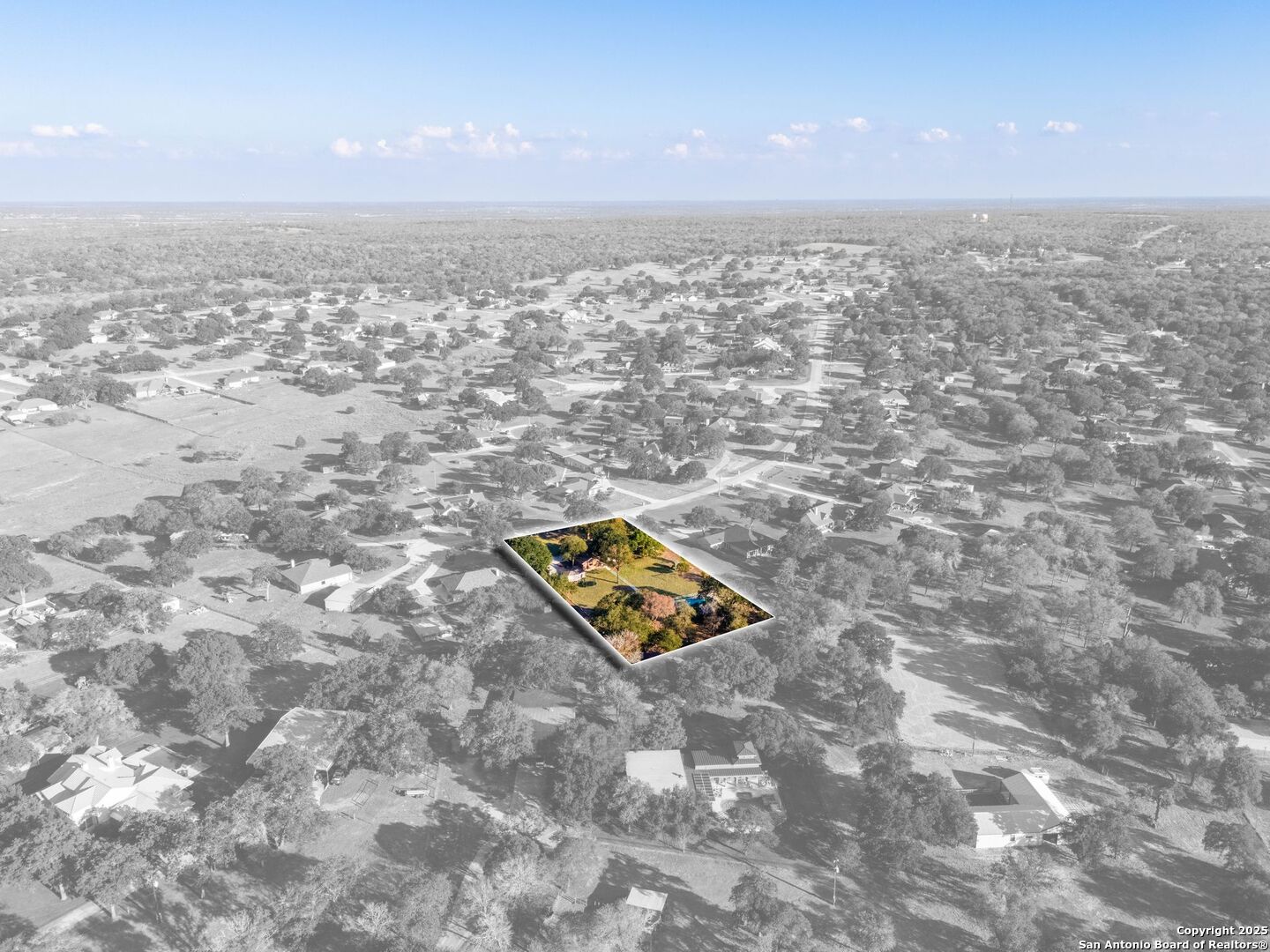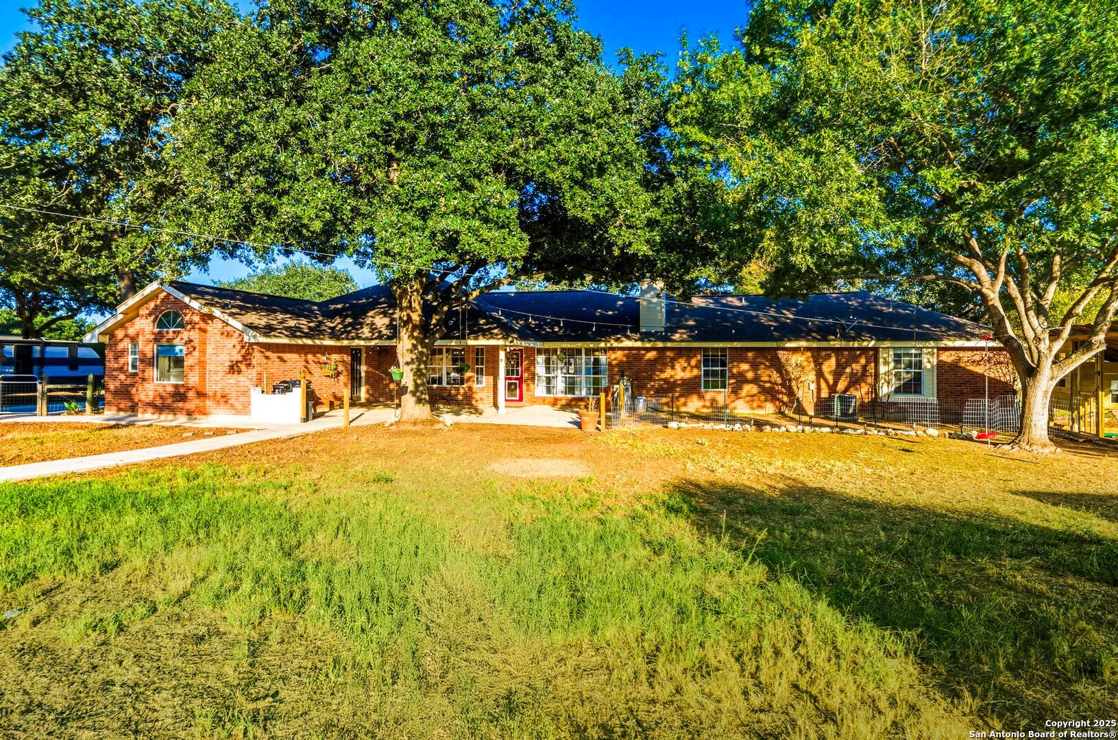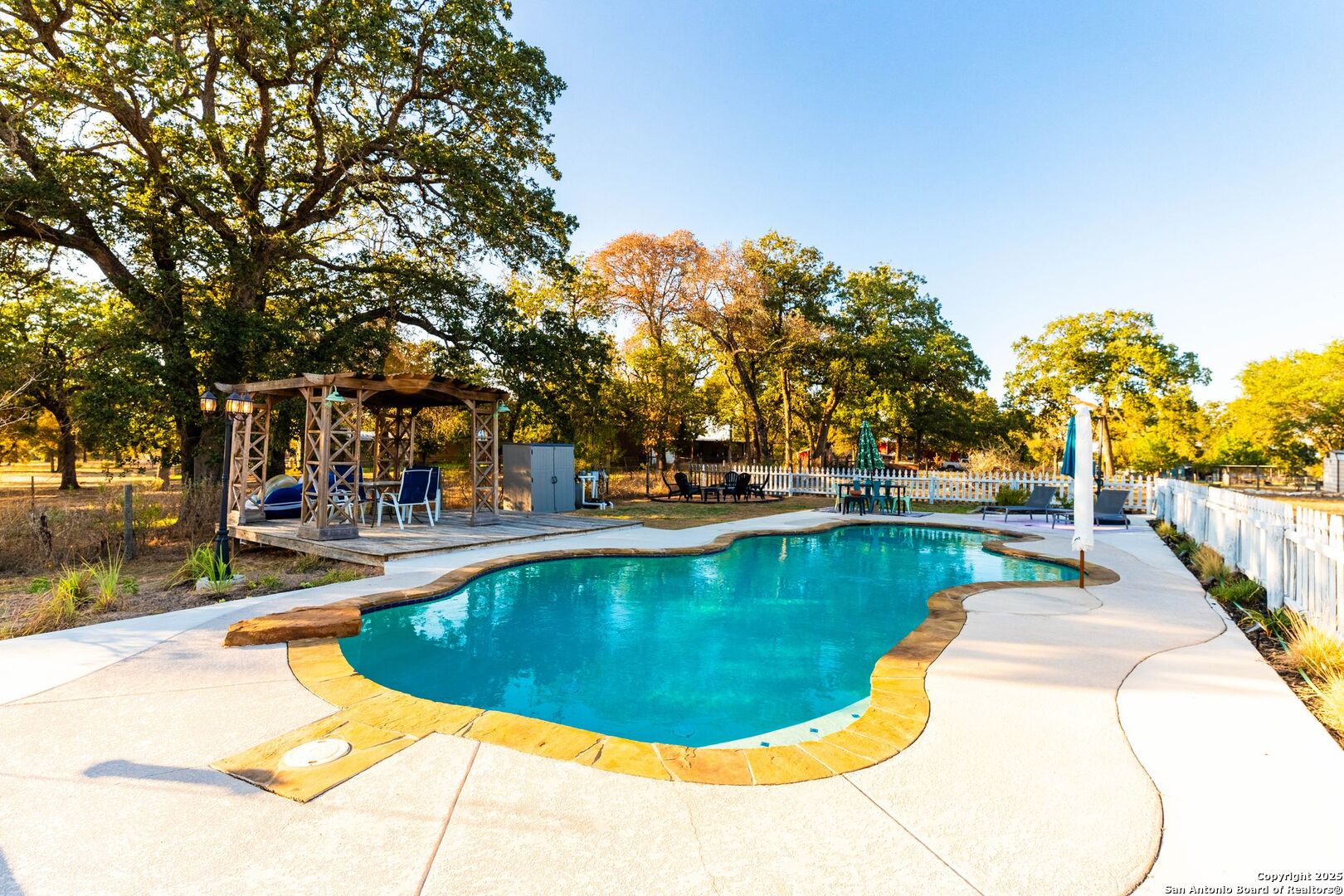 This beautifully maintained single-story home offers 4 bedrooms and 2 baths, perfectly situated on just over one acre at the end of a peaceful cul-de-sac surrounded by mature trees. Featuring four sides of masonry brick construction and no city taxes, this property blends quality craftsmanship with serene country living. Enjoy outdoor entertaining year-round with a custom pool, spacious covered patio, and charming gazebo. The detached garage is fully equipped with electricity and a 30-amp plug, ideal for RV hookup or workshop use. This home truly captures country living at its finest-offering space, comfort, and privacy all in one exceptional property.