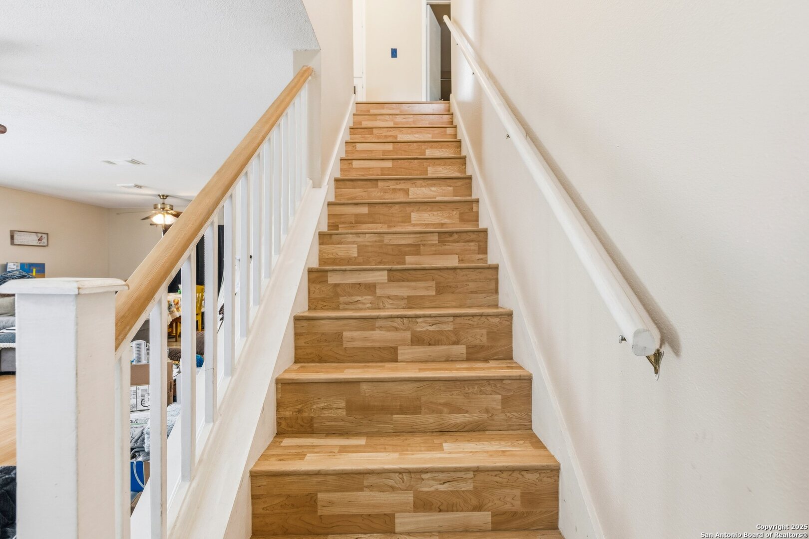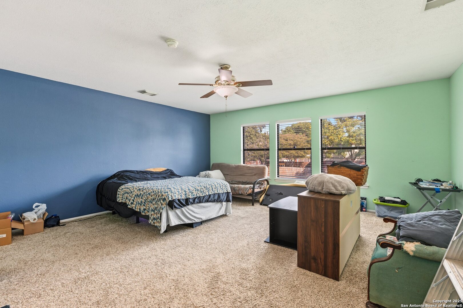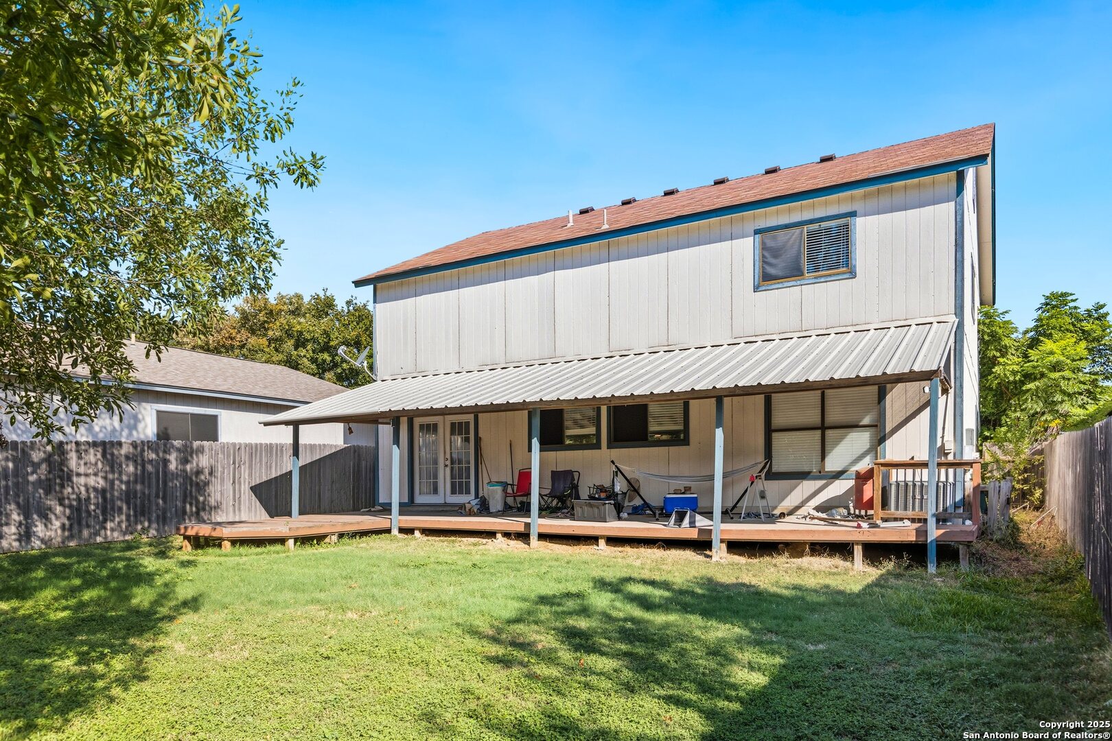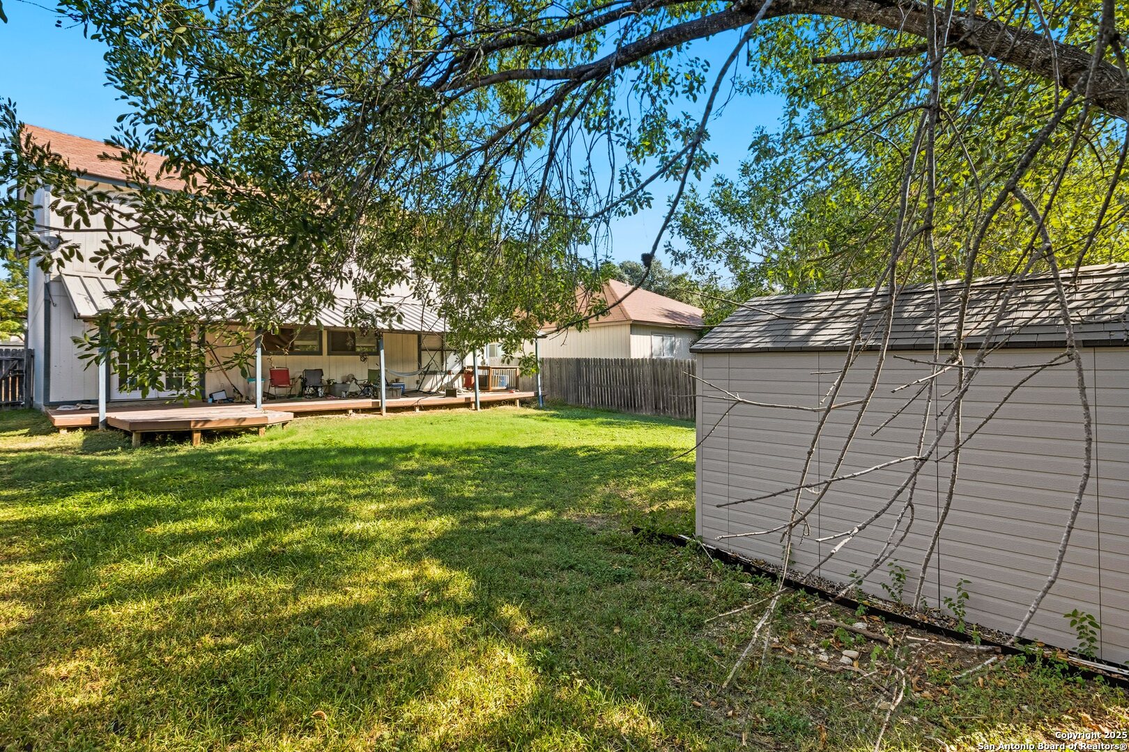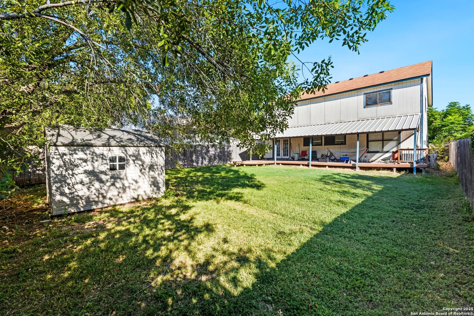 ***Assumable VA Loan at 3.25% to qualified Buyer*** Spacious 4-bedroom, 2.5-bath, two-story home located in the established community of Hunters Chase. This inviting property features an open floor plan with a large living room that flows into a separate dining area-perfect for gatherings or entertaining. The kitchen offers generous storage, a large pantry, and plenty of workspace for everyday cooking. Upstairs, the enormous primary suite spans nearly half the second floor, offering a large bedroom, a huge walk-in closet, and a private bath. Secondary bedrooms include ample closet space, providing comfort and convenience for everyone. Recent updates include an upgraded main breaker box for added peace of mind. Step outside to enjoy a full-width back deck with a misting system, a sprawling lawn, a storage shed, and a privacy fence-ideal for outdoor relaxation or weekend barbecues. Located near Bamberger Nature Park, great schools, shopping, and easy access to Loop 1604. Schedule your personal tour today!