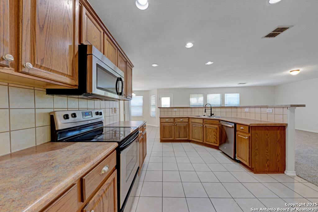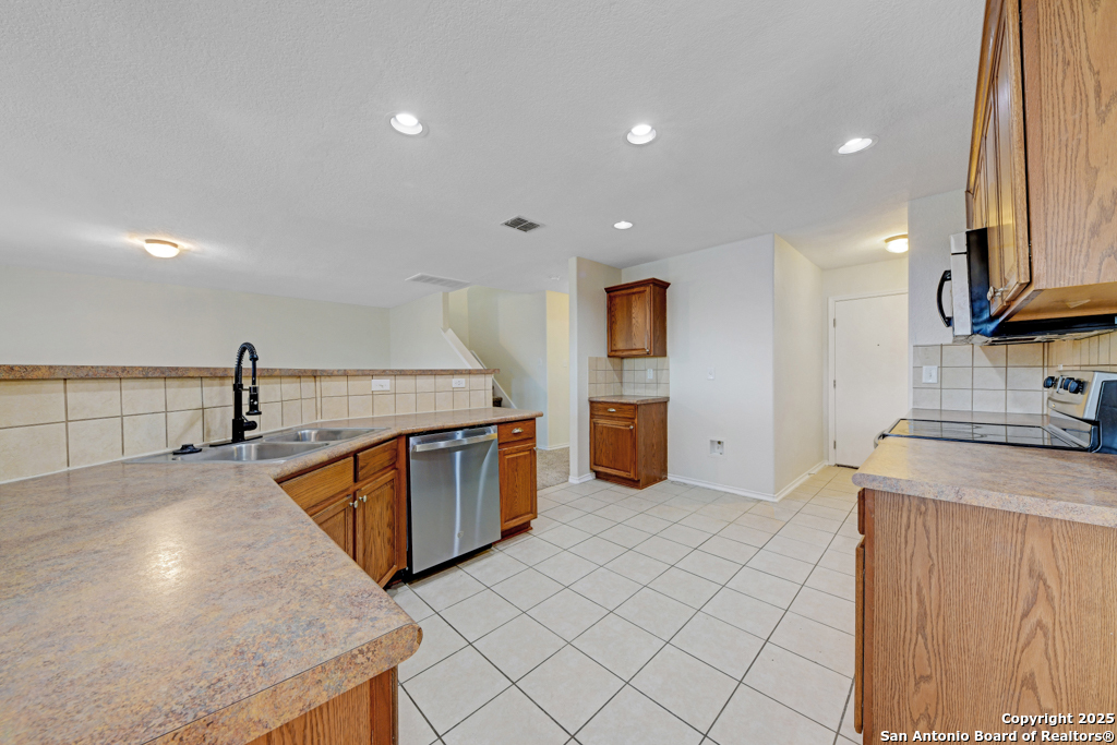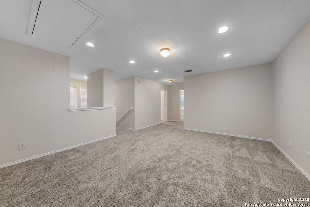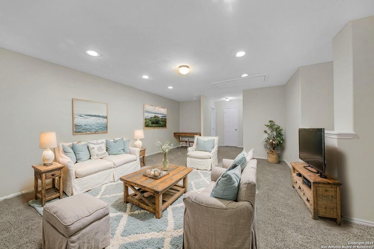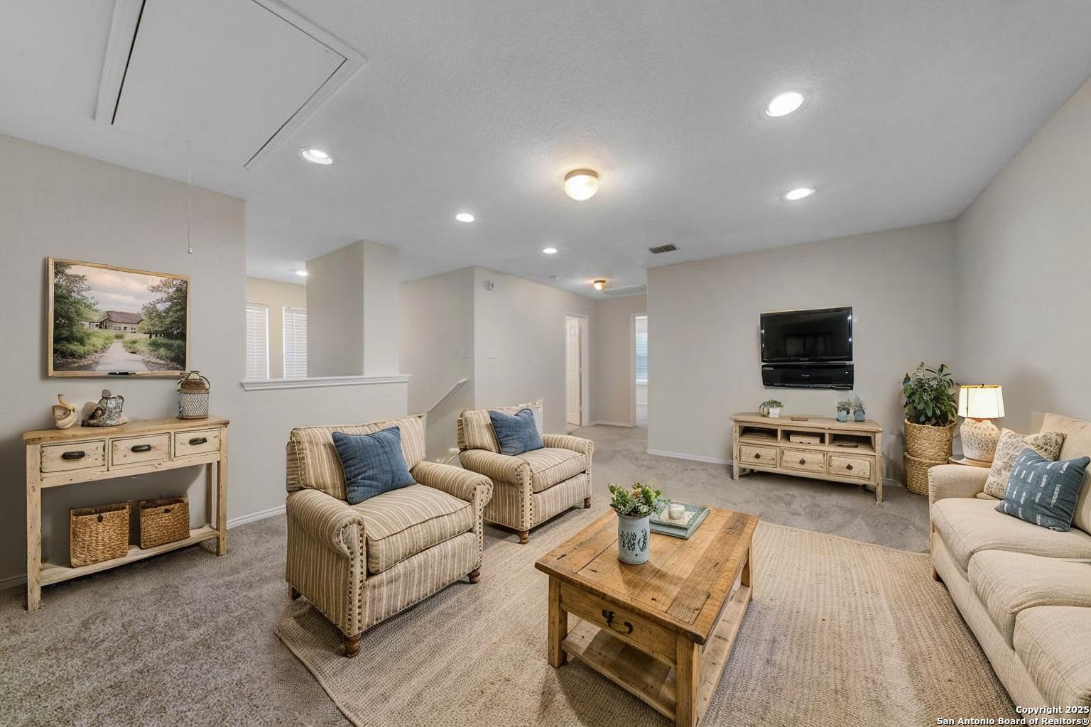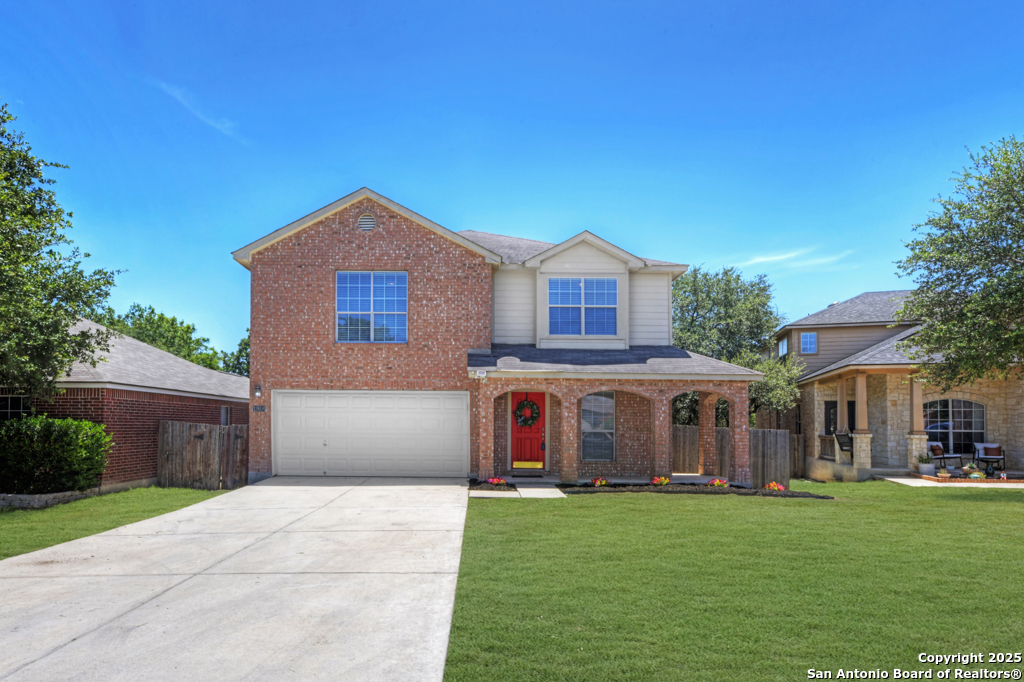 Located in the highly sought-after Westcreek subdivision, this spacious home is perfect for a growing family, offering multiple functional living spaces and a fantastic community. Westcreek offers a Sports Park and Community Center, with amenities such as two swimming pools, basketball and tennis courts, a football/soccer field, playground, sand volleyball court, walking trails, picnic areas, and a pavilion - great for year-round family activities. ~ The home sits on a semi-cul-de-sac with an extra-long driveway, providing parking for up to 6 vehicles off the street. Enjoy the covered front porch that welcomes you inside to a large formal living and dining room separate from the spacious family room. The kitchen is ideal for family gatherings with plenty of counter and cabinet space, and it opens seamlessly to the family room. ~ Upstairs, you'll find a huge gameroom with recessed lighting and a built-in desk, along with generously sized bedrooms and closets. The primary bedroom offers a private retreat, featuring a large en-suite bath with a double vanity, glass block accents over the garden tub, a separate shower, and an abundance of walk-in closet space. ~ The home also boasts a covered patio and deck, a sprinkler system for easy lawn care, and is conveniently located near Port San Antonio, South Texas Medical Center, Boeing, Toyota, and a variety of shopping and dining options. With easy access to Hwy 1604 and 151, commuting throughout the San Antonio area is a breeze. A wonderful home in a fantastic neighborhood - don't miss out!